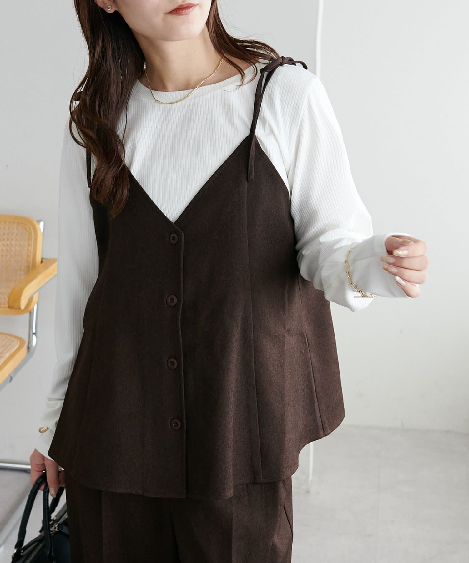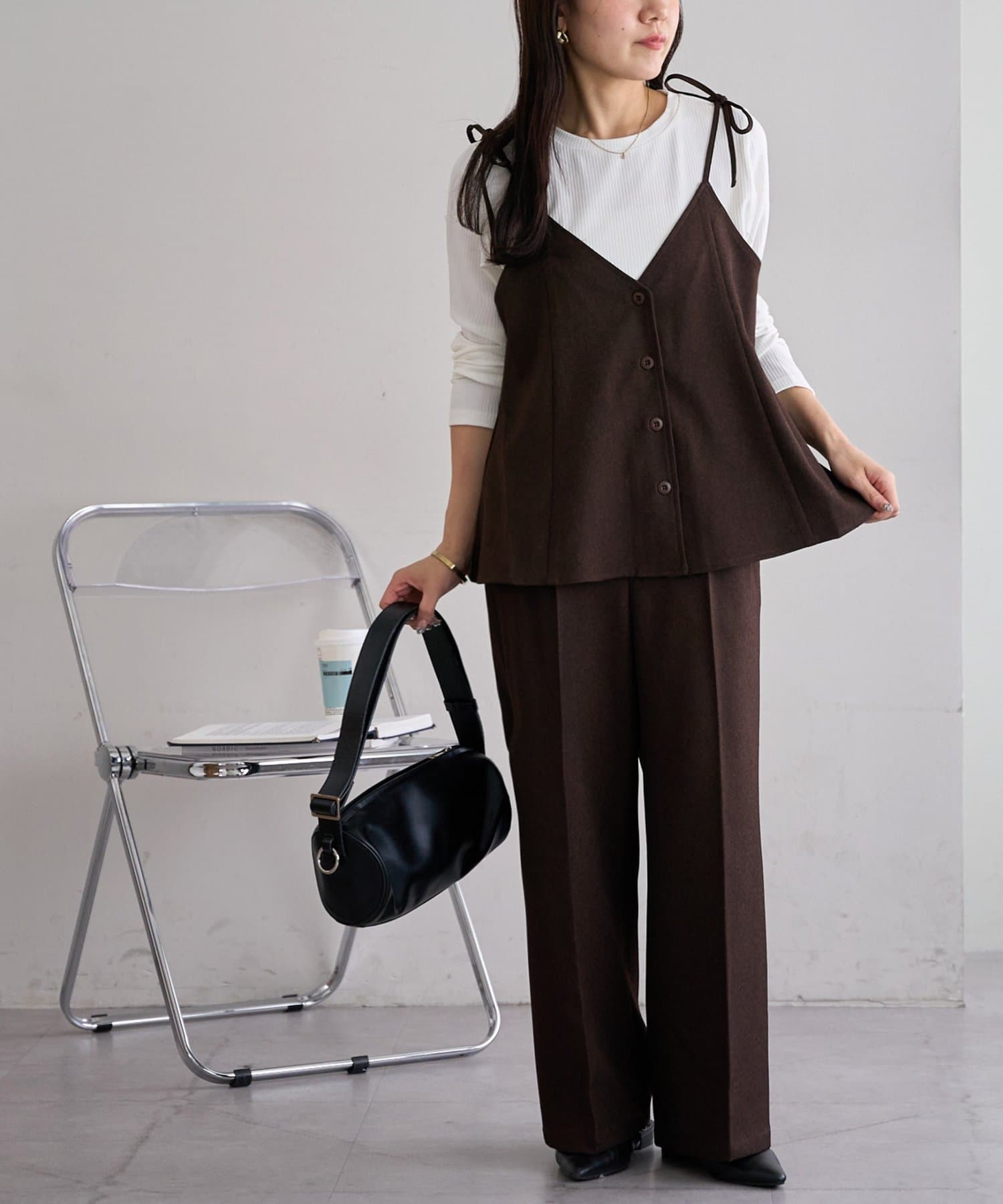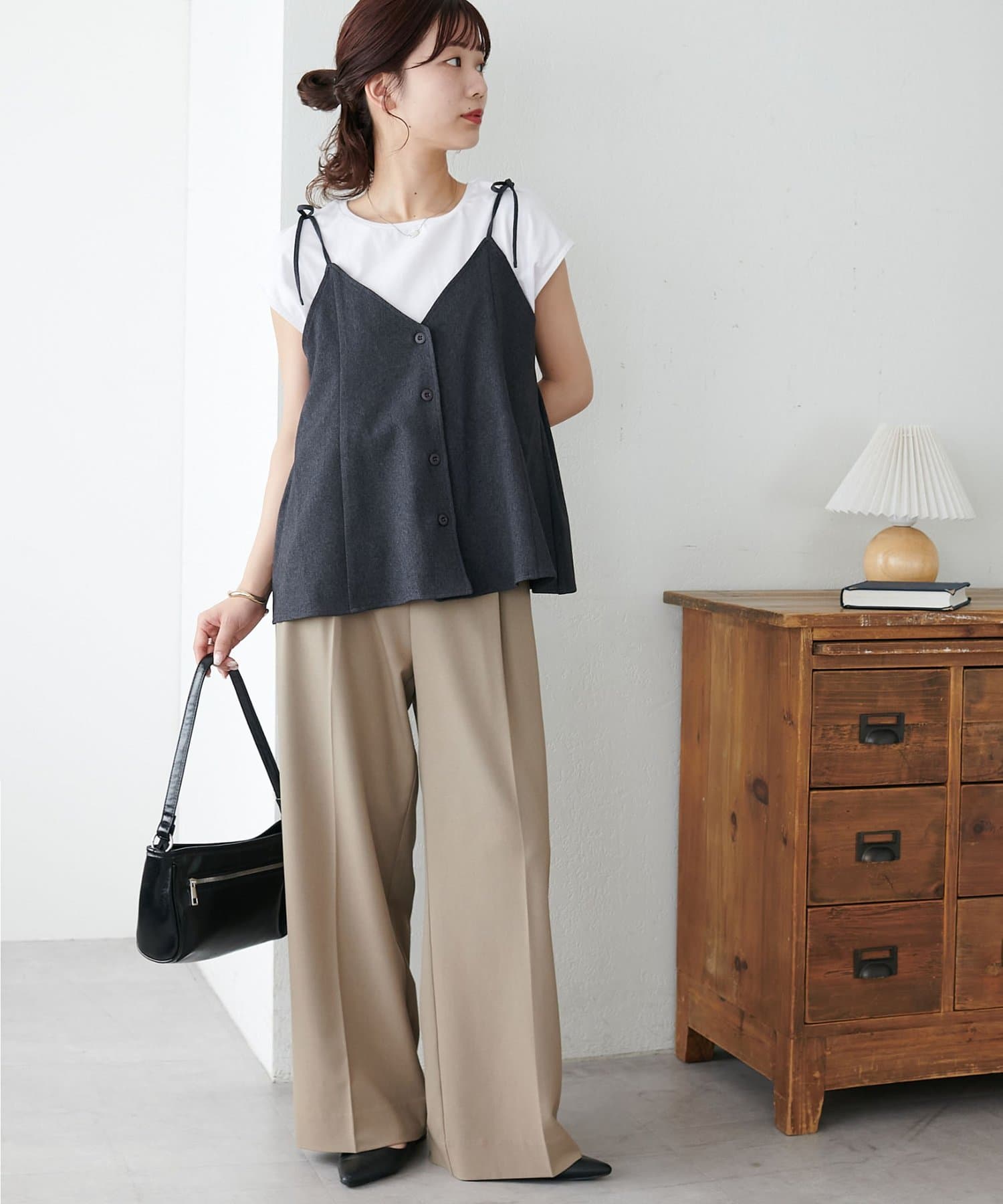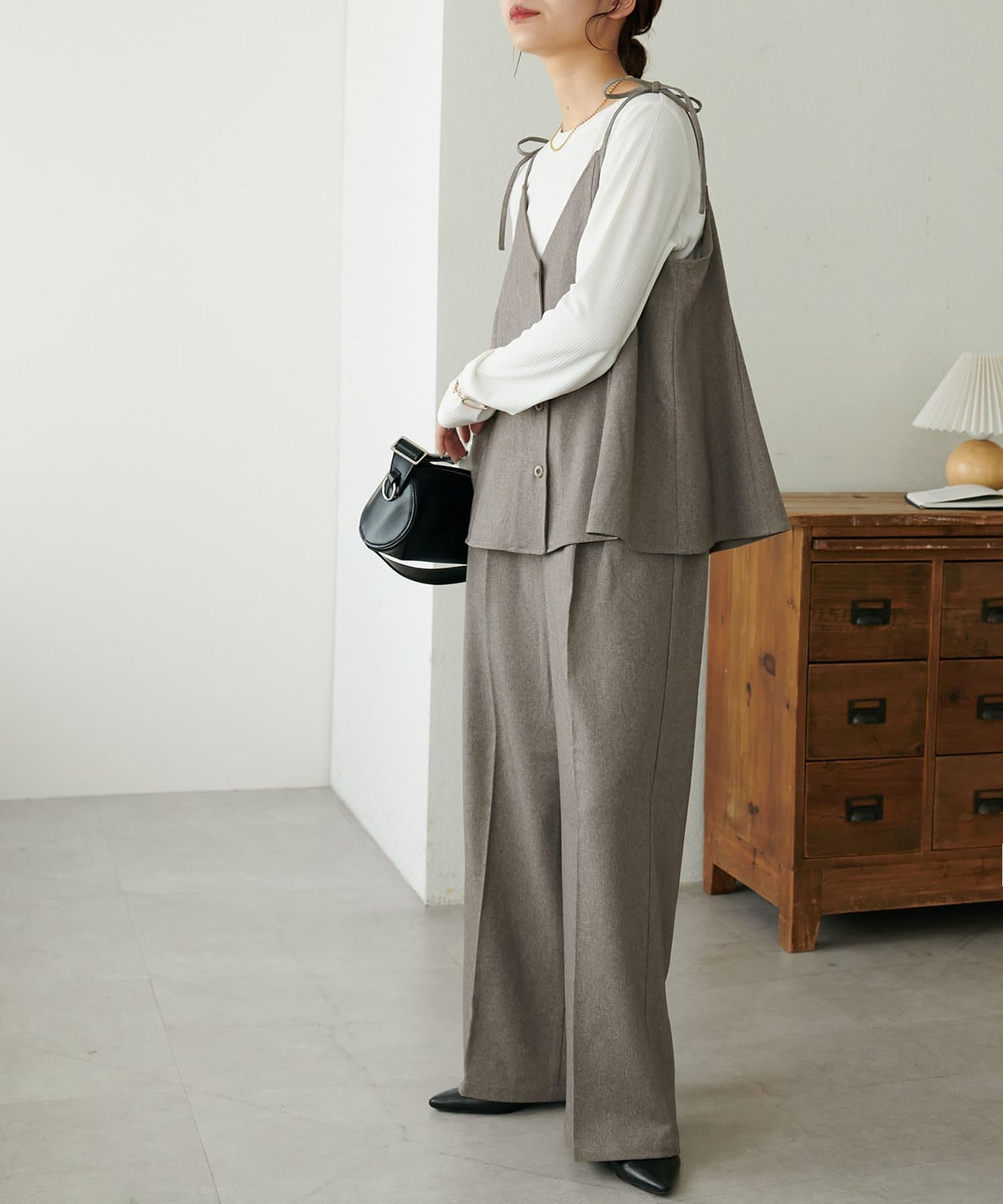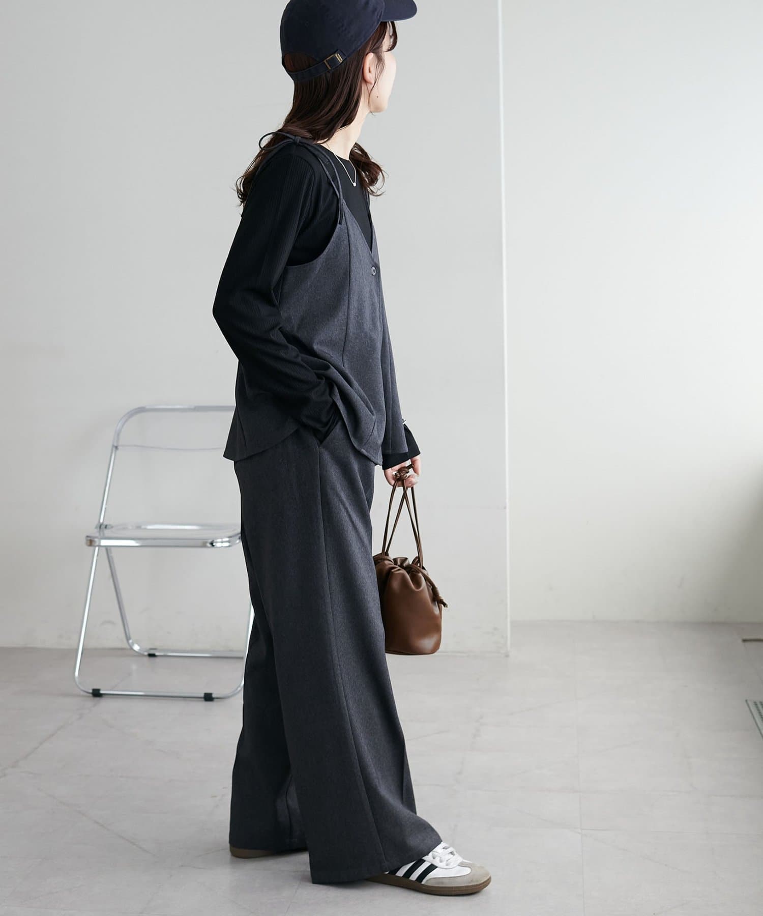 忙しい朝でもコーデに迷わない、嬉しいロンT・ビスチェ・パンツの3点セット。