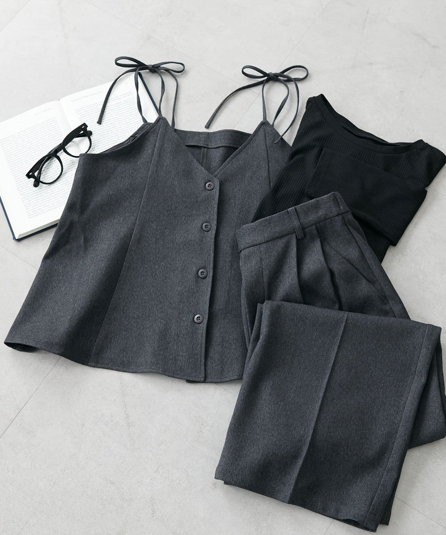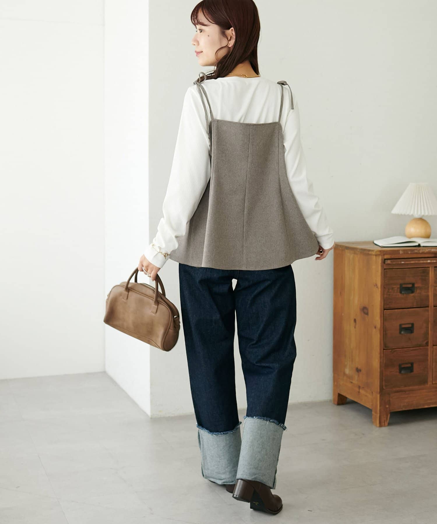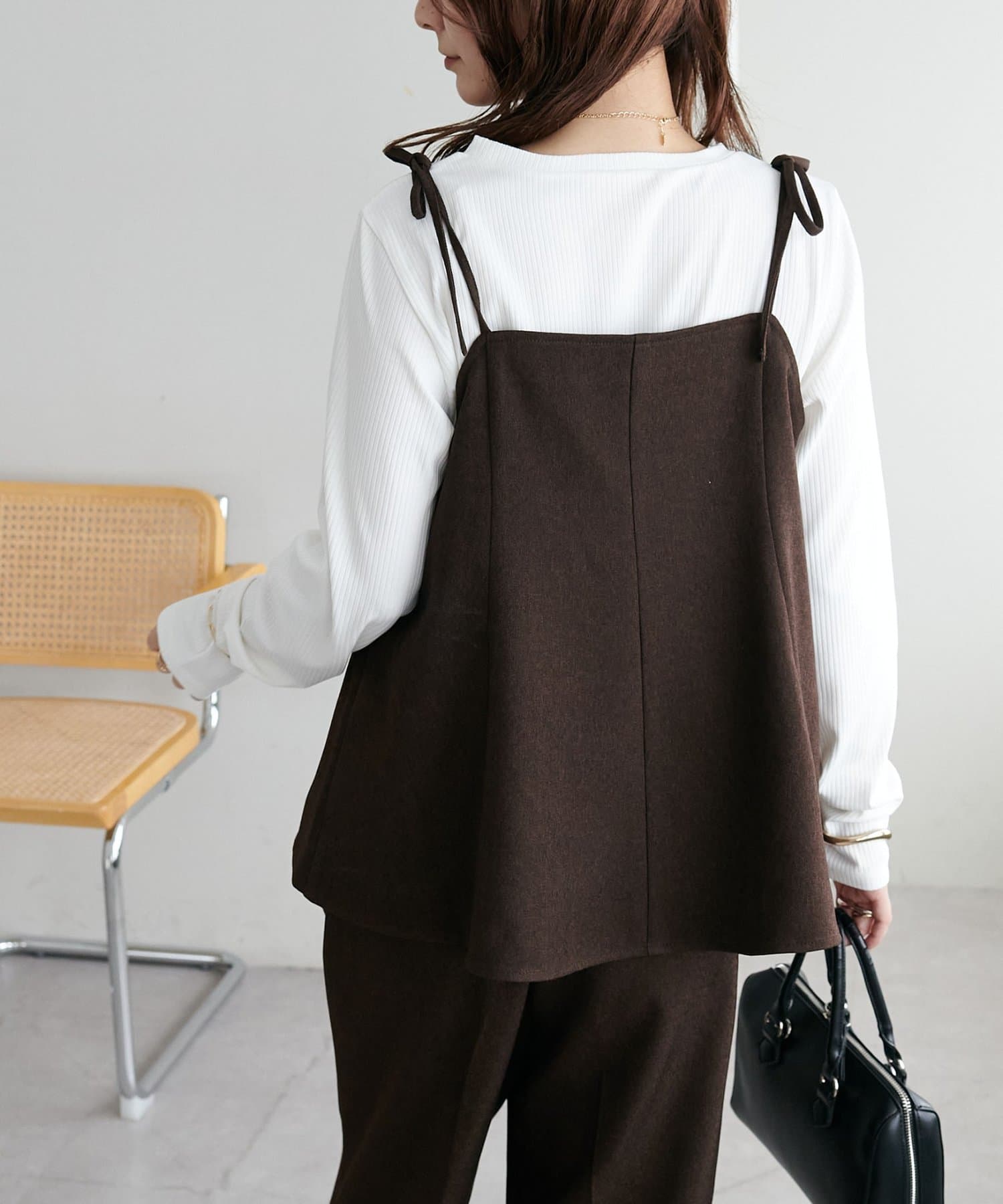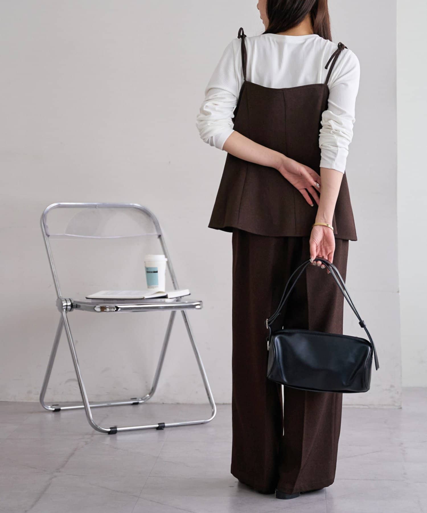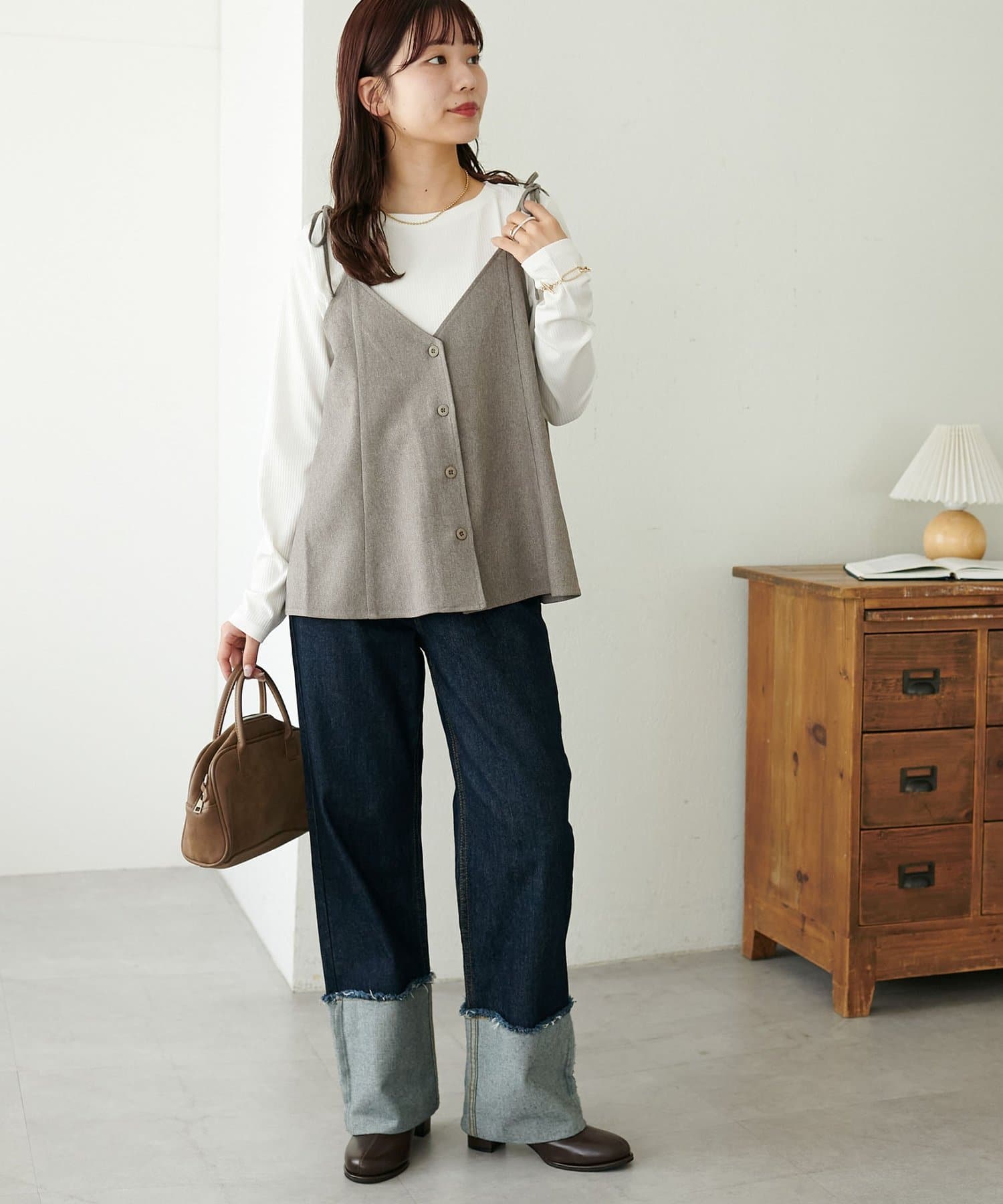 忙しい朝でもコーデに迷わない、嬉しいロンT・ビスチェ・パンツの3点セット。