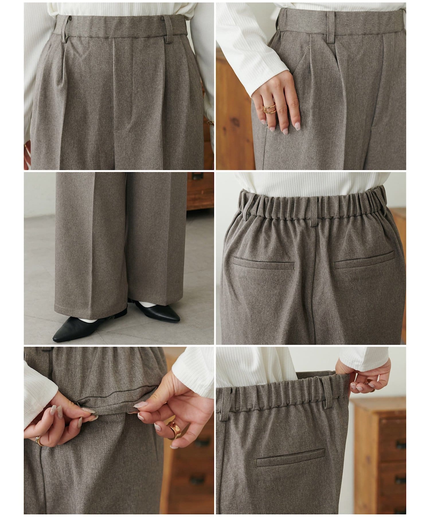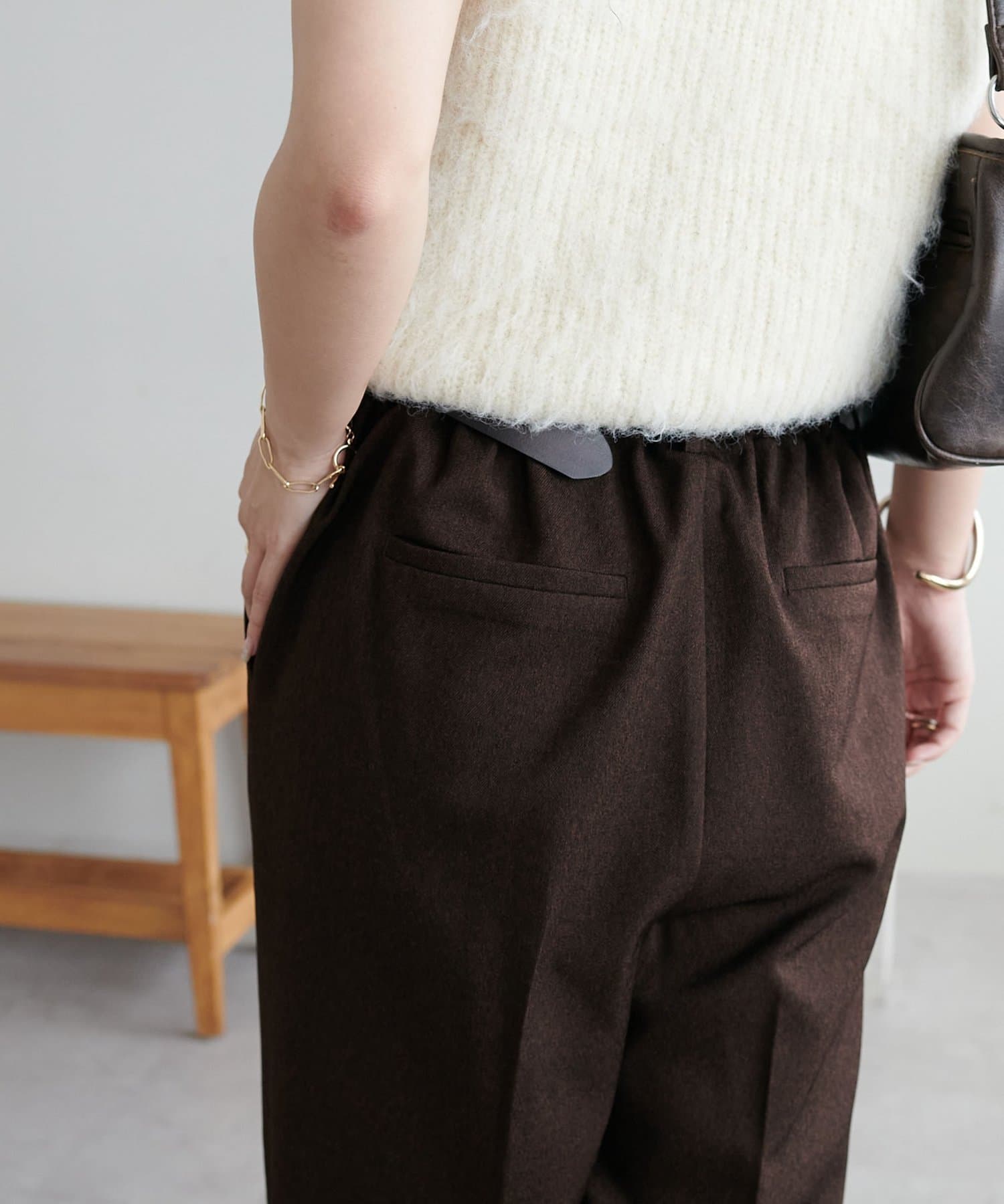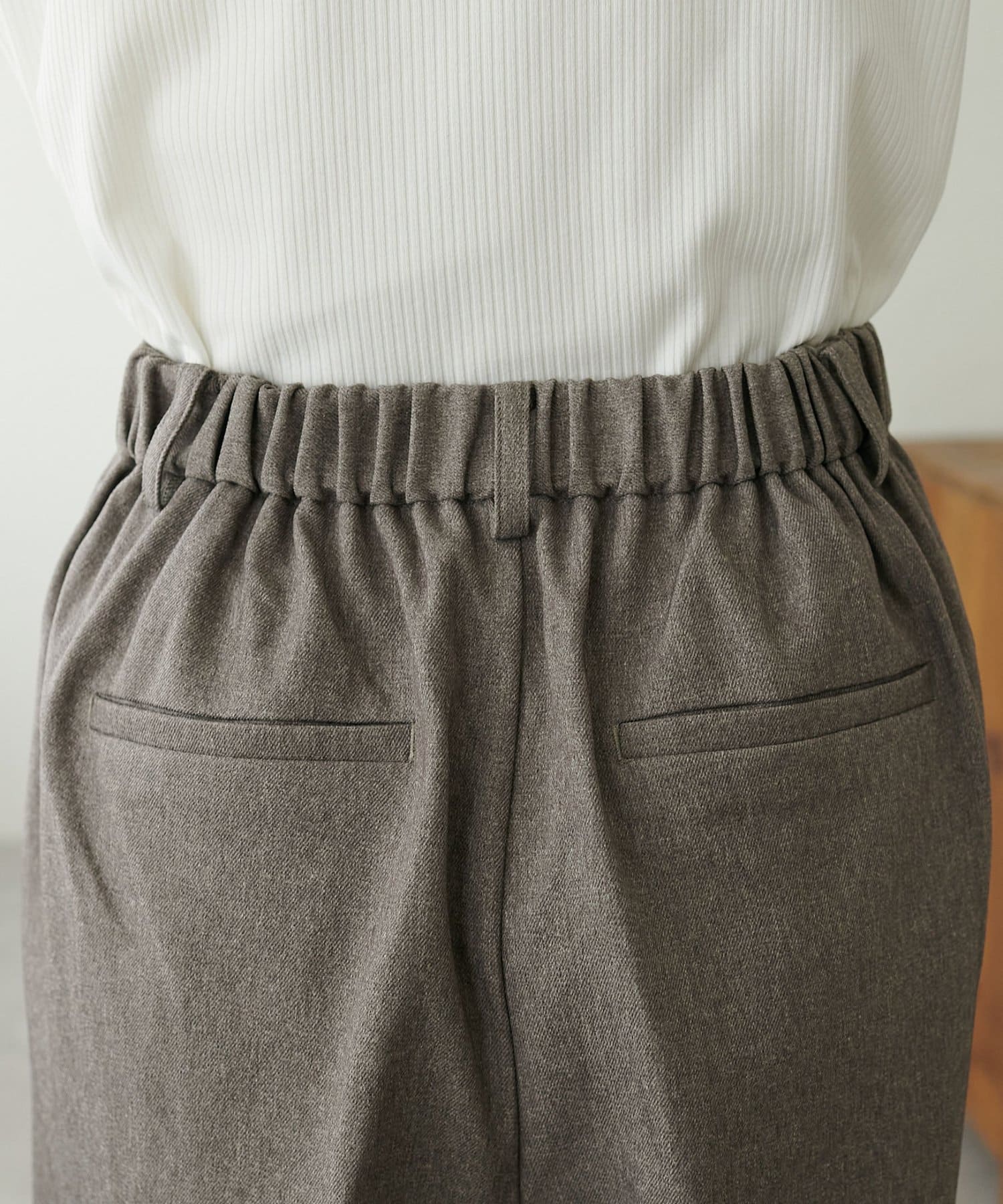 ウエストは後ろゴム仕様で、見た目のきちんと感と裏腹にラクな履き心地。