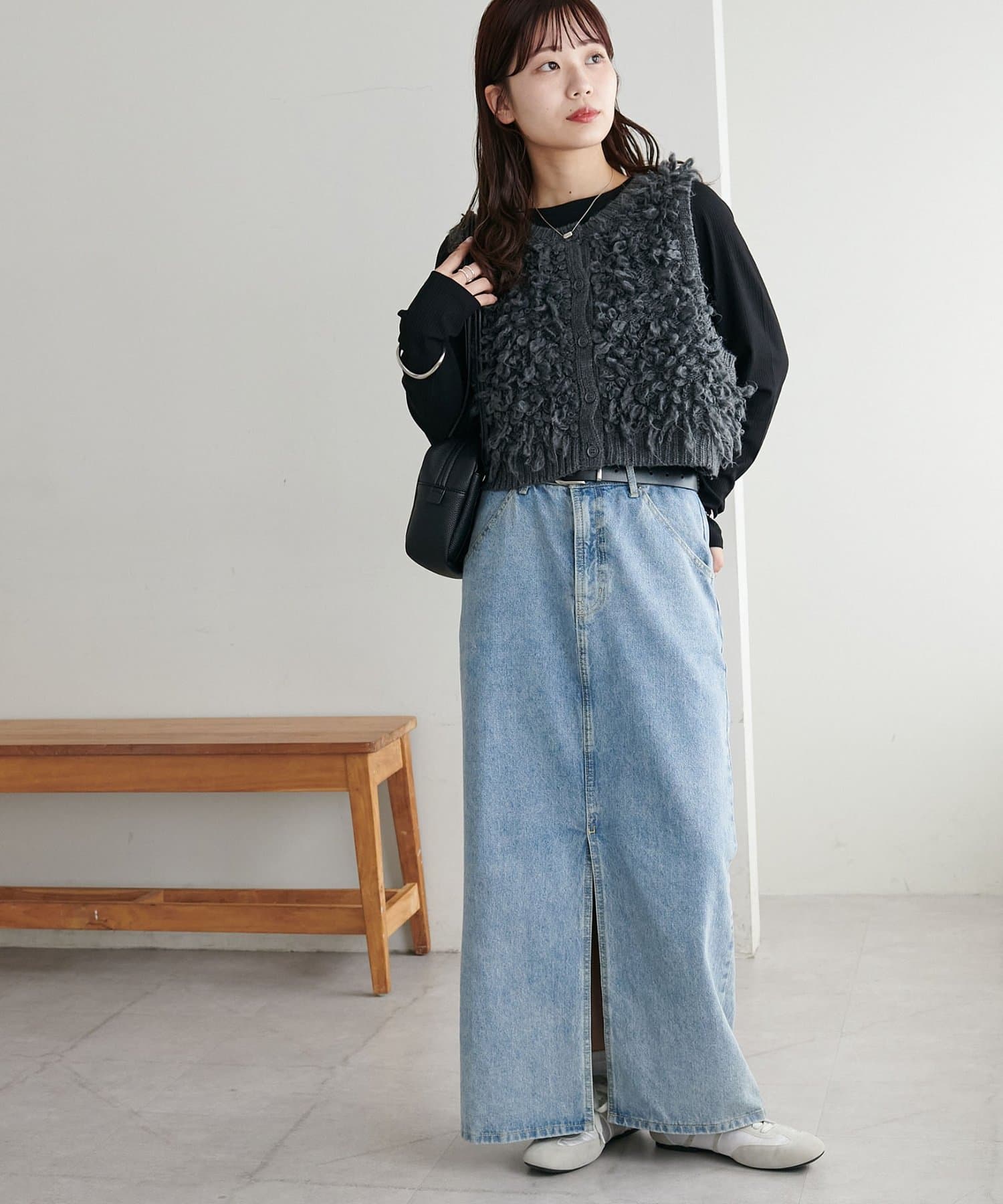 ロンTの上に重ねるだけで、一気に今っぽく仕上がるデザインです。