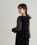 お袖はボリューム感のあるチュールにしたことで、さり気なく二の腕周りをカバーしながら華やかな印象を引き立ててくれます〇