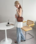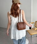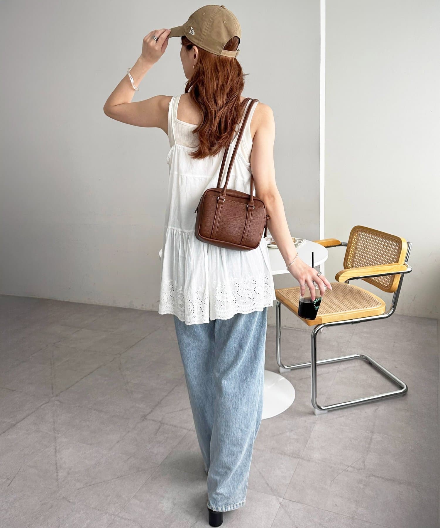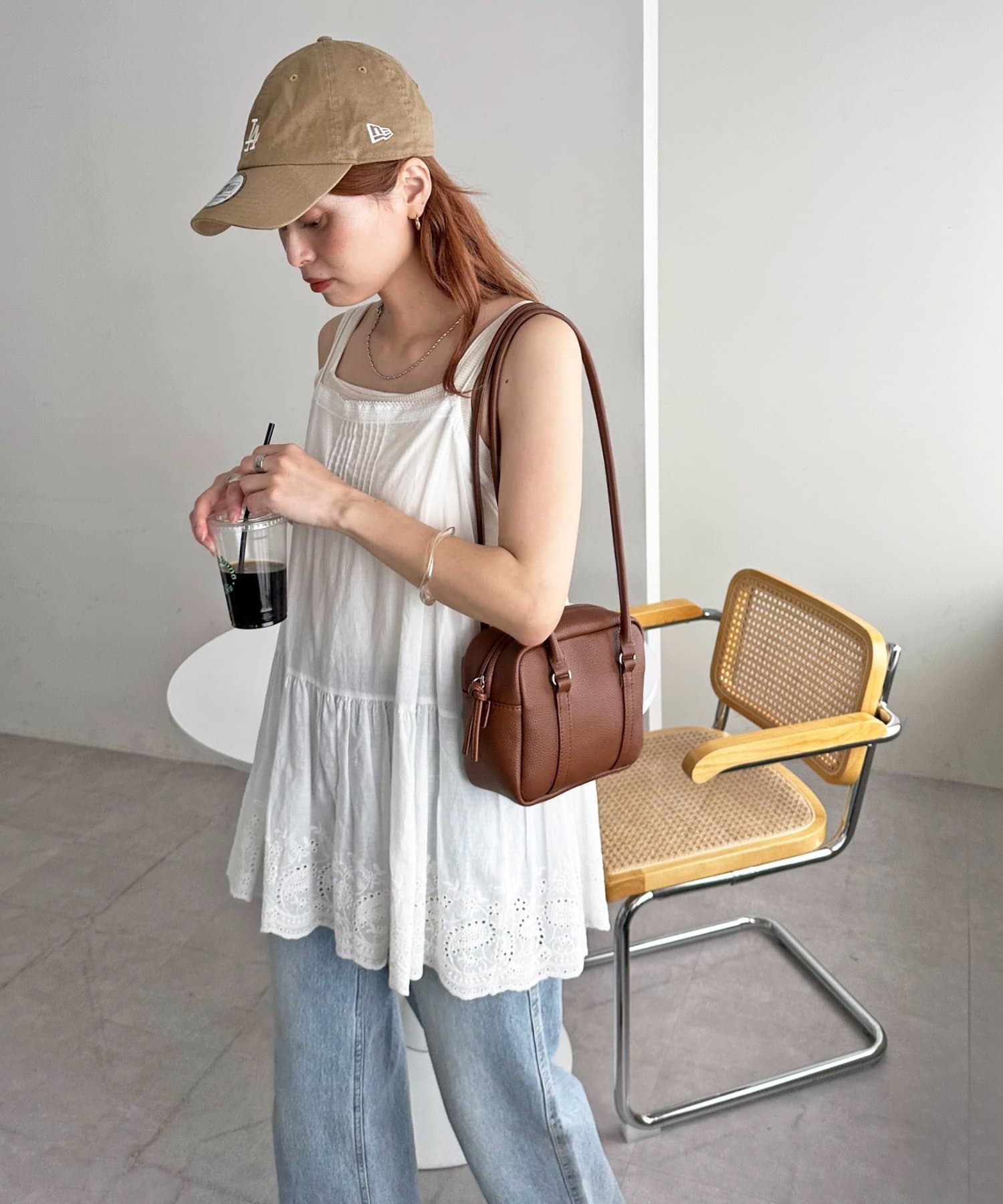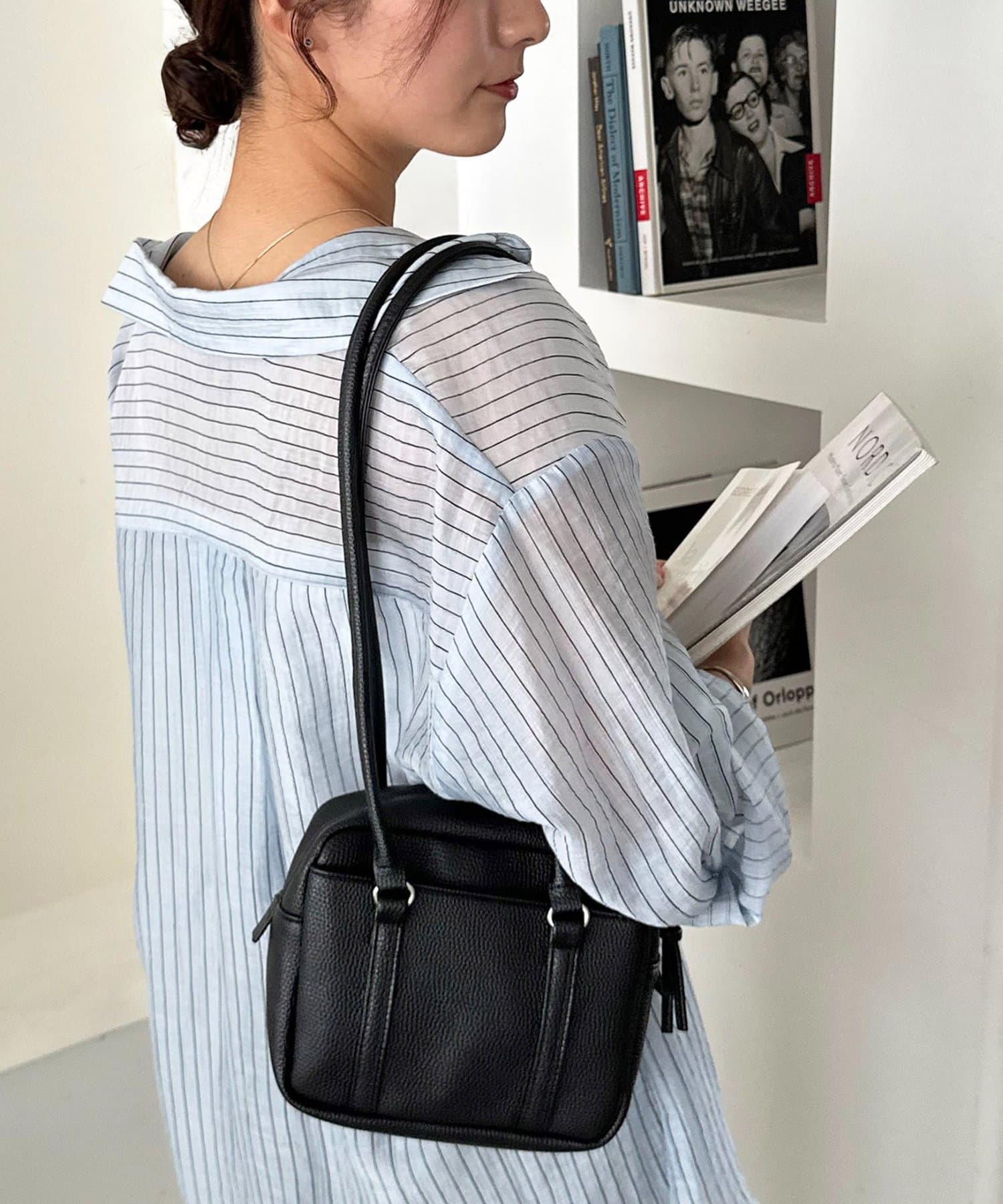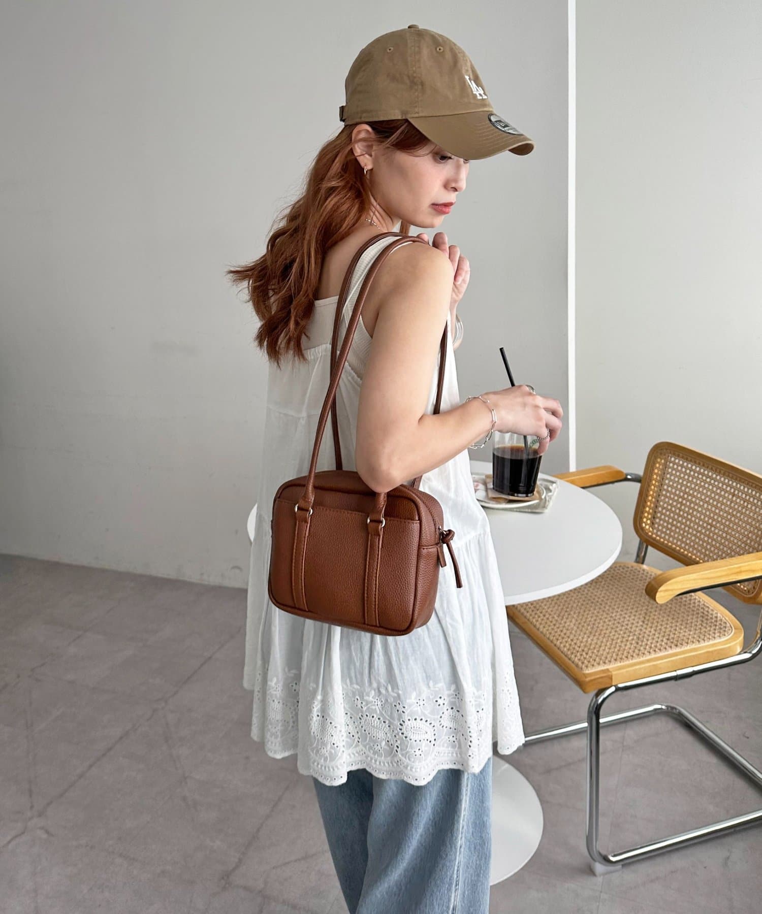 スクエアシルエットが魅力のショルダーバッグ。コンパクトな見た目ですがマチが8.5cmあるので、折りたたみ傘もすっぽり入ります◎また、ポケットが3つついているので、小物を分けて収納することができます。ショルダーは肩掛けしやすい長さで快適な使い心地に♪シンプルなデザインなので普段使いしやすく、様々なコーデに合わせることができるアイテムです。