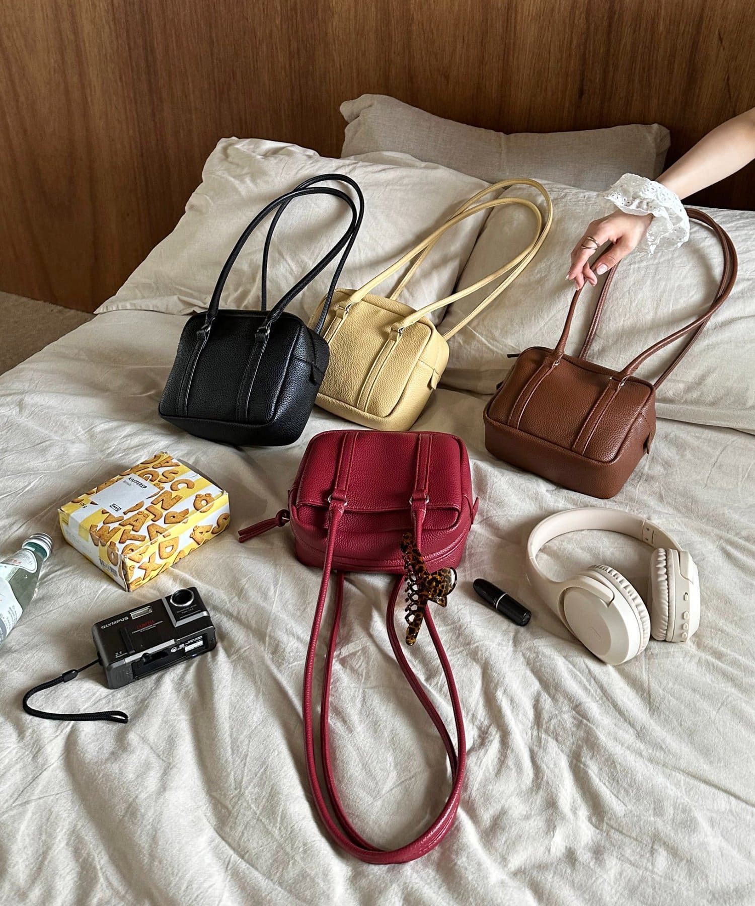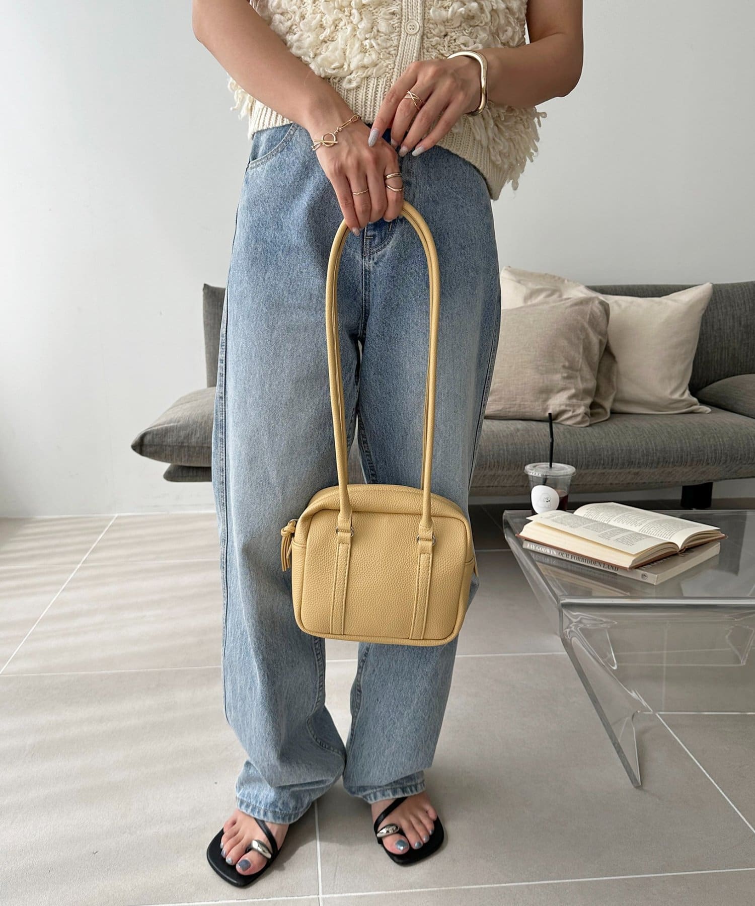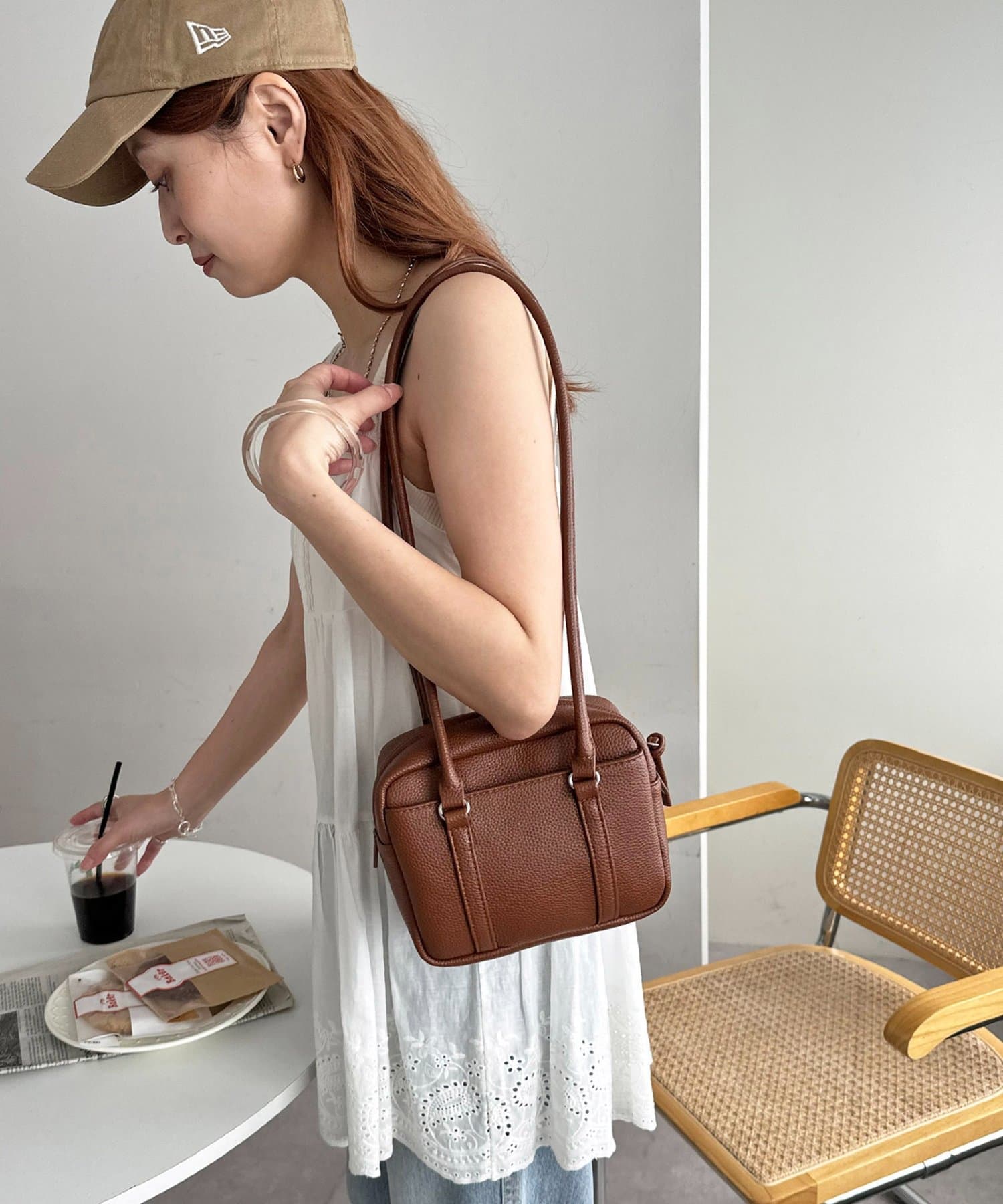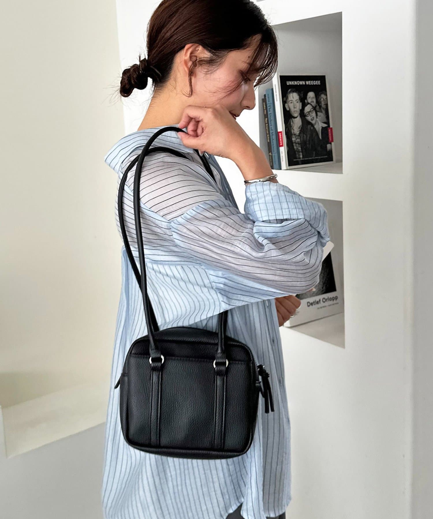 持つだけでこなれ感が出るシュリンクスクエアショルダーバッグ。