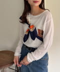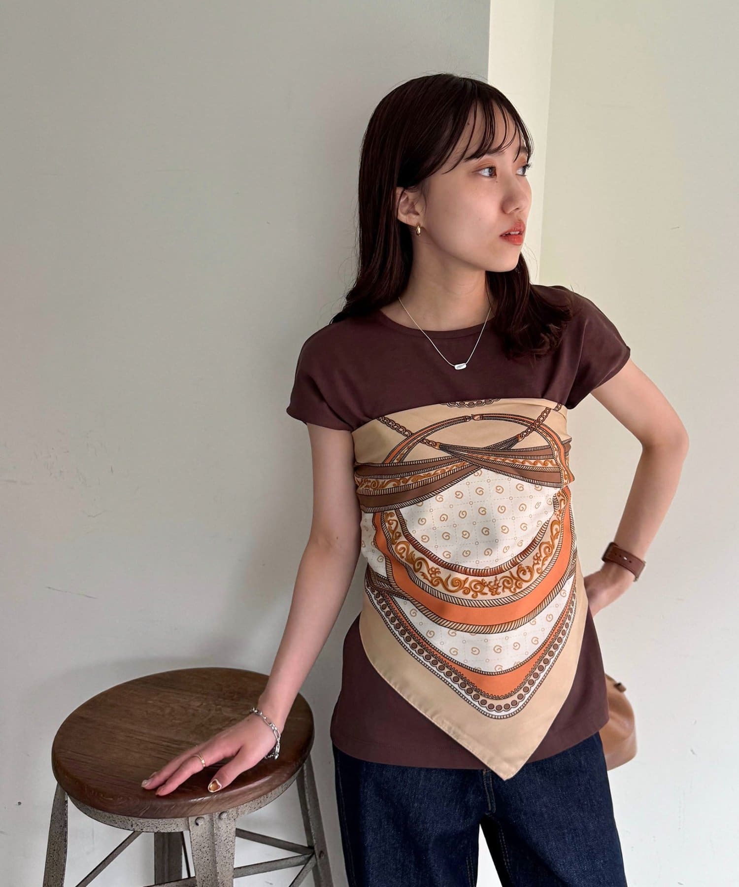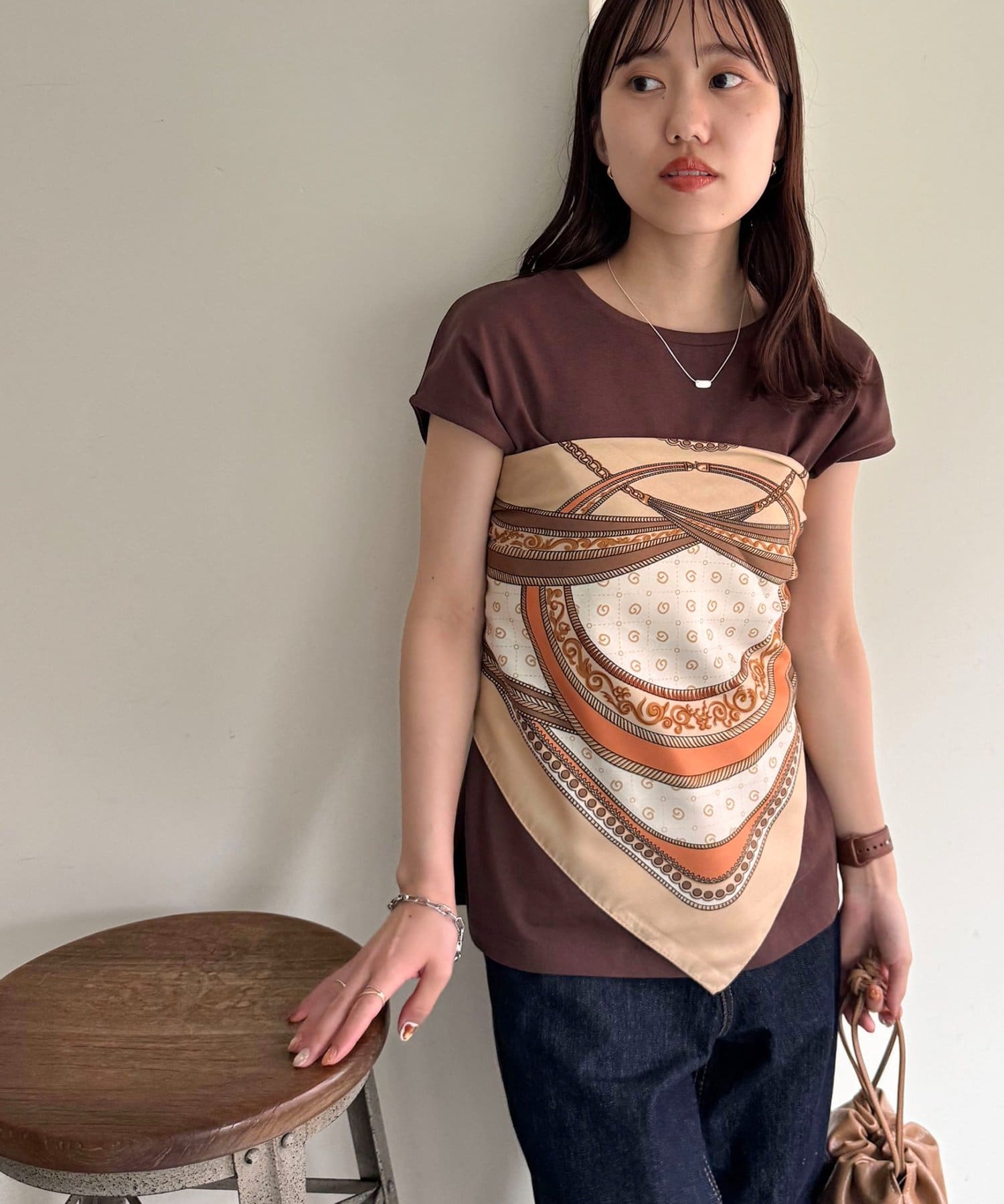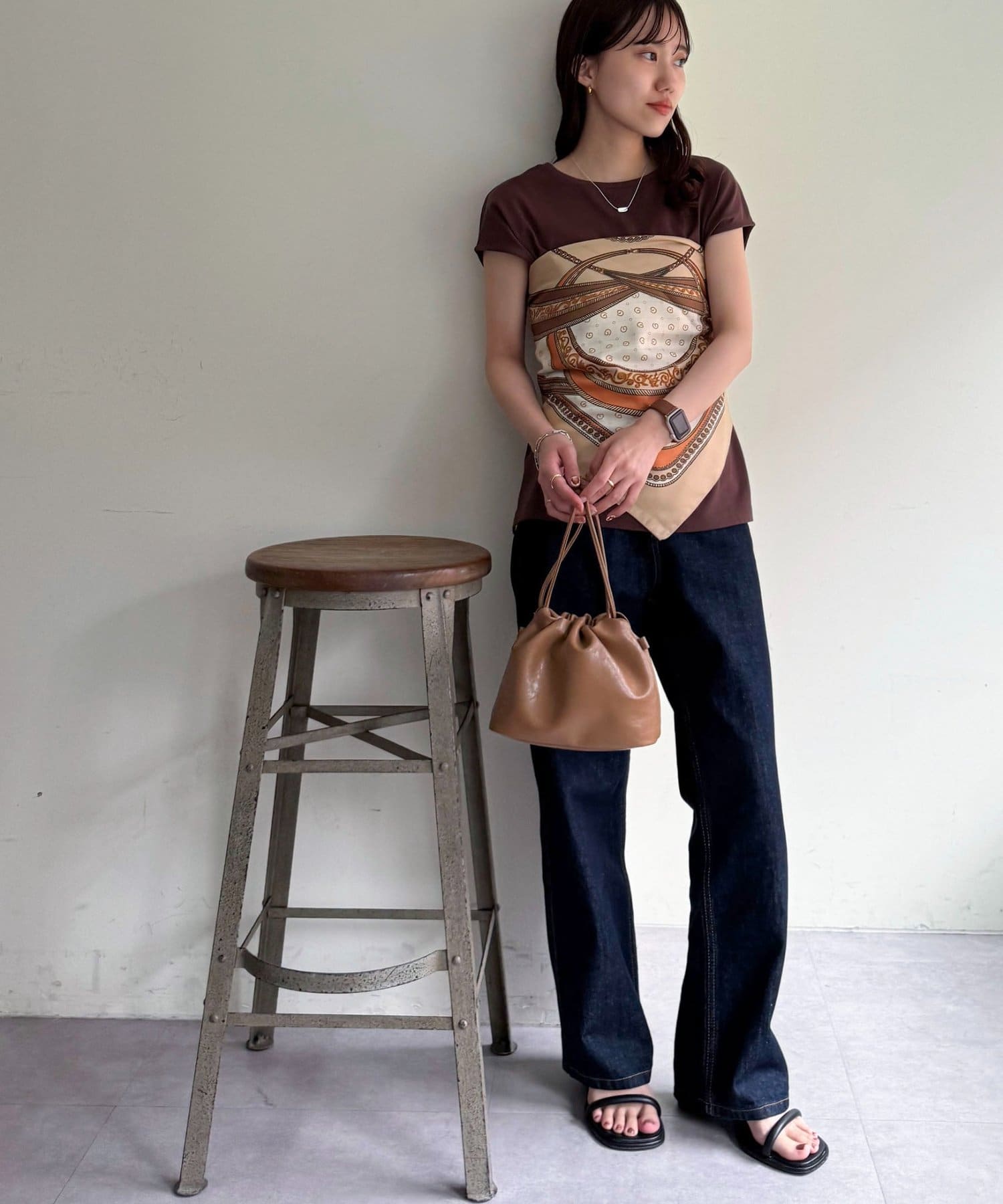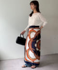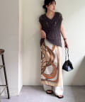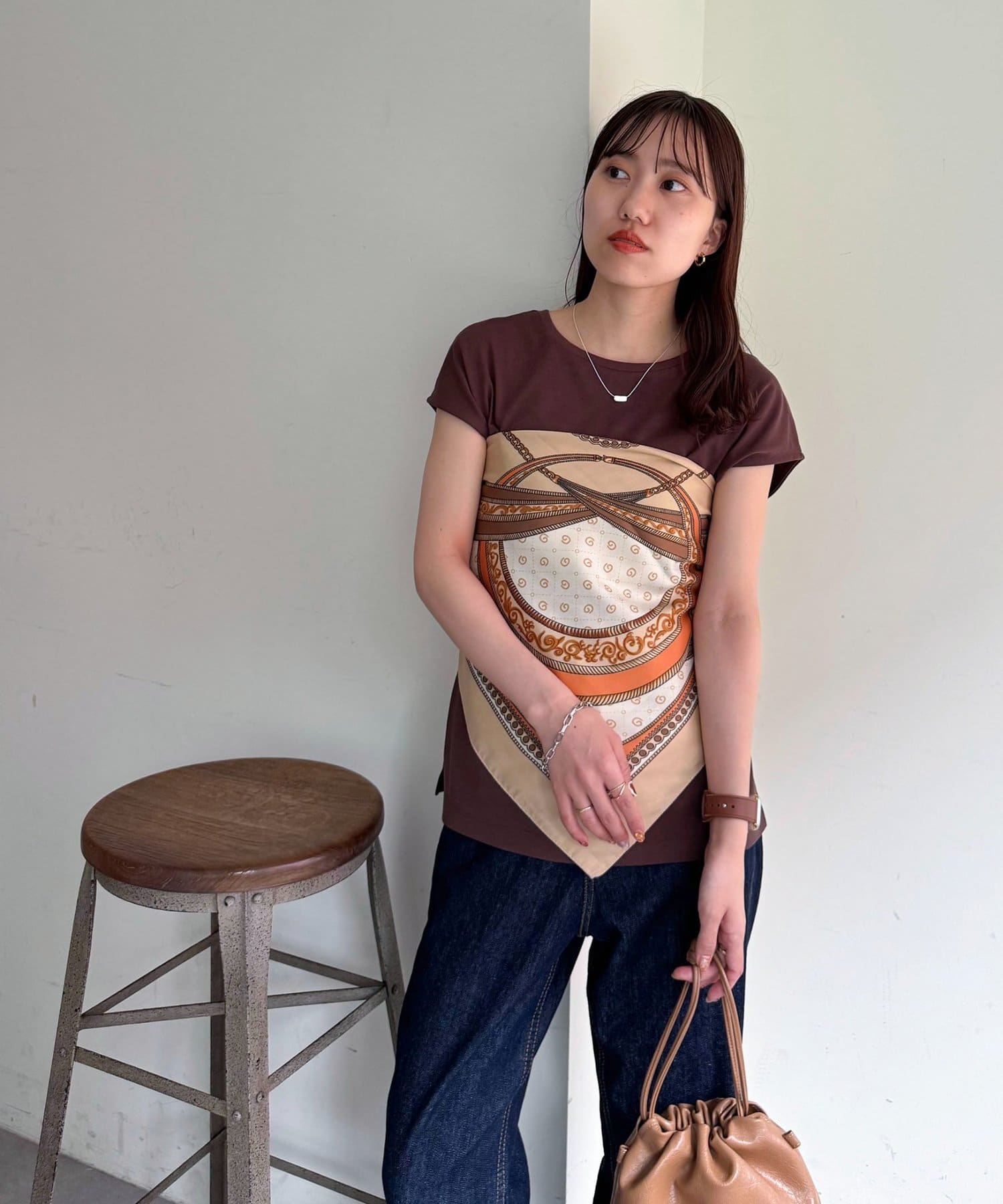 大判スカーフ風の柄が華やかで、合わせるだけでこなれ感が出ます
