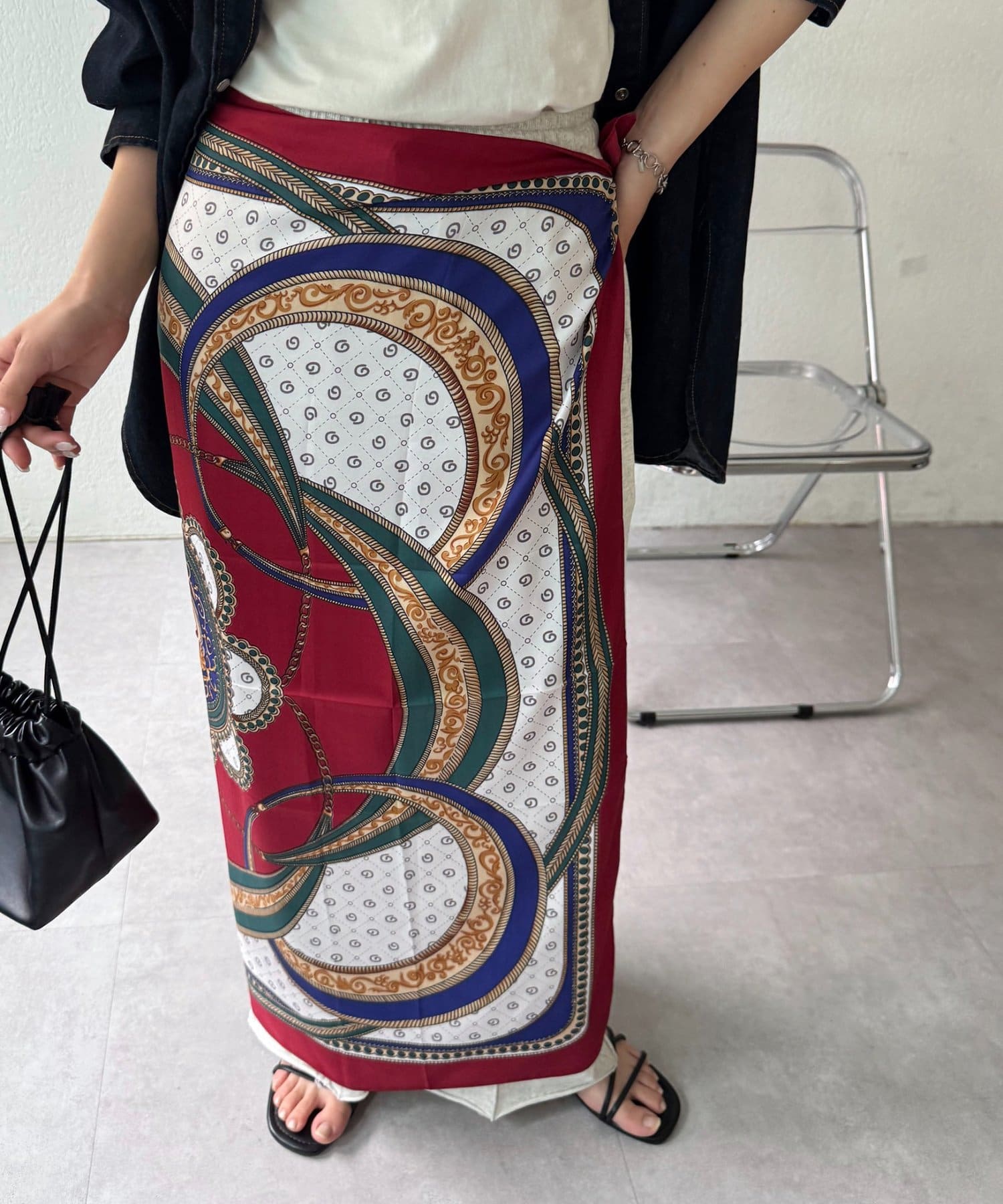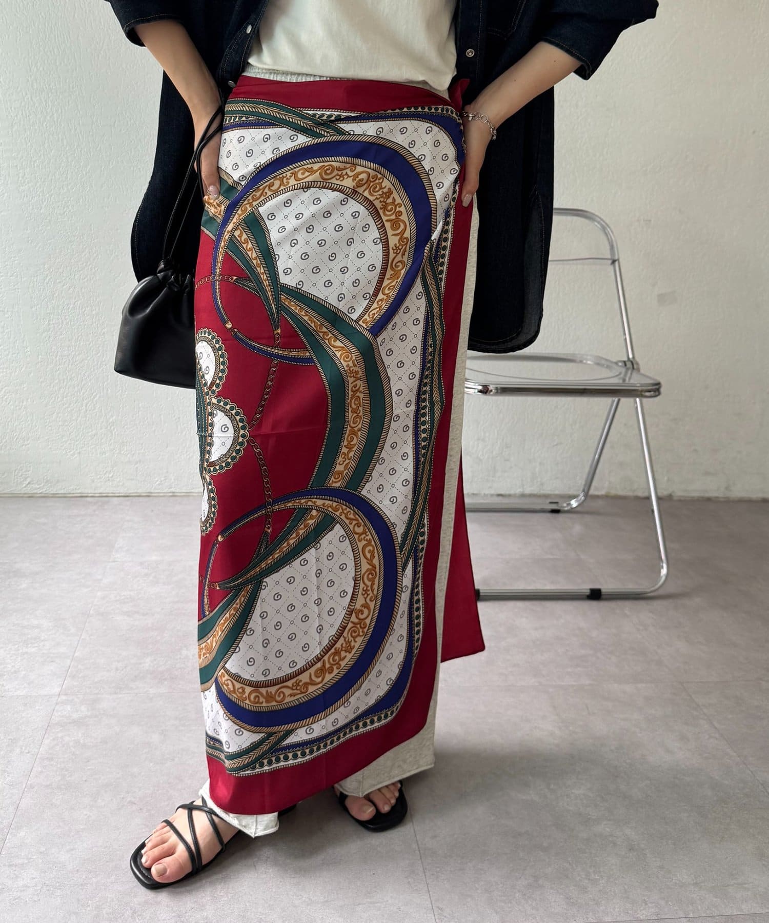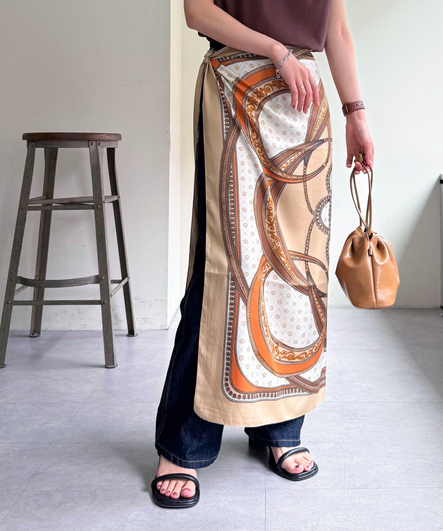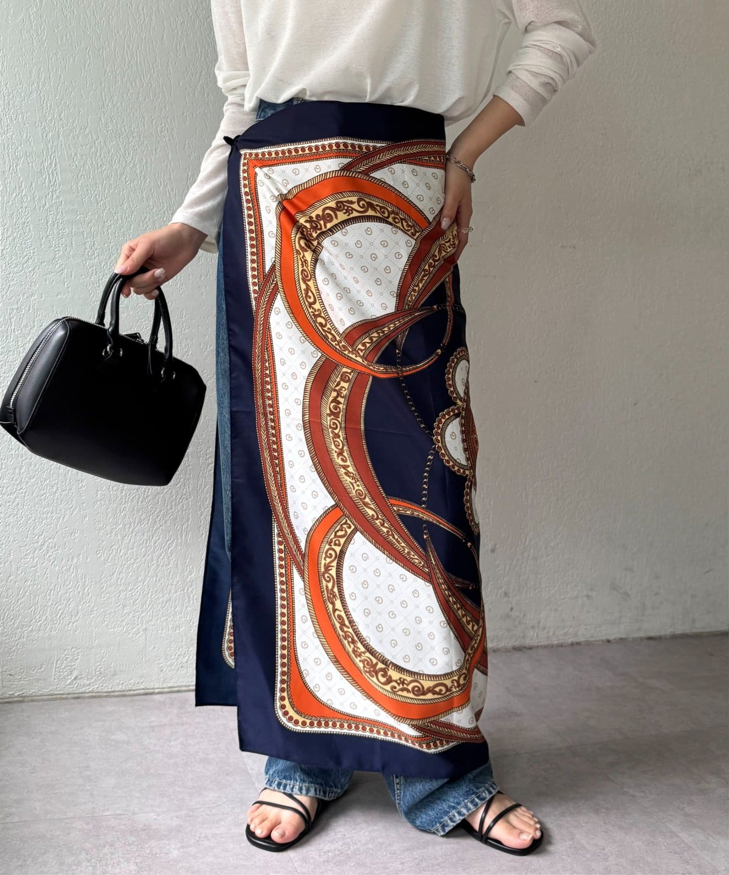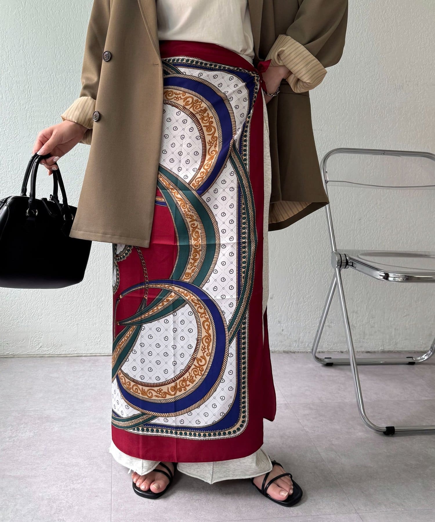 スタイリングのアクセントに◎大判スカーフ風ラップスカート