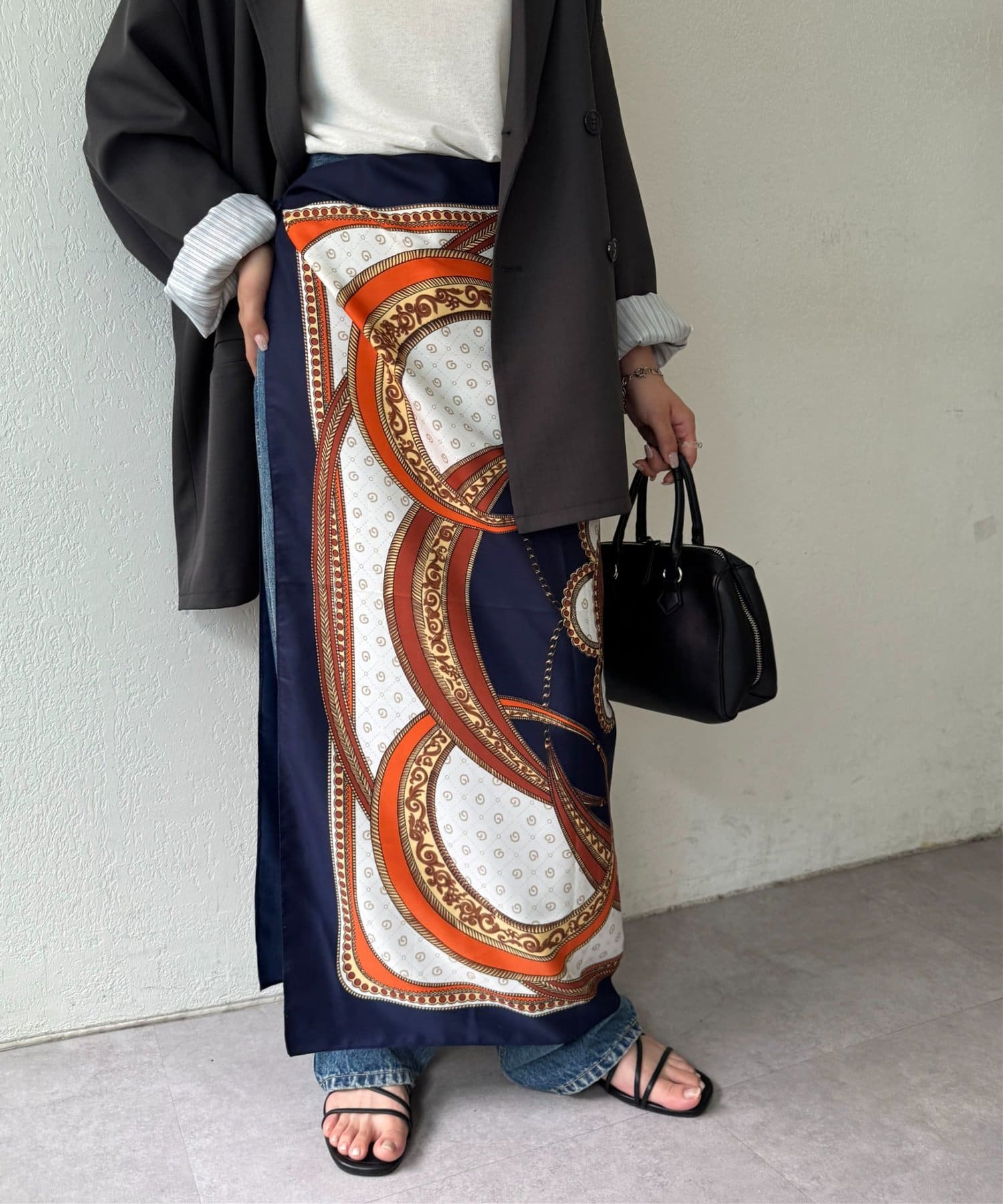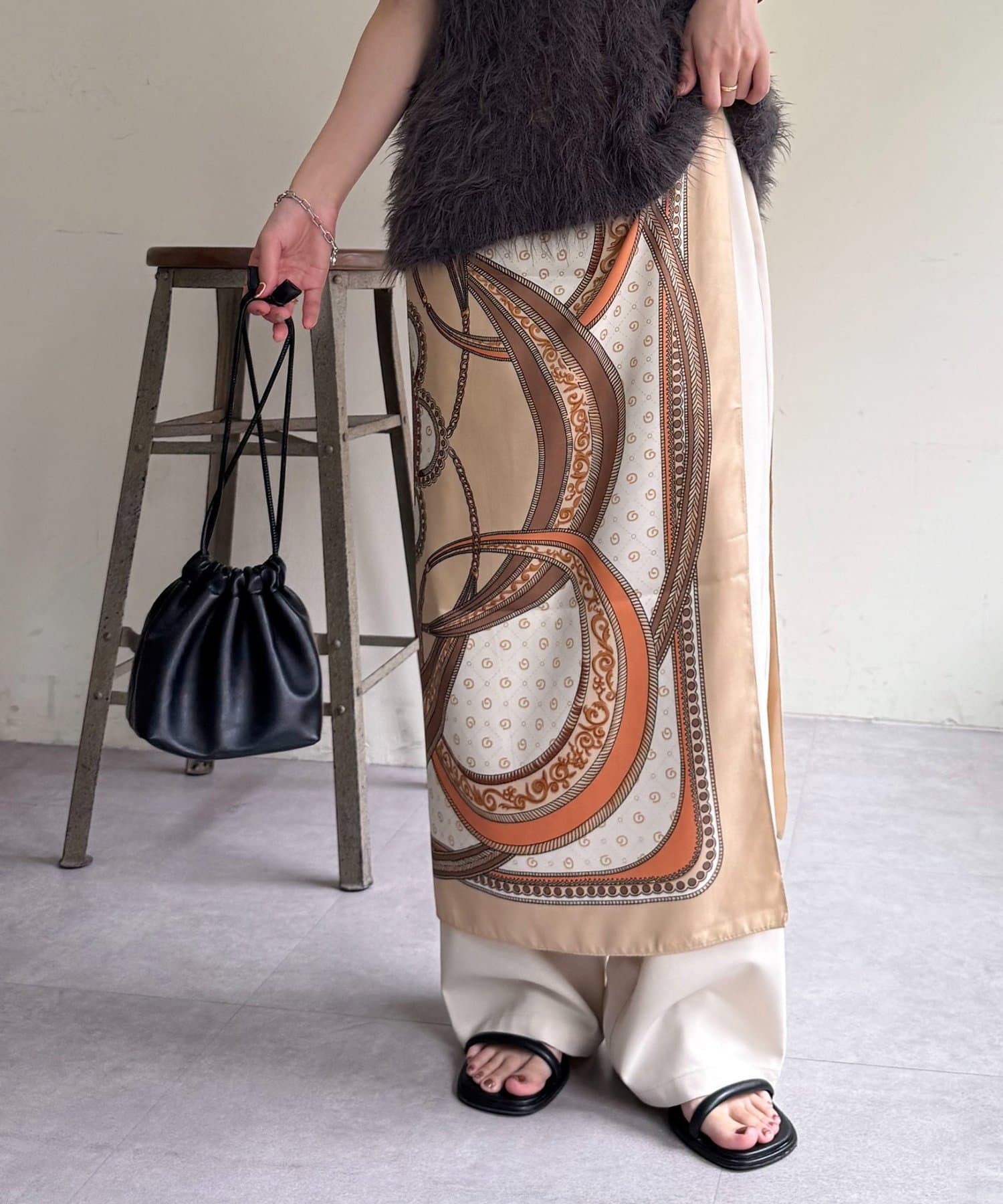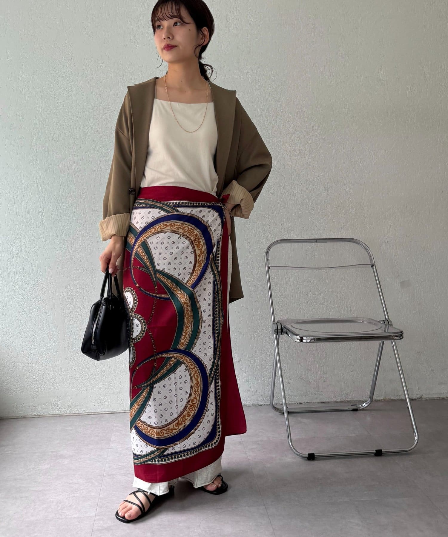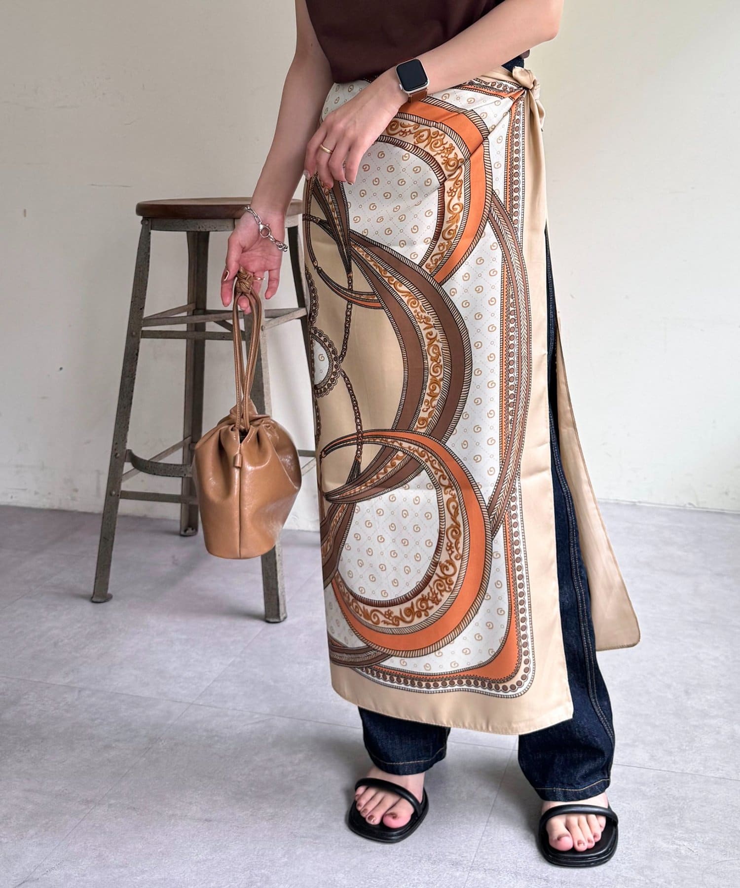 スタイリングのアクセントに◎大判スカーフ風ラップスカート