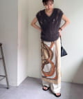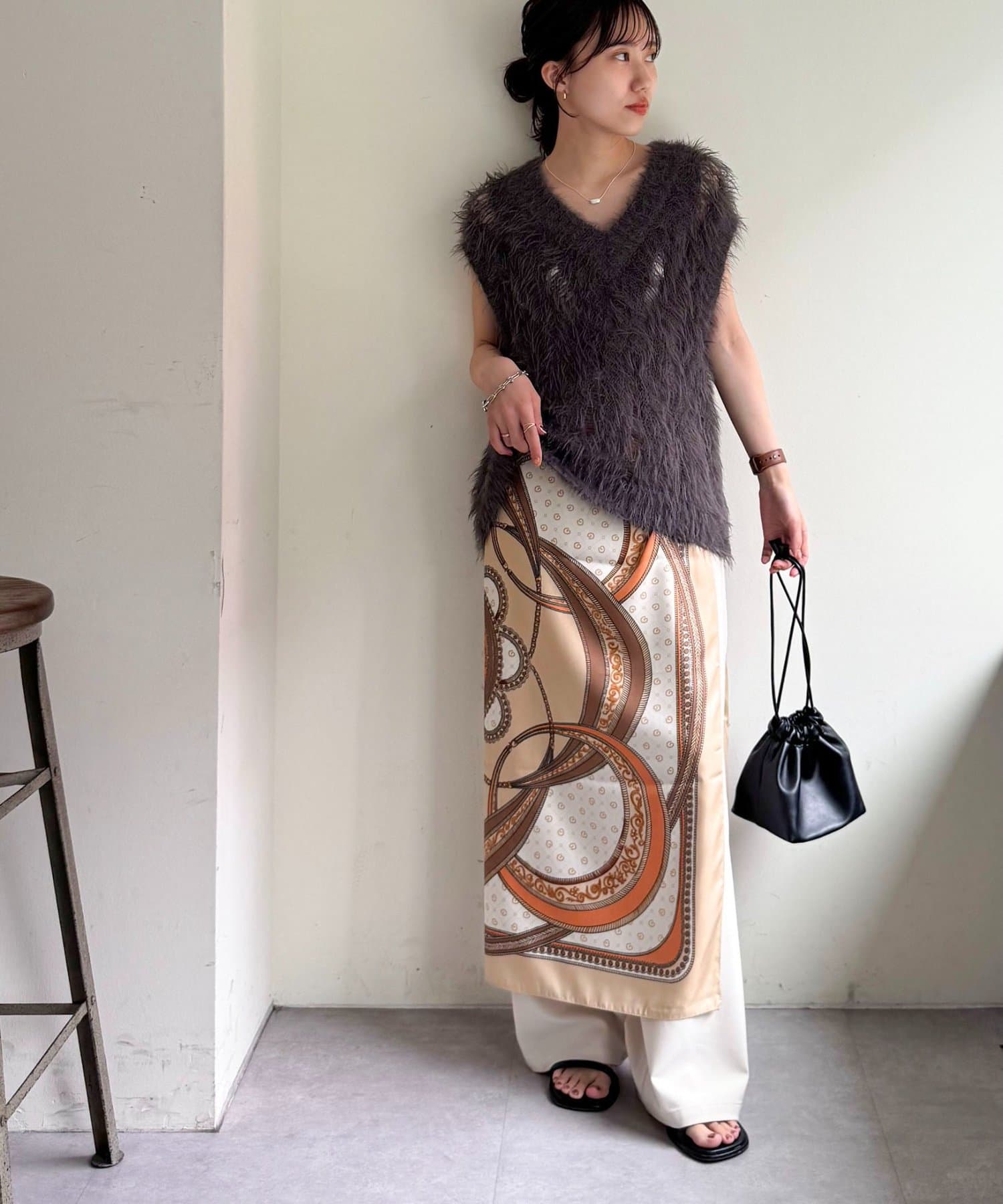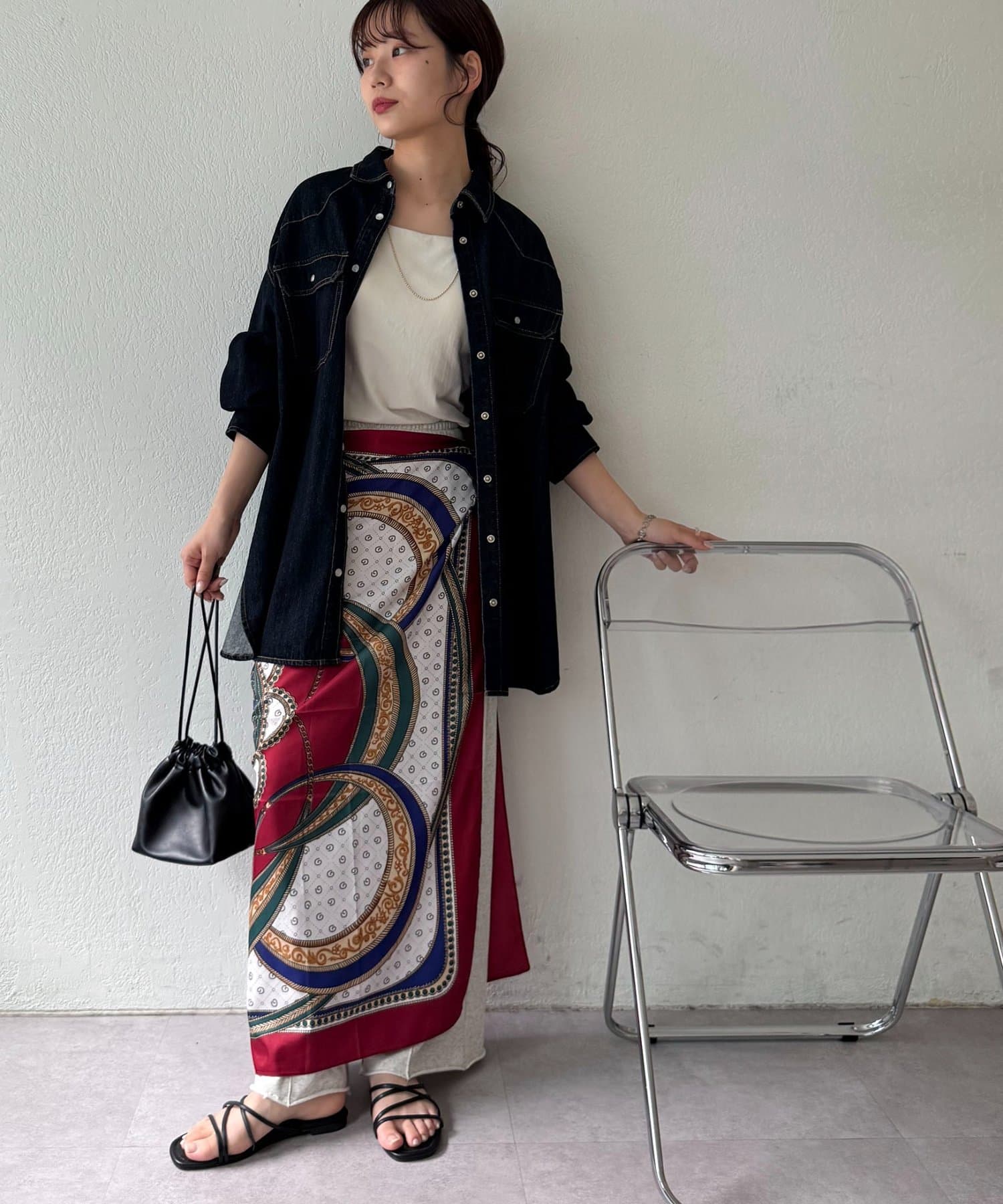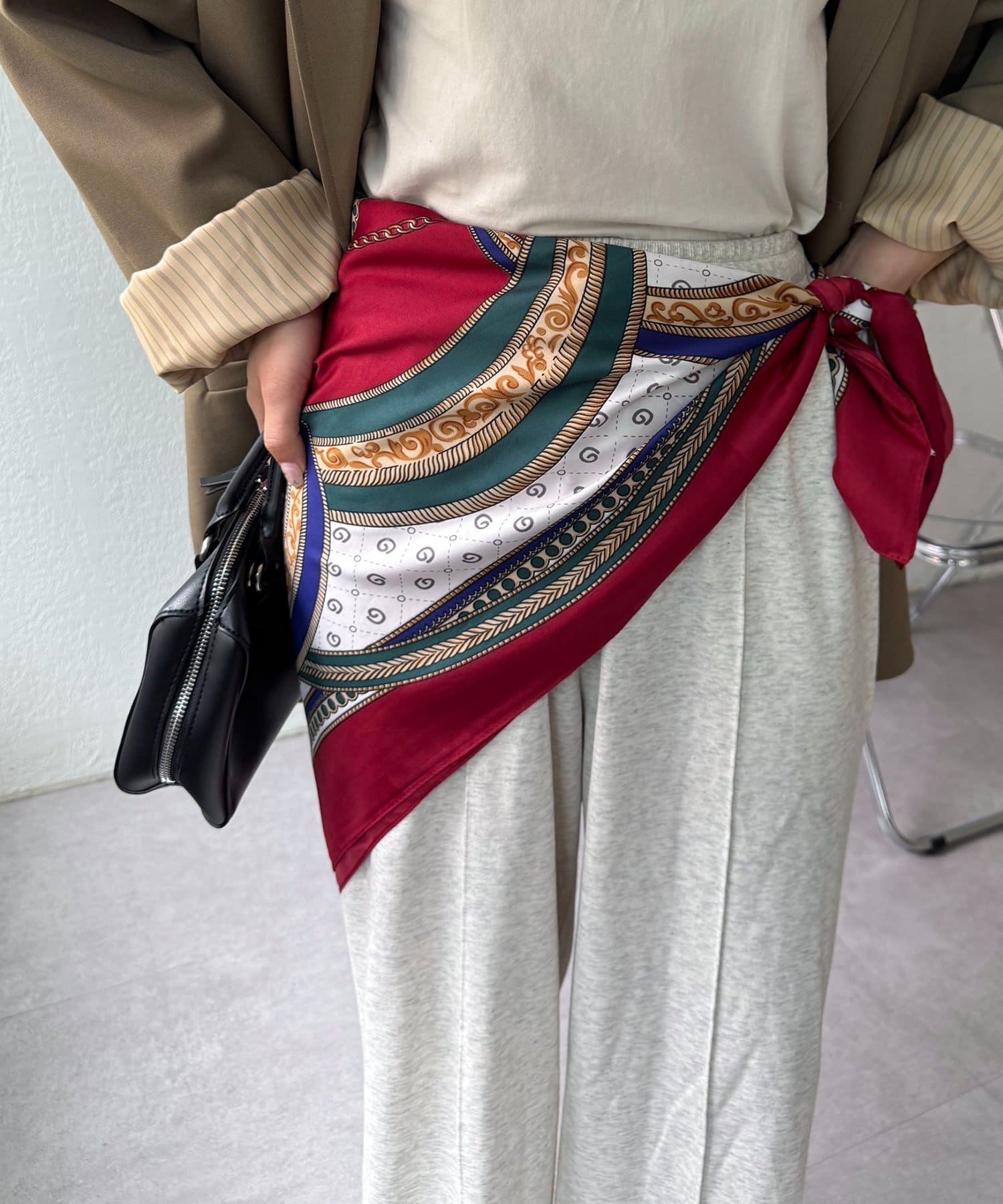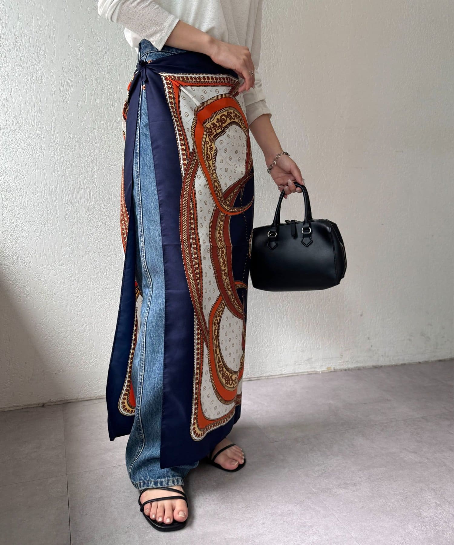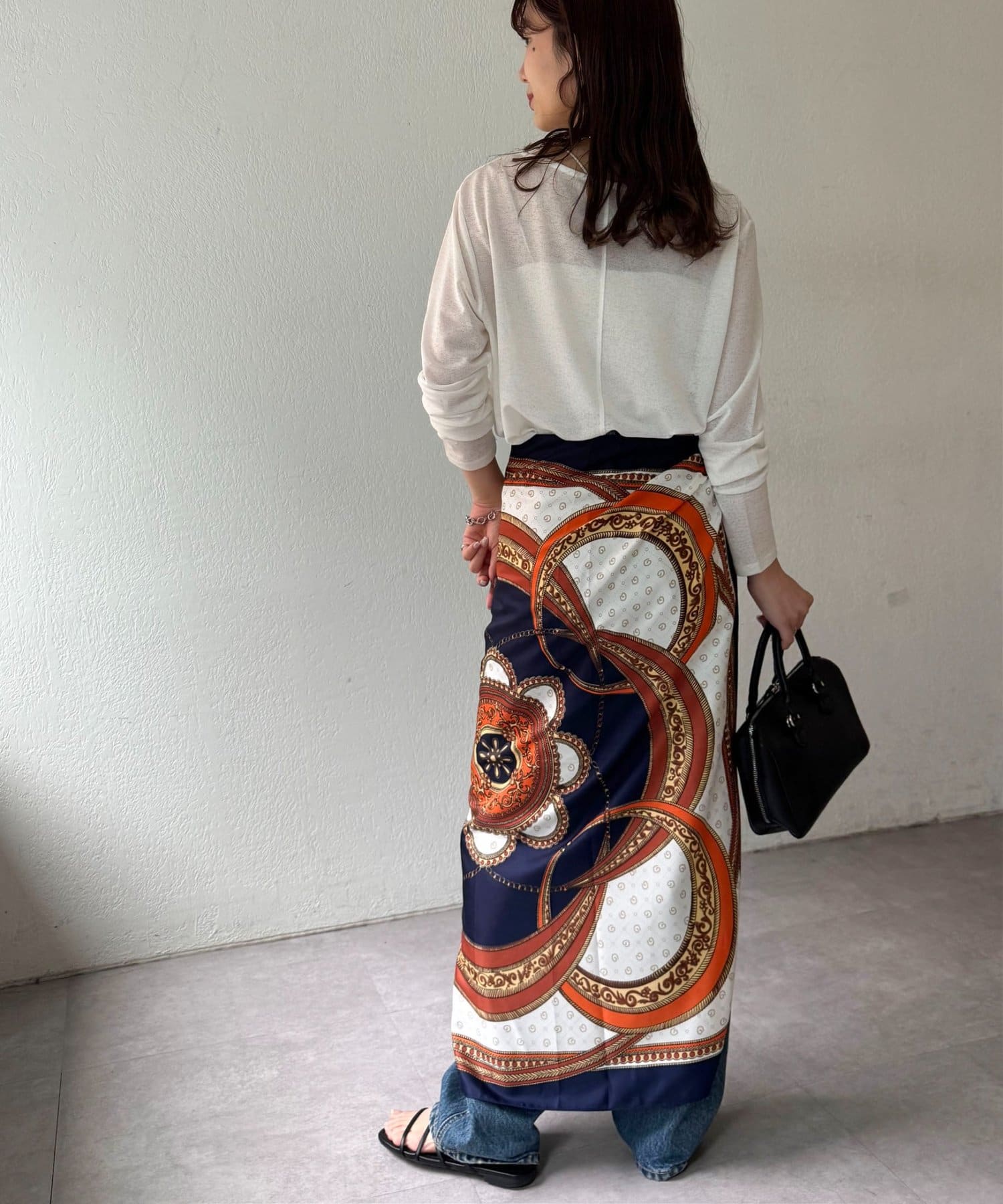 スタイリングのアクセントに◎大判スカーフ風ラップスカート