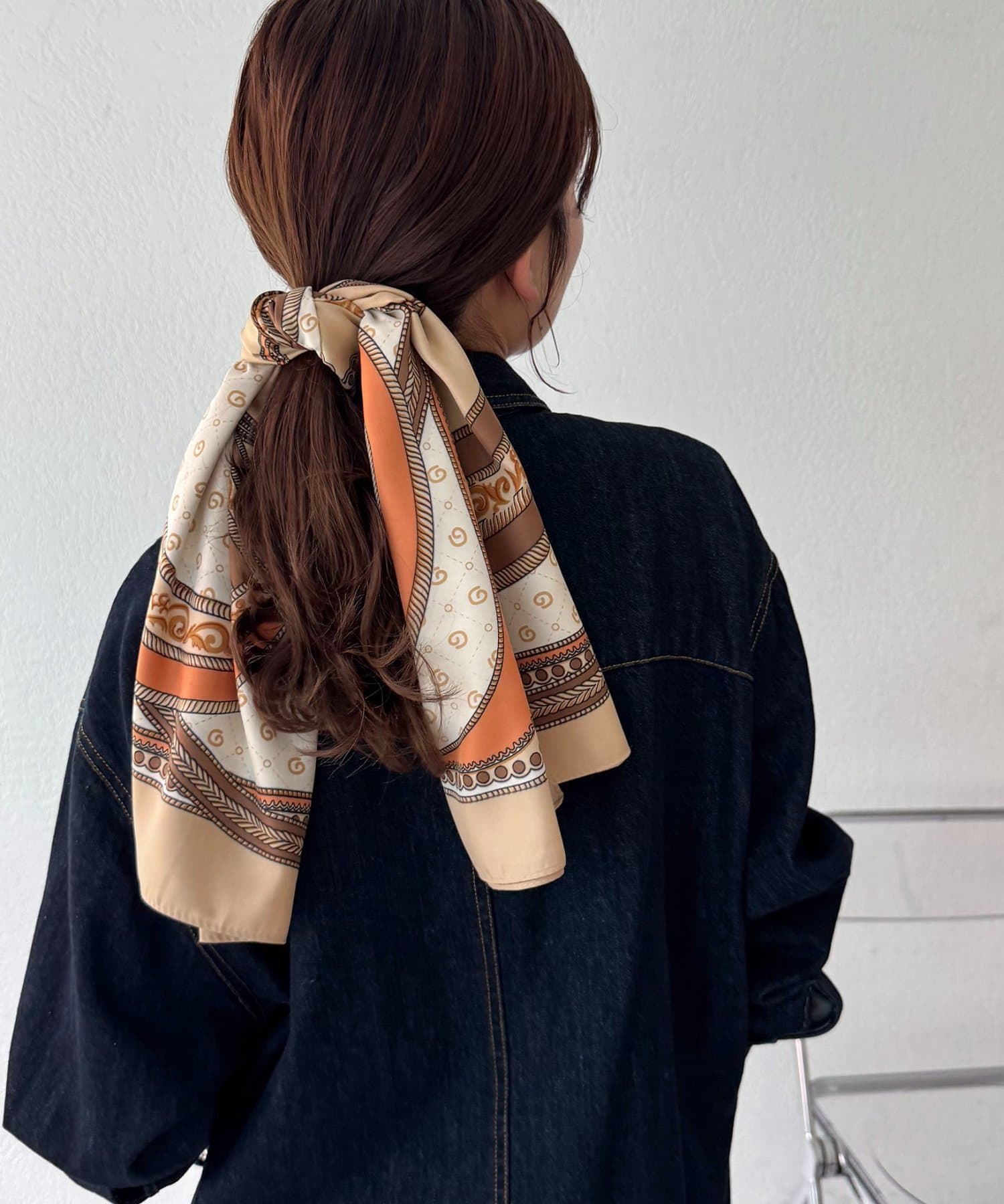 ・スカーフとしてヘアアレンジやバッグアクセにも使える万能アイテム
