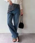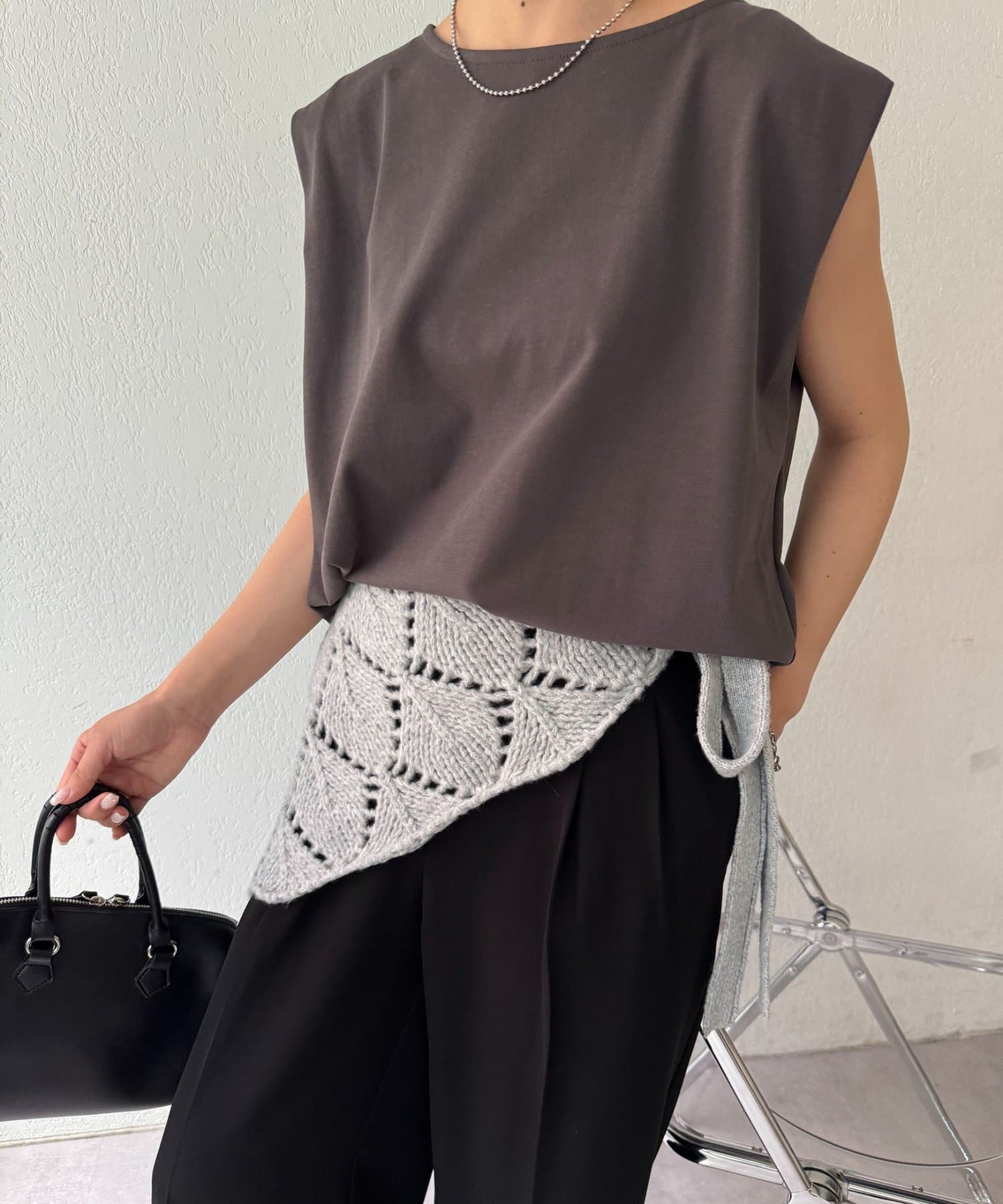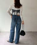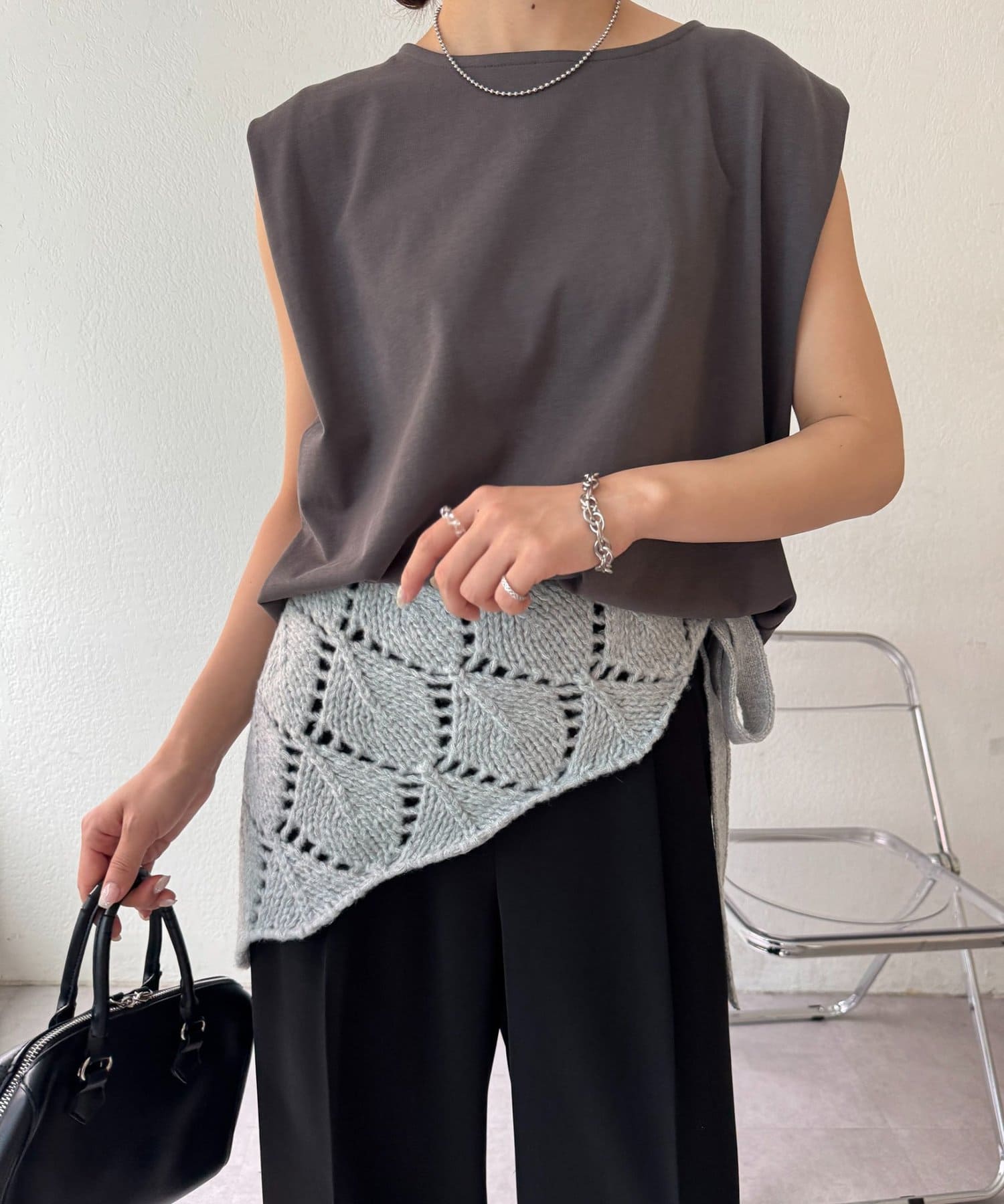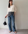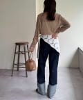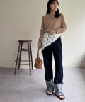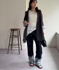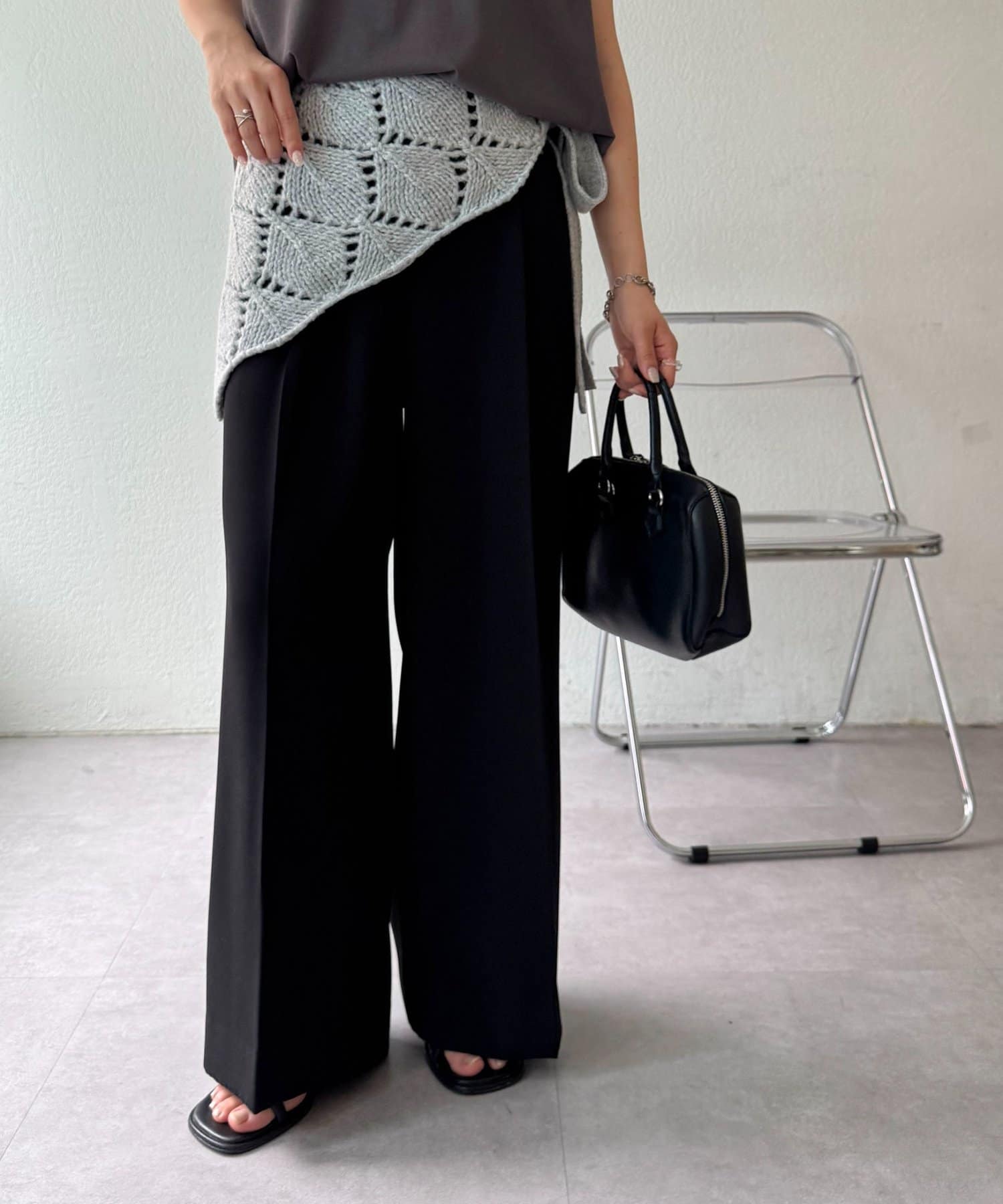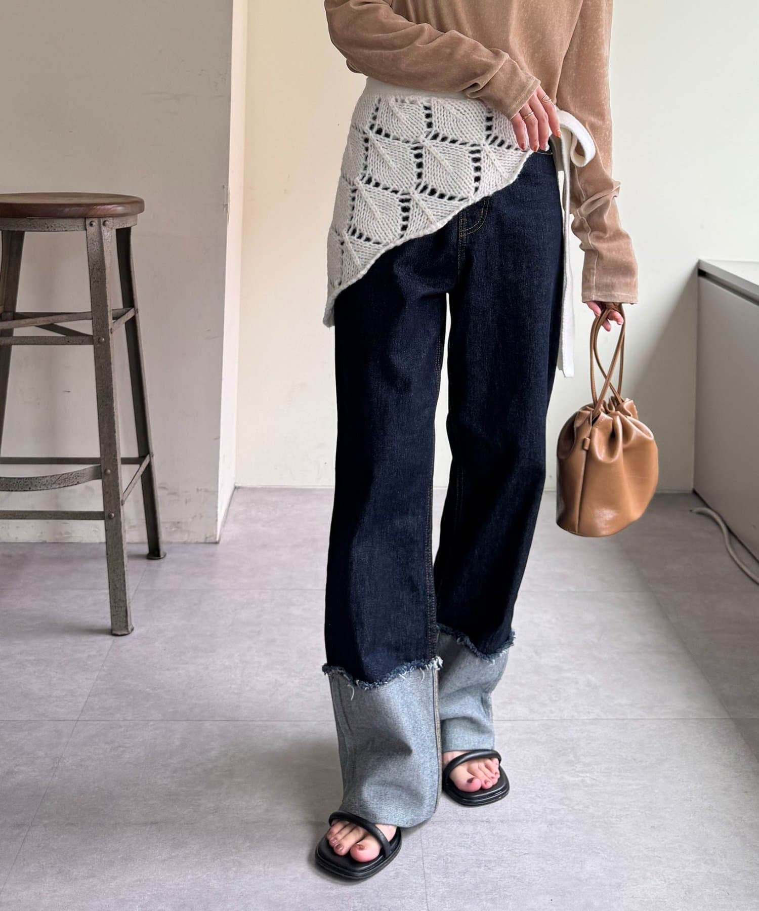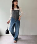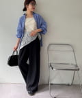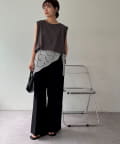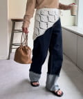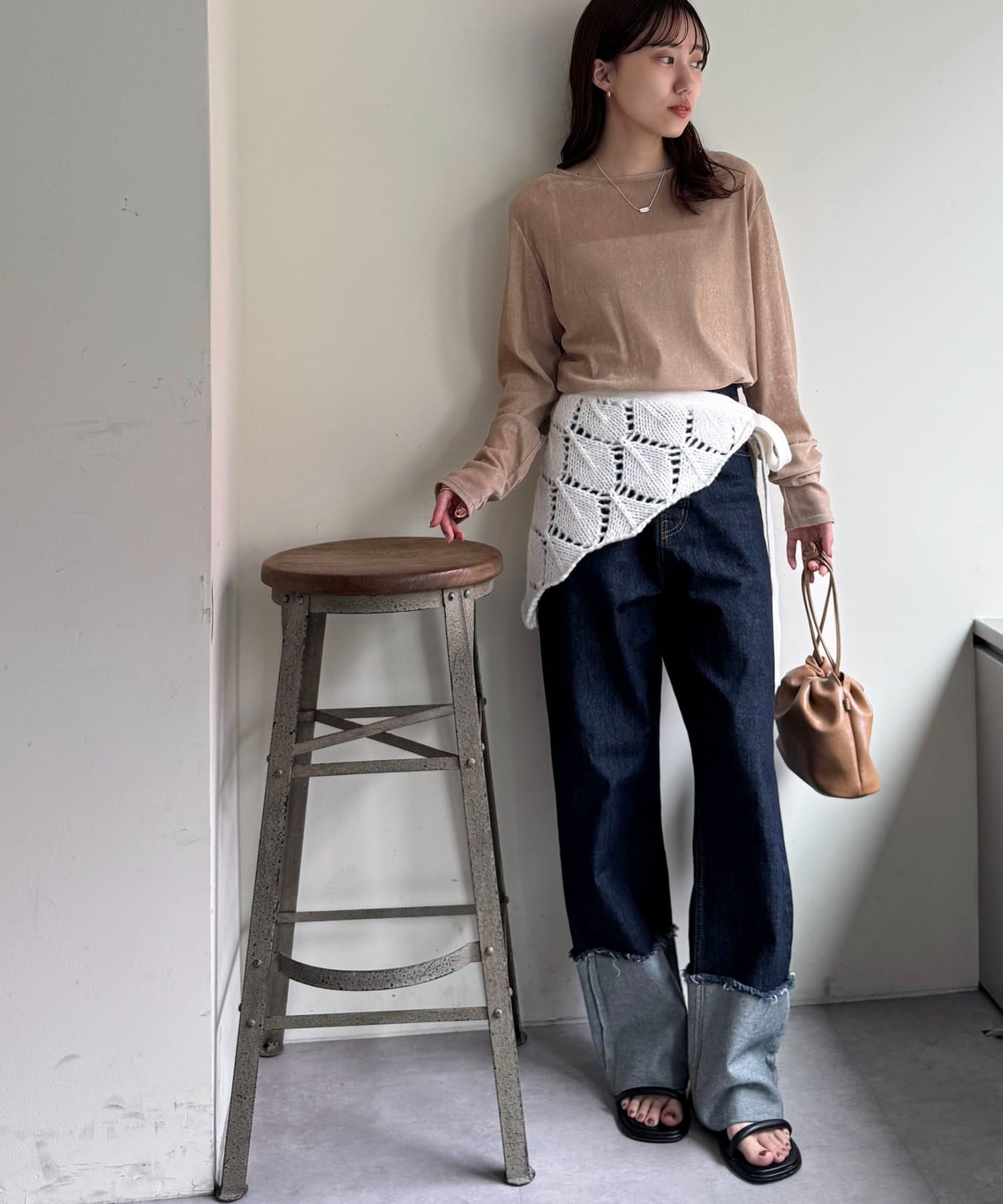デニムやスラックスなど、シンプルなボトムに重ねるだけでトレンド感あるレイヤードスタイルに。