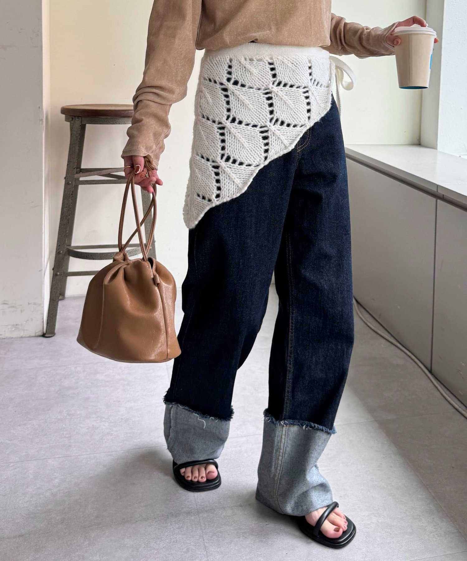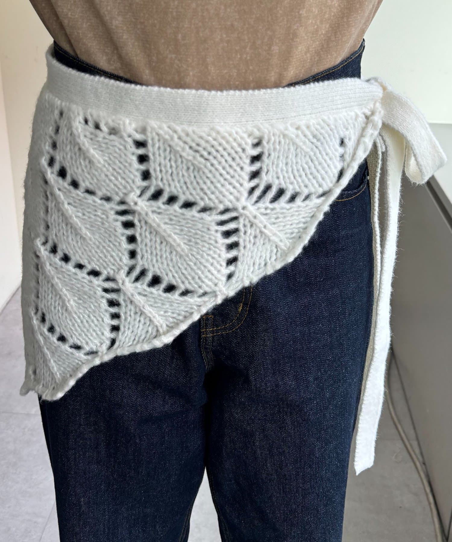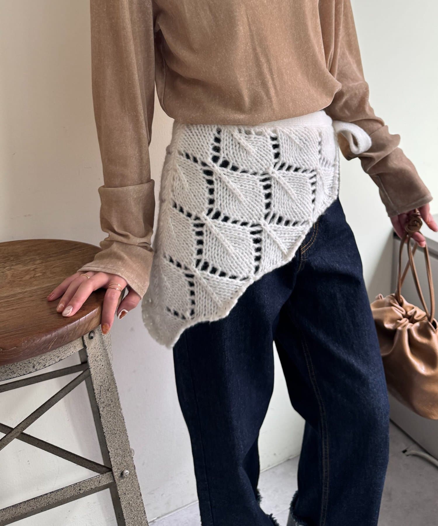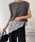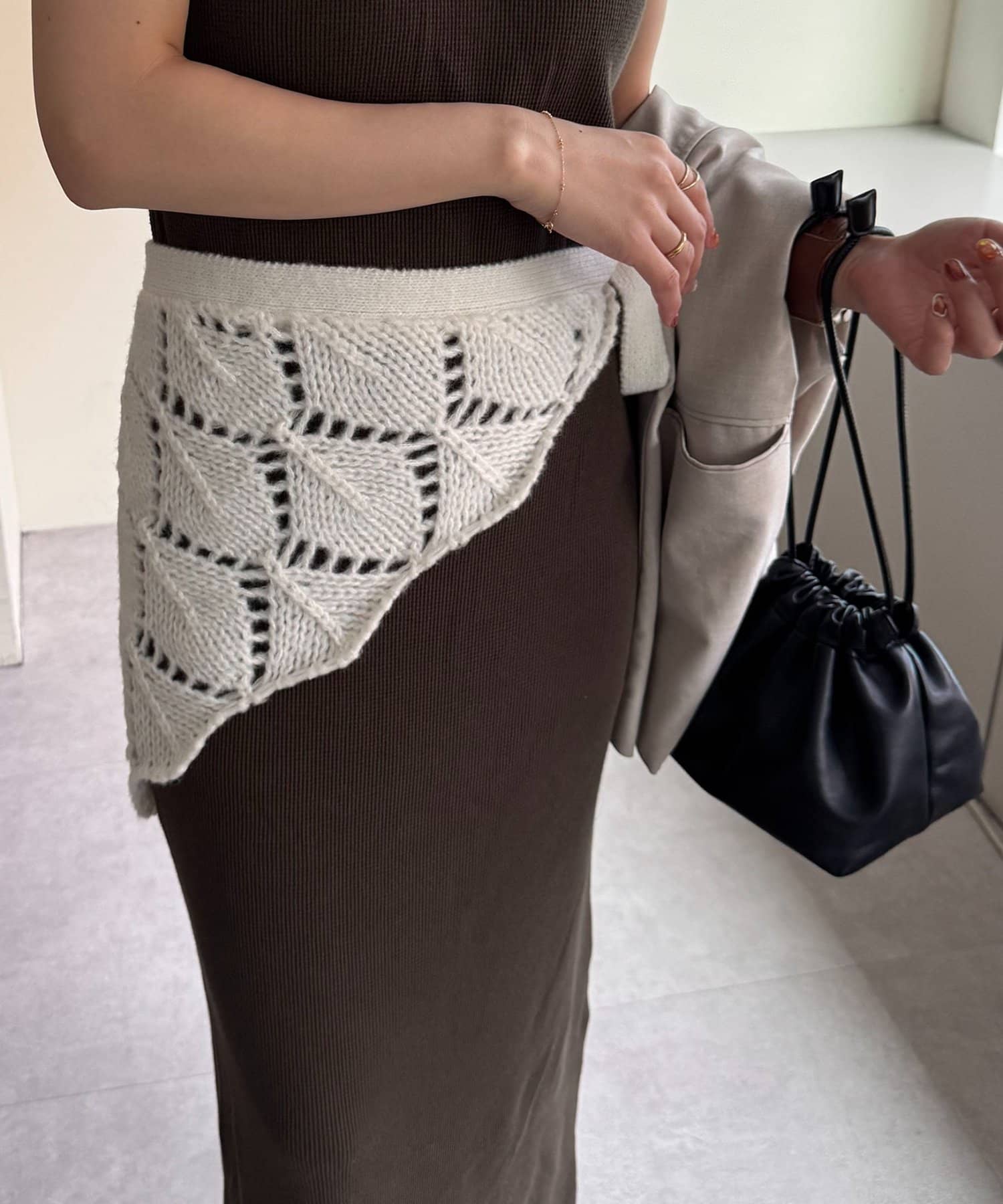 立体感のあるかぎ編みデザインがポイントで、シンプルなトップスやボトムに合わせるだけでこなれ感のあるスタイリングが完成します。