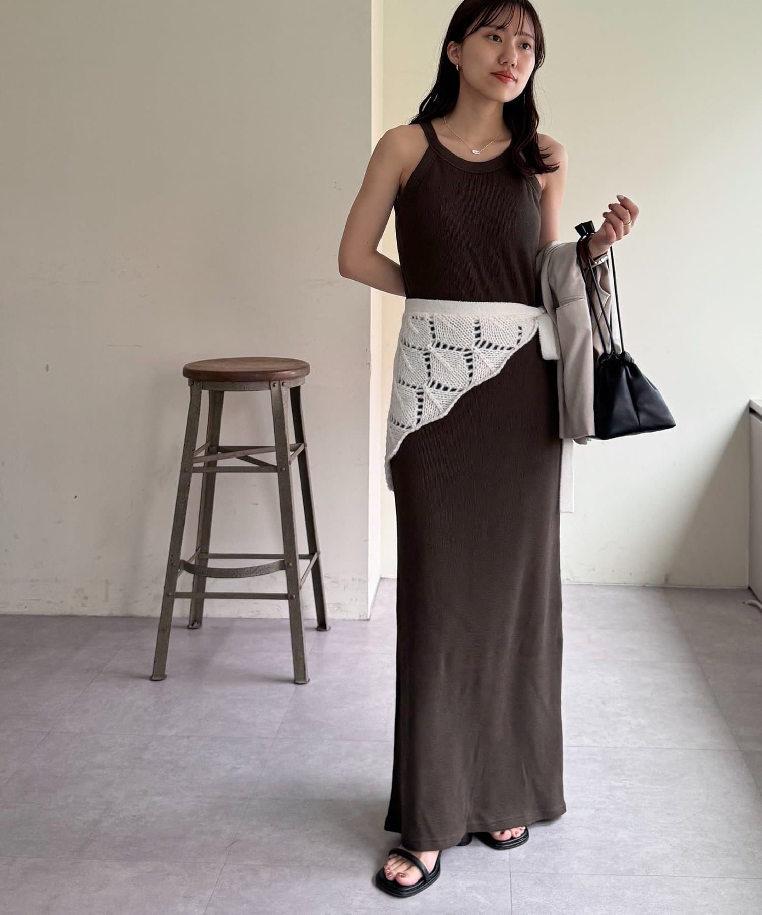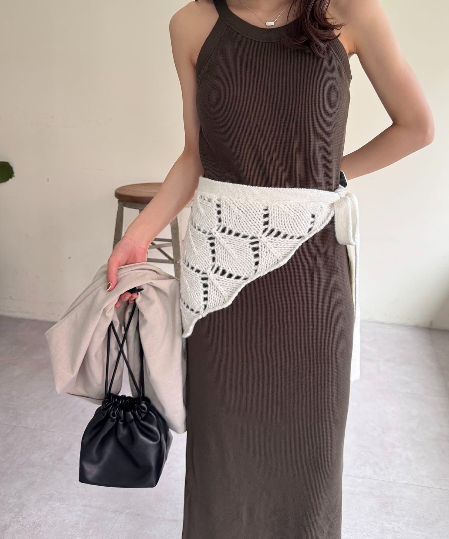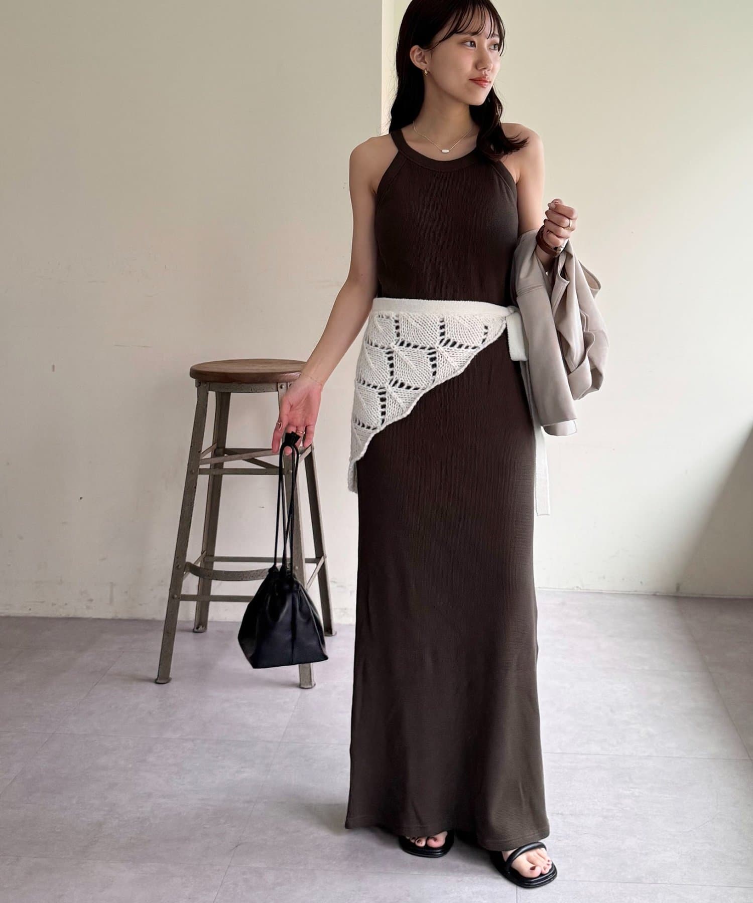 ワンピースの上から巻いてウエストマークする着こなしもおすすめです。