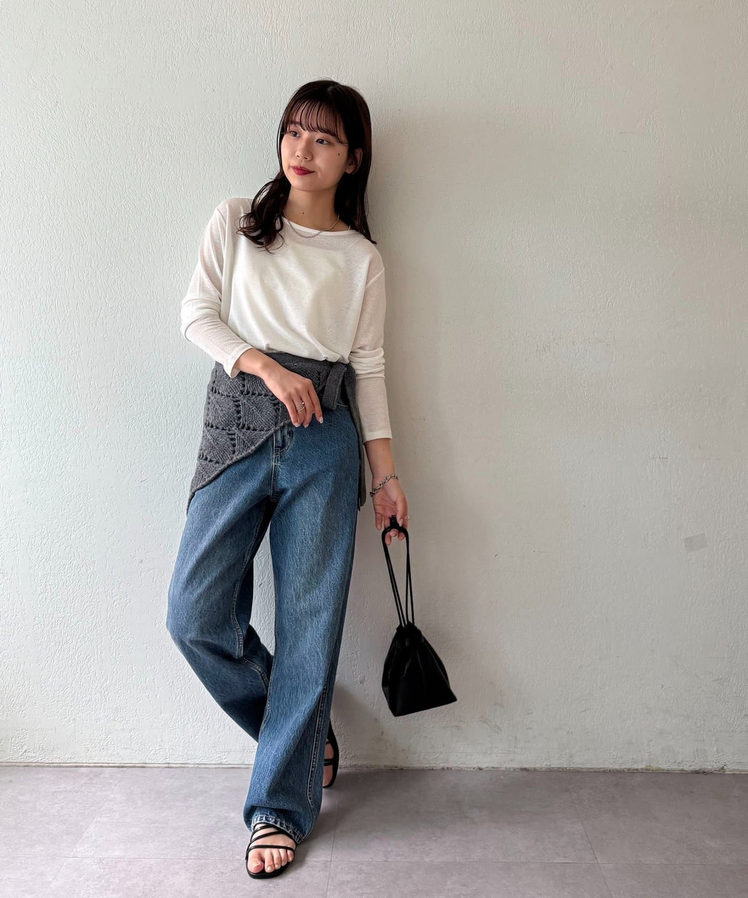 腰に巻くだけで一気におしゃれ度が上がるので、マンネリしがちなカジュアルコーデに重宝しそうです◎