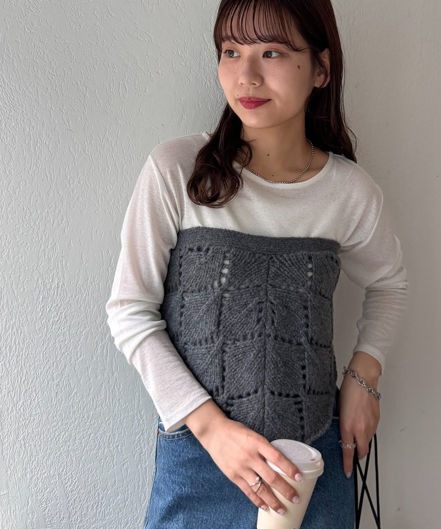 ニット素材ながらも軽やかな印象なので、ロングシーズン活躍してくれる万能アイテム♪