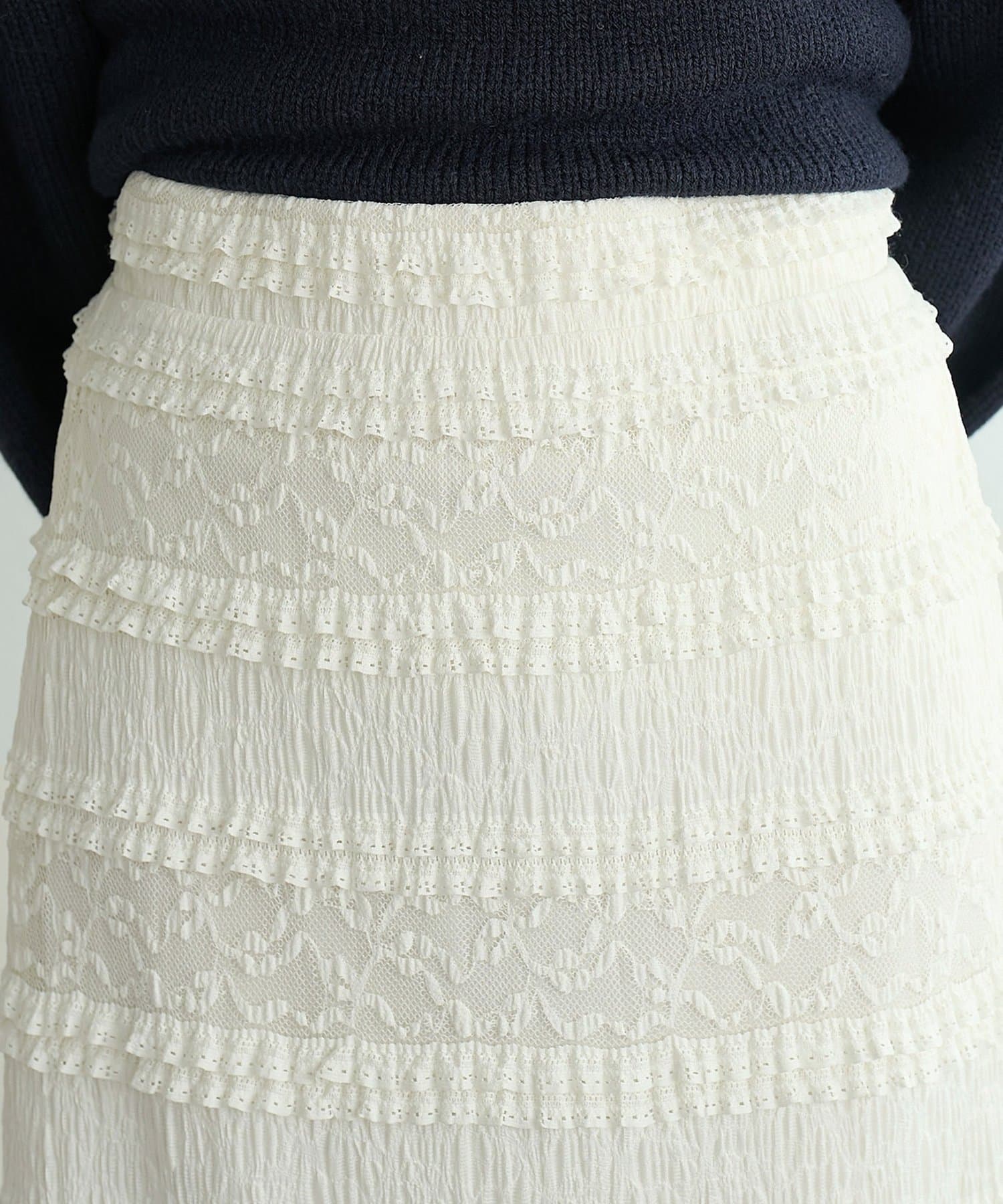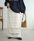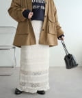 女性らしさを引き立てる、繊細なレースを取り入れたナロースカート。