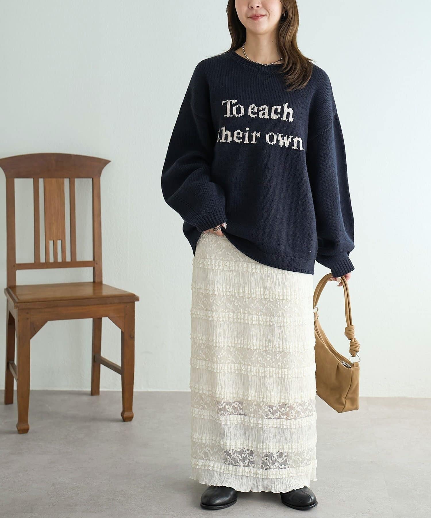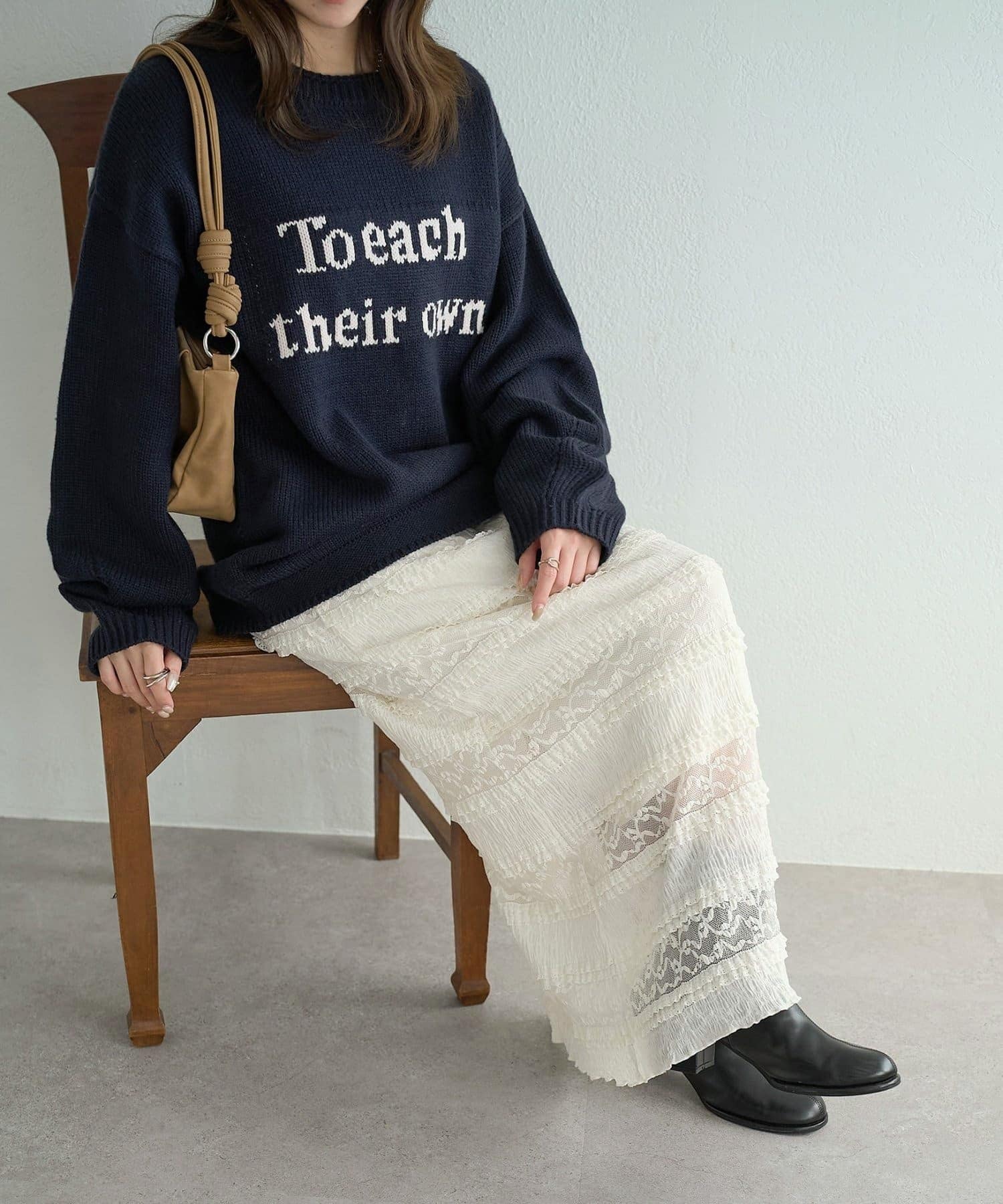 ロゴニットやスウェットを合わせたカジュアルコーデやカーディガンやシャツを合わせたキレイメコーデまで〇