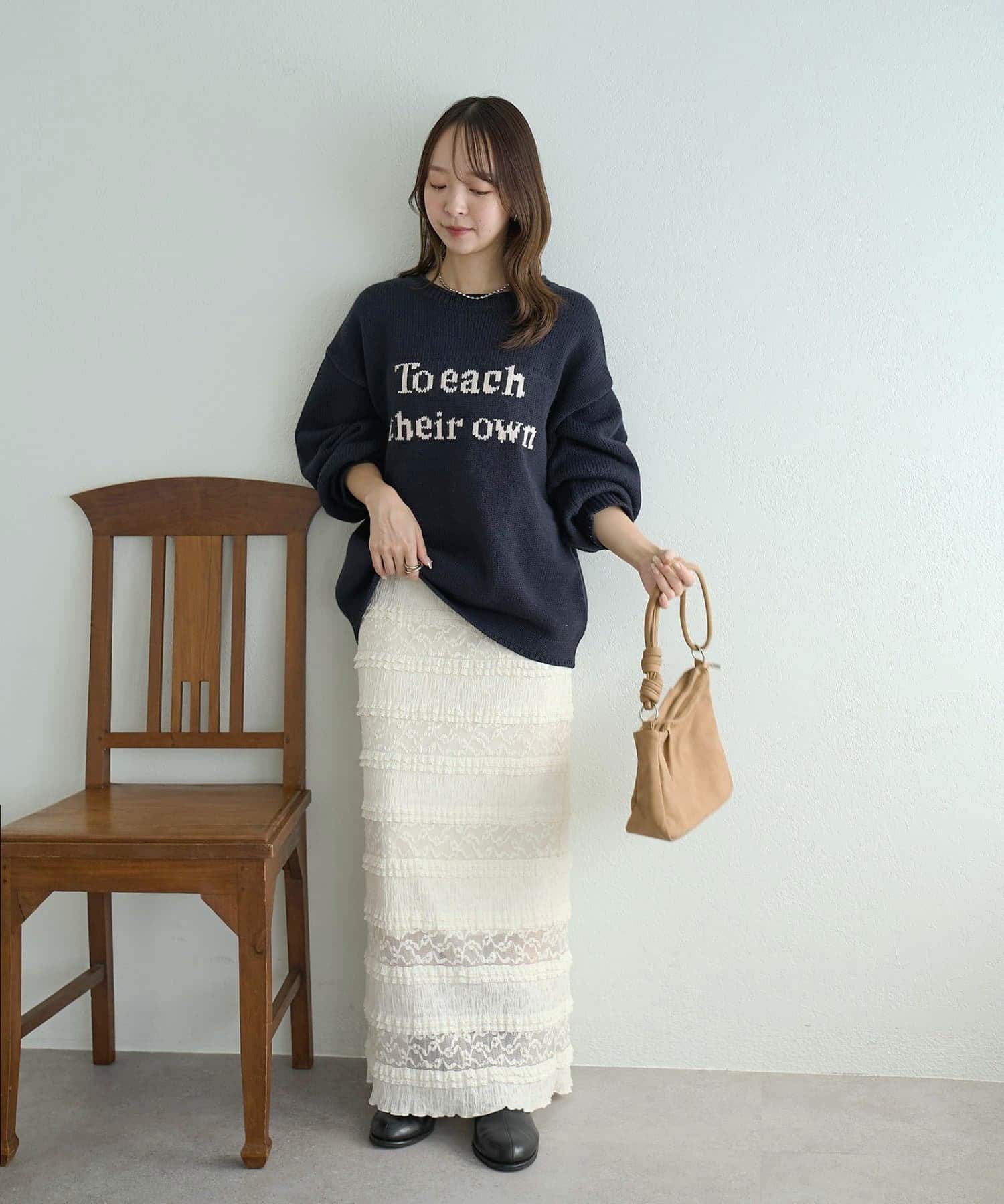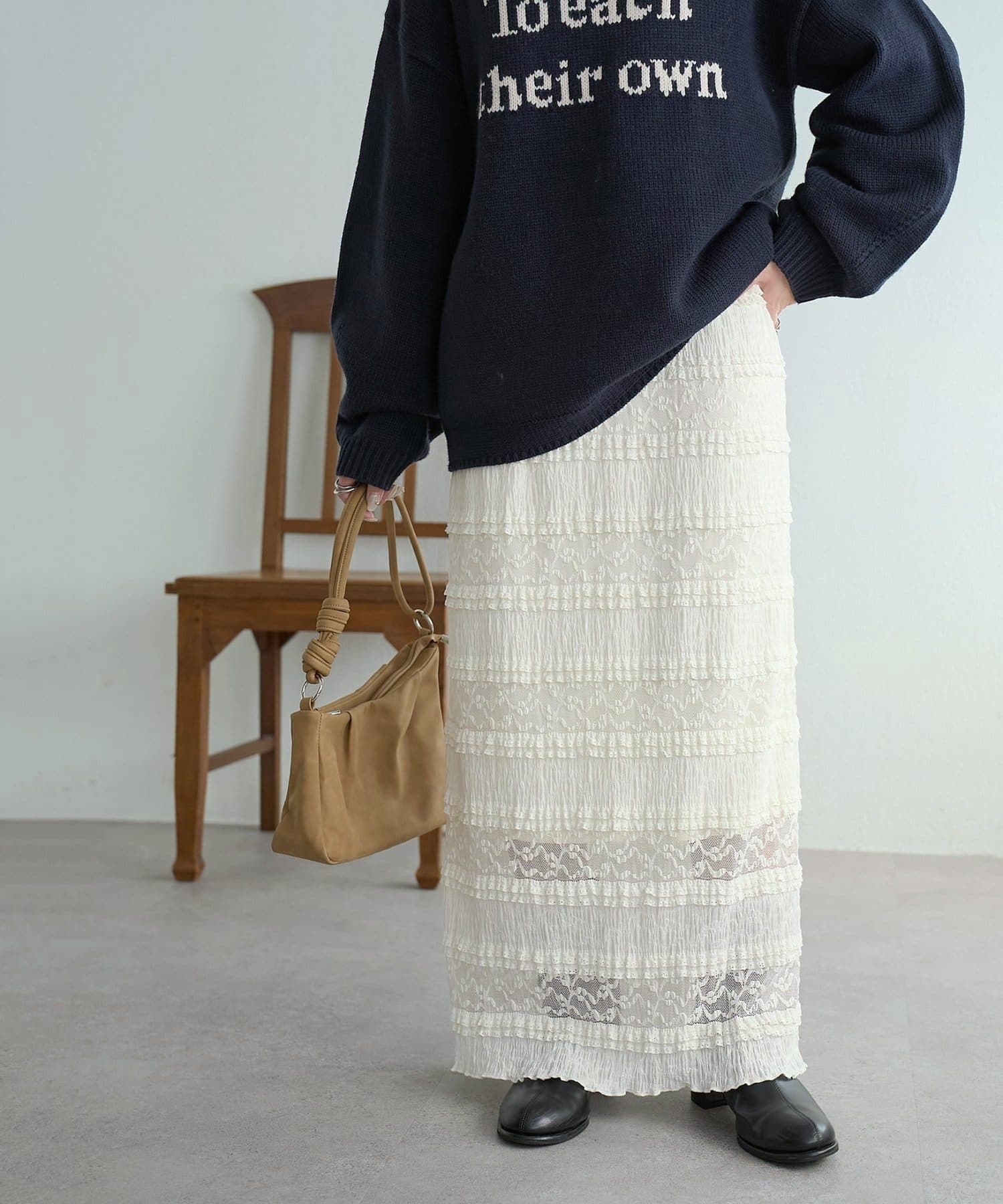 存在感のあるレーススカートはシンプルなトップスとの合わせがおすすめ!