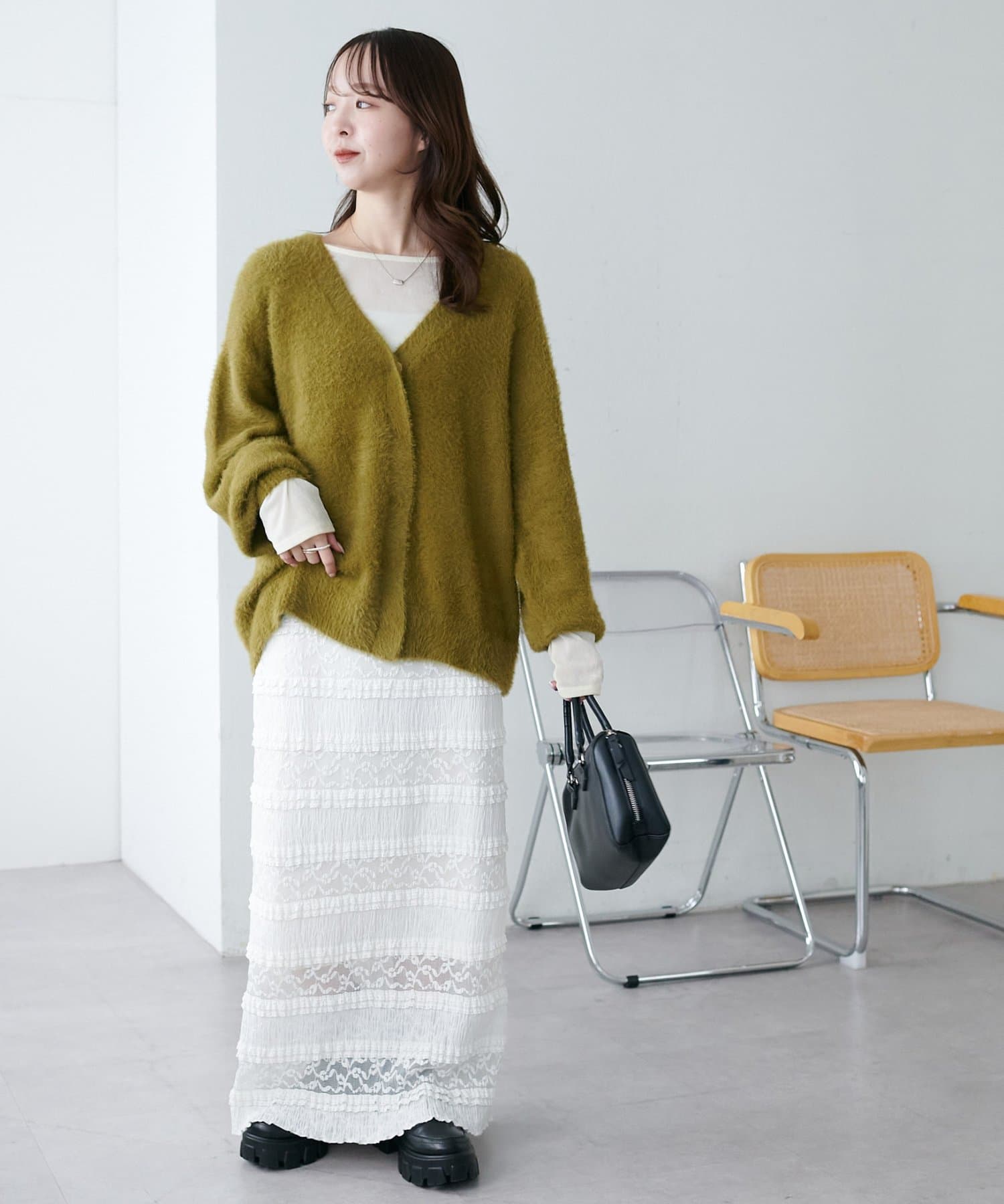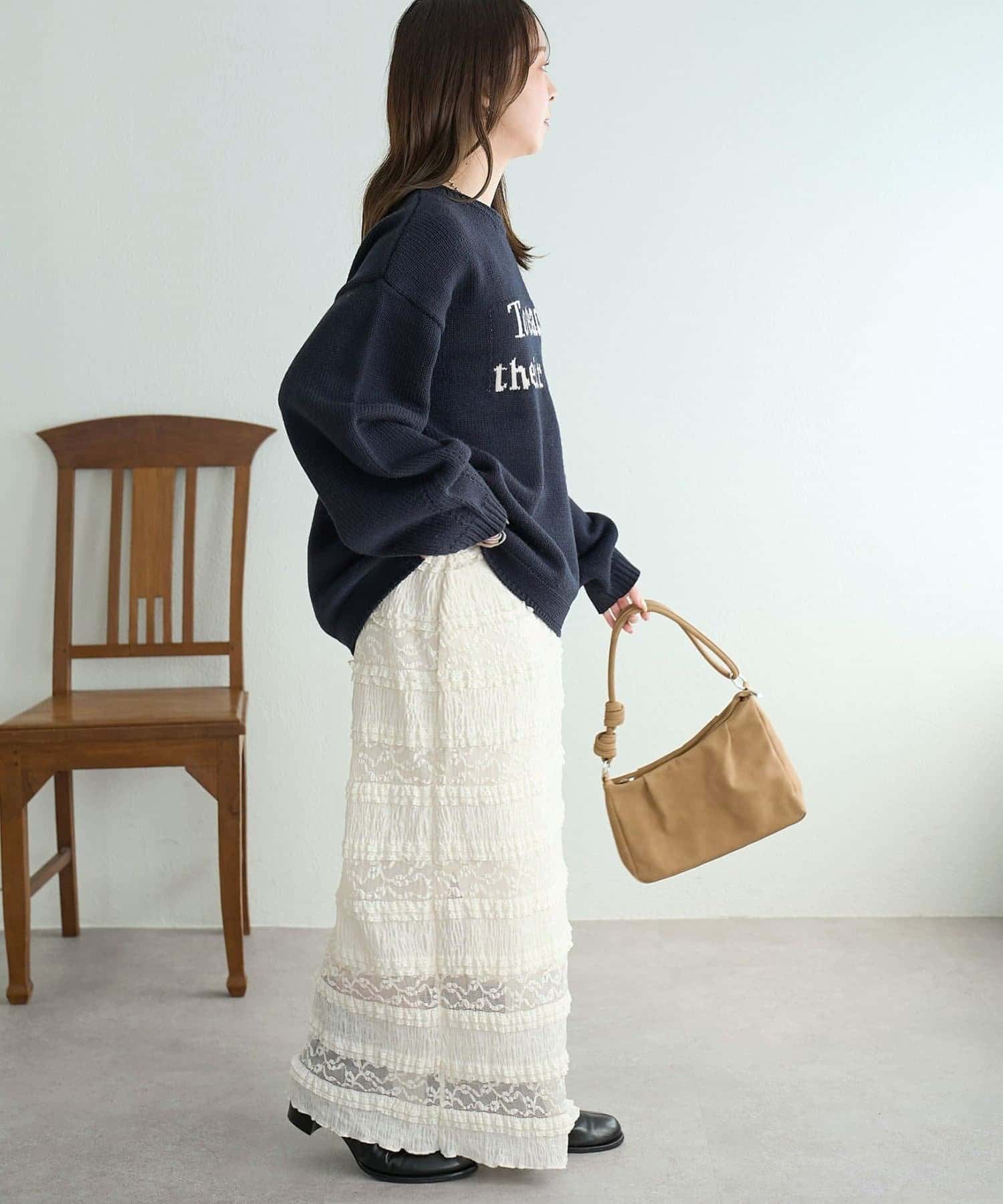 158cmスタッフ:ナロースカートですが、柔らかいレース素材なので動くたびに足元に揺れ感がでて軽やかな印象になります!