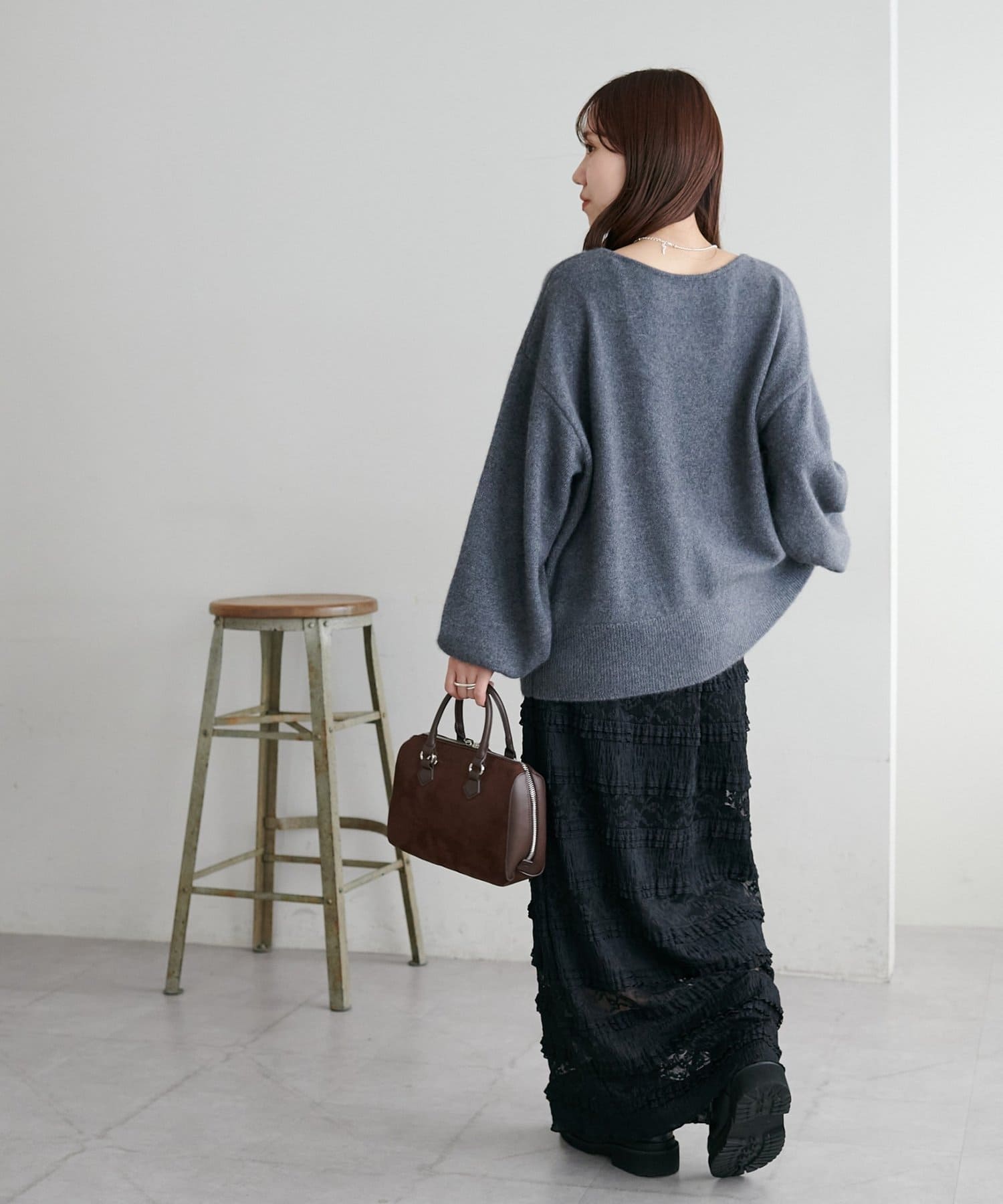 裏地はひざ下まであり、足元は透け感があるのでブーツを合わせても抜け感がでて軽やかな印象になります。