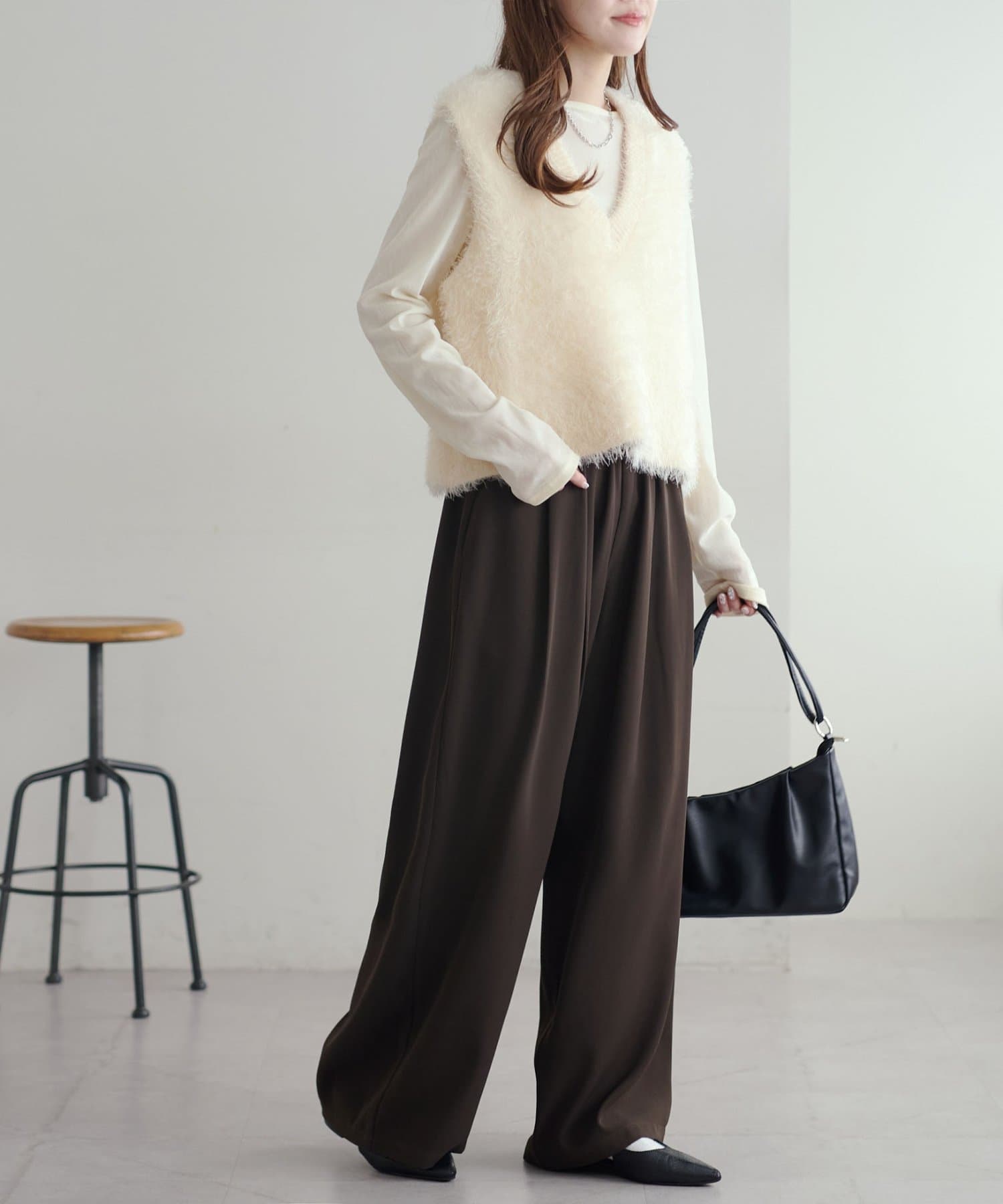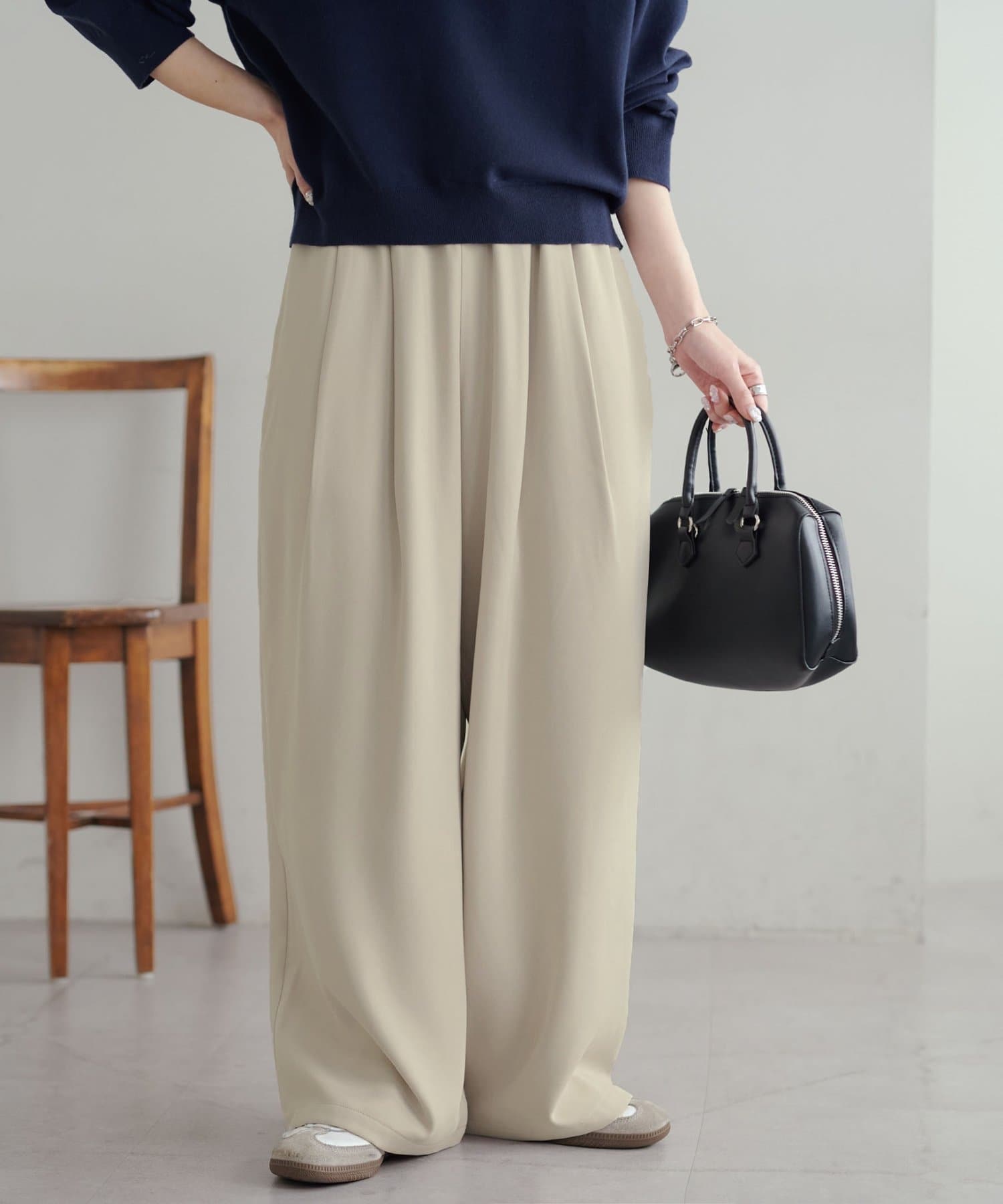 【感動の履き心地!/綺麗見え◎】タック使いイージーパンツ