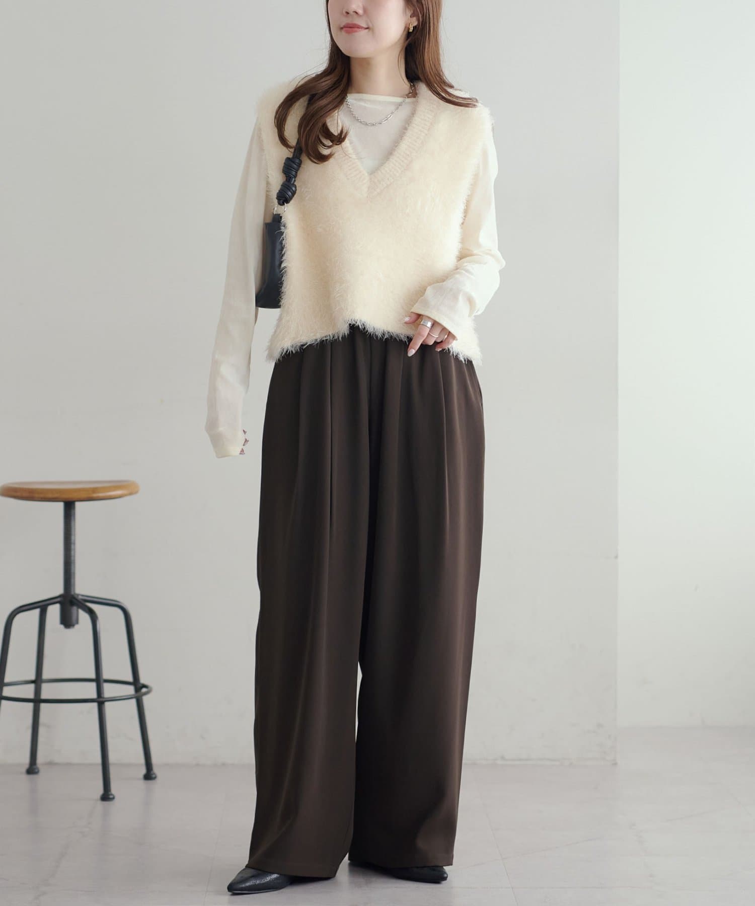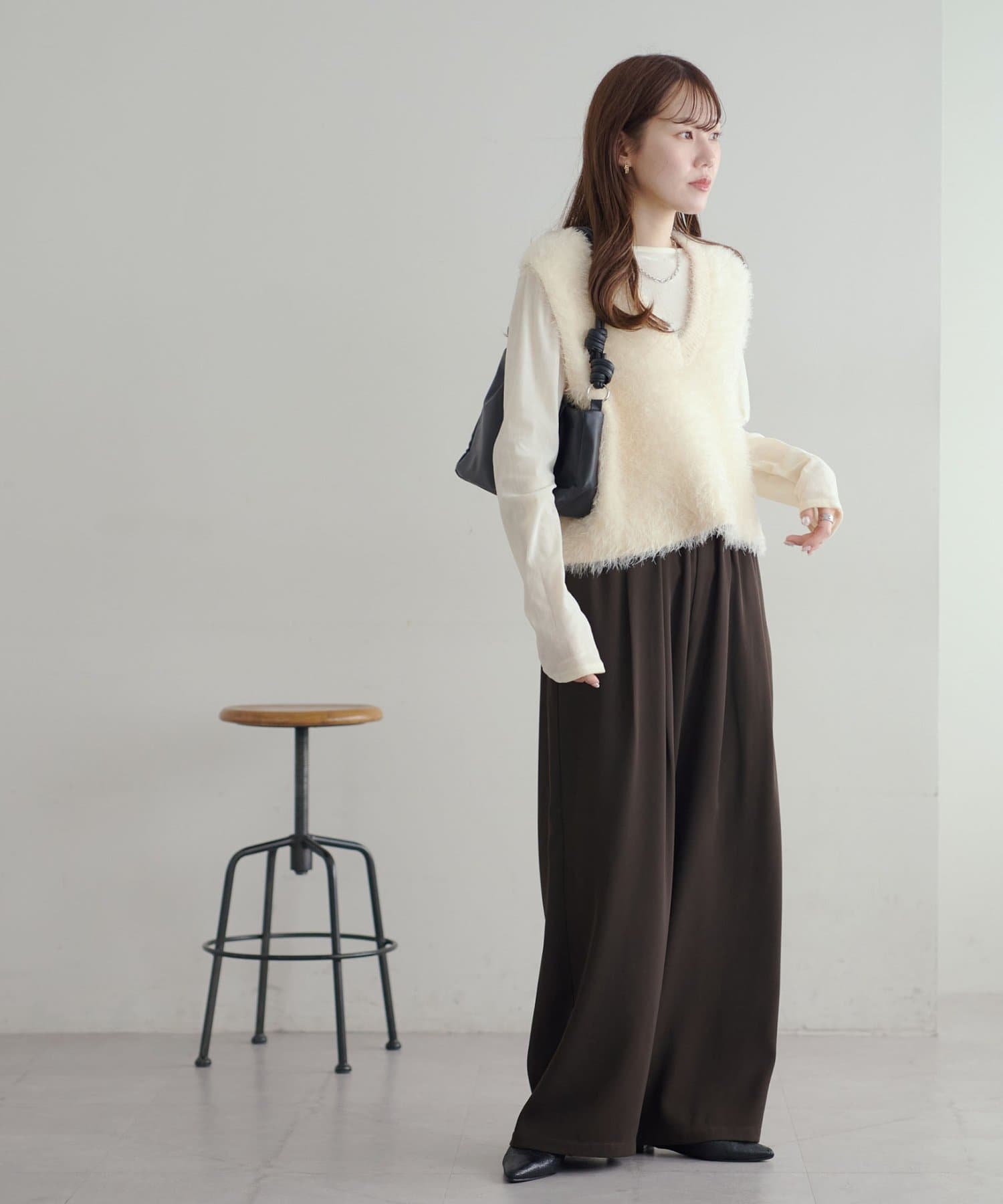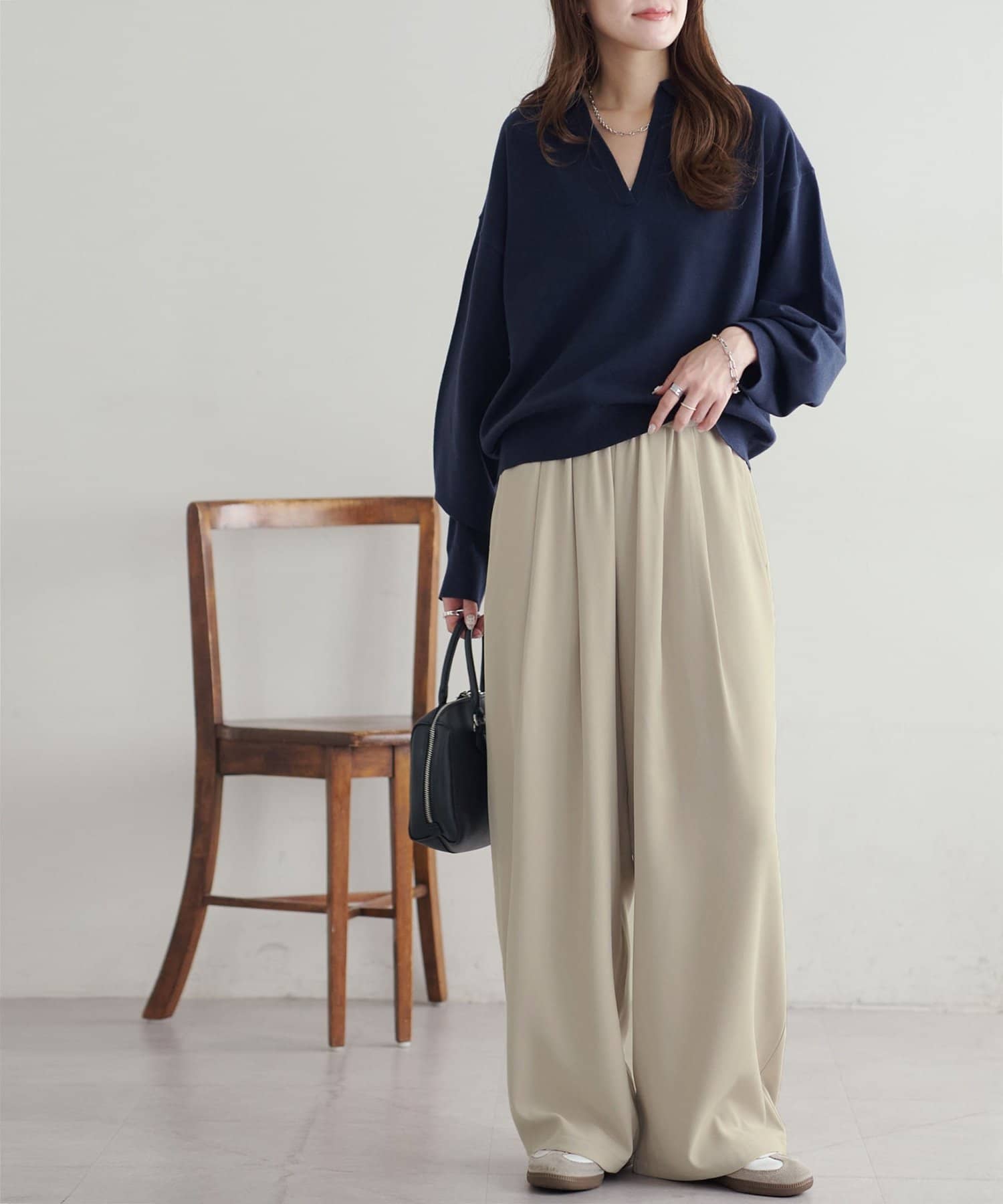 シンプルなパンツはテイスト問わず、幅広いアイテムとの合わせが楽しめます◎