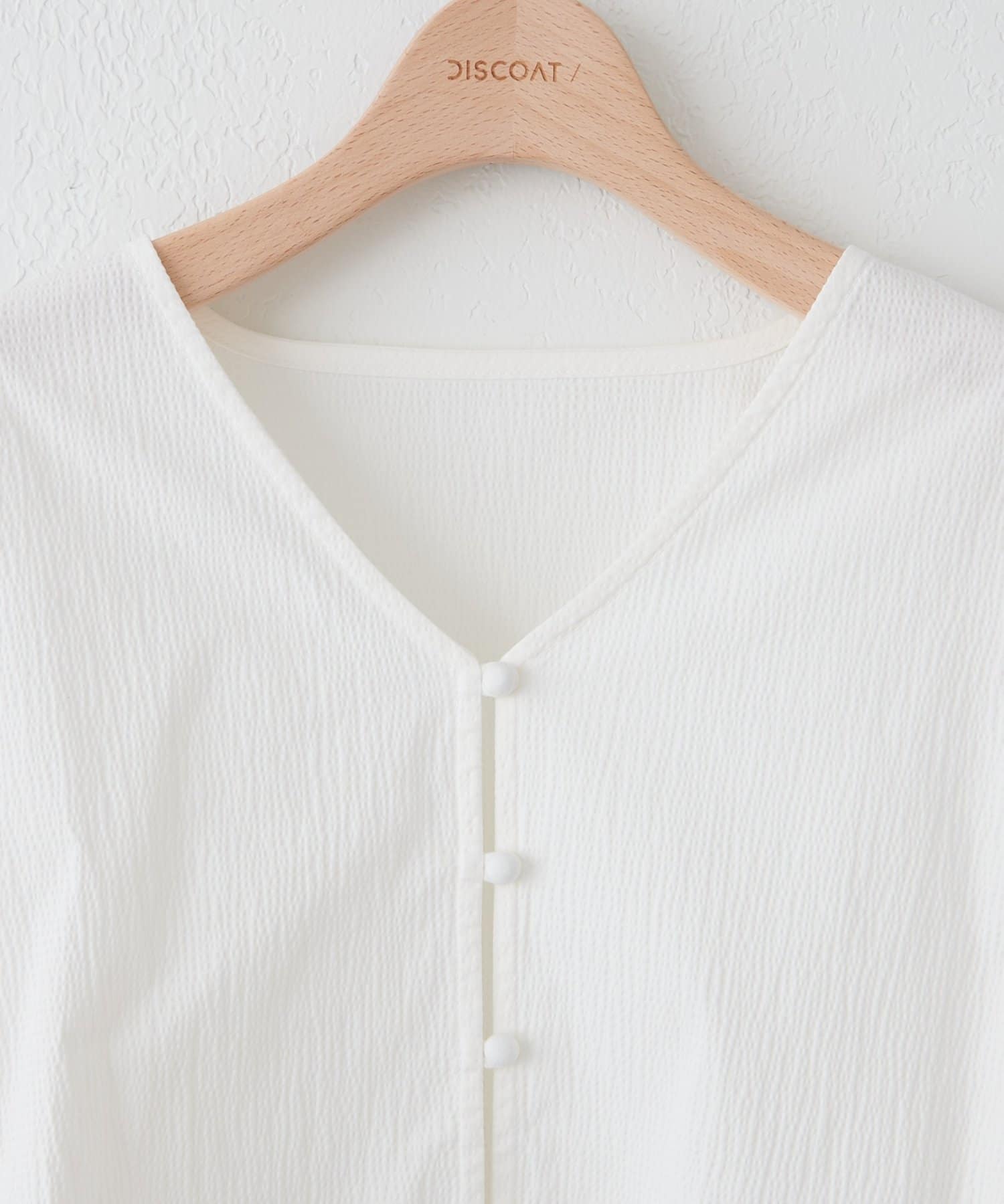 ややVネックの開きがデコルテをすっきり見せてくれ、女性らしさを引き立てます。