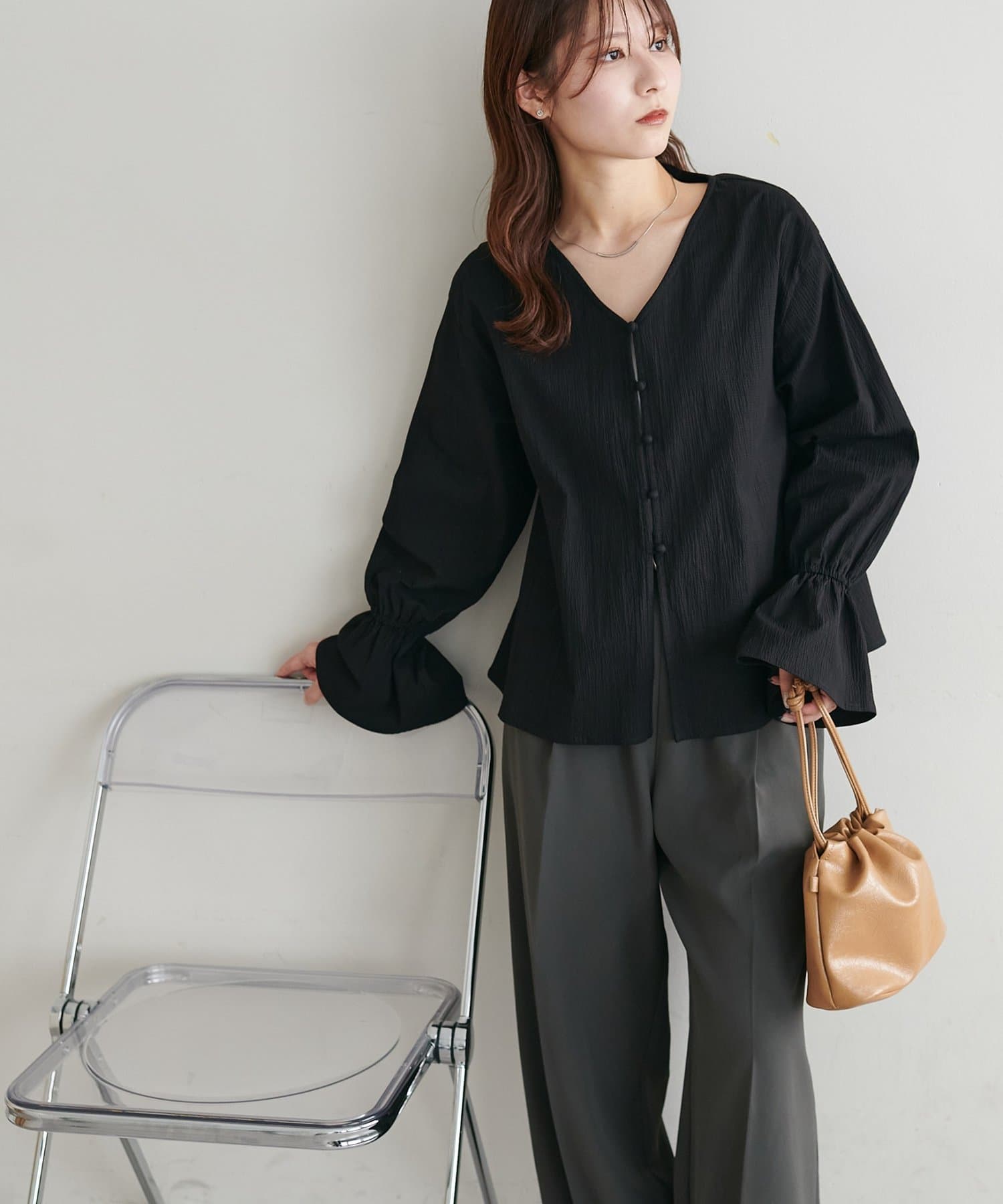 1枚で着映える。上品フェミニンなキャンディースリーブブラウス
