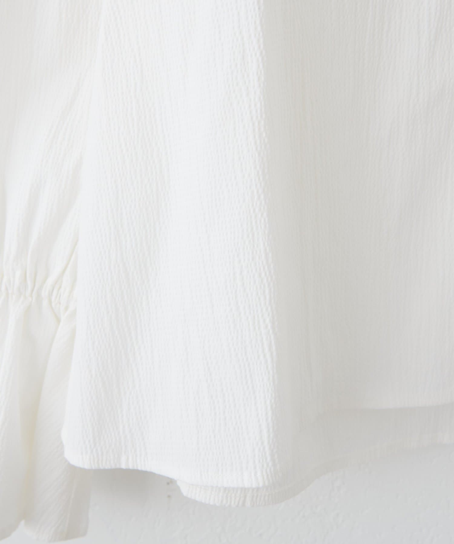 ・158cmスタッフ: 袖のギャザーがポイントになっていて、腕周りを華奢に見せてくれます。