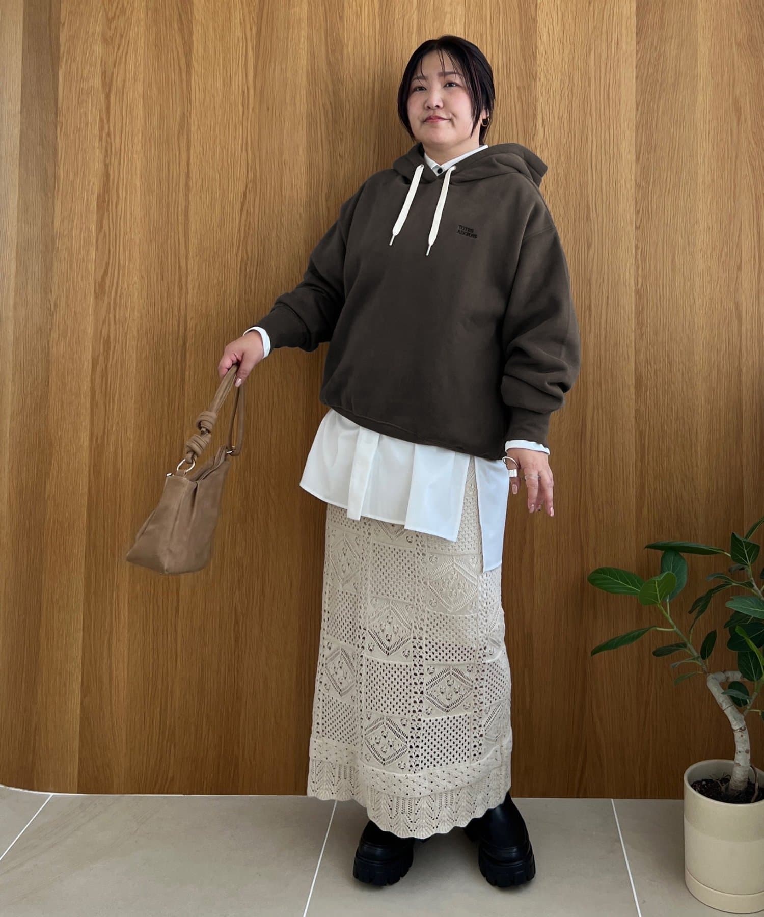 お尻がスッポリ隠れつつも、もたつかないのは前後差デザインのおかげ!サイドのスリットでよりスッキリと着れます。低身長の方もバランス取りやすいですよ。