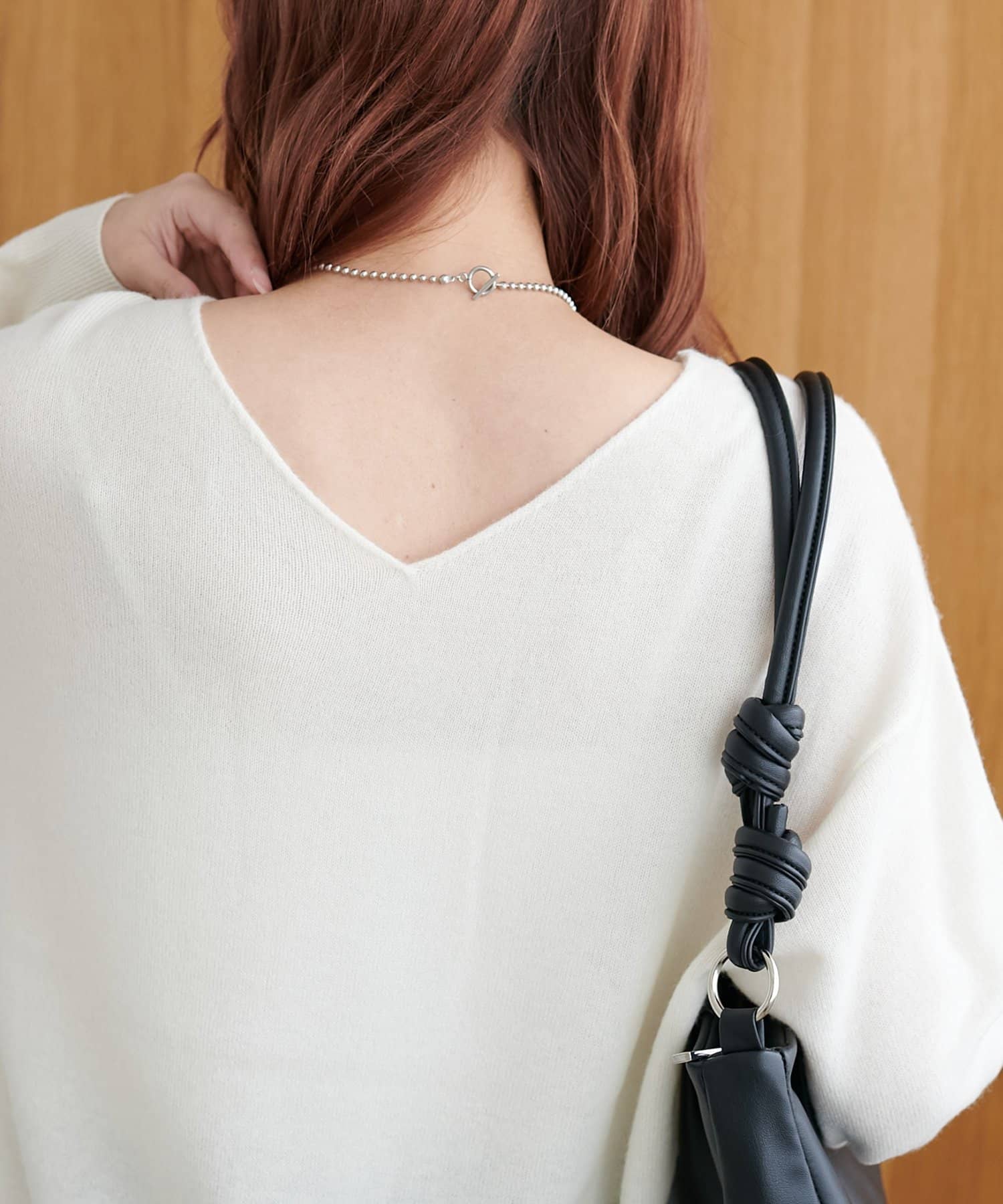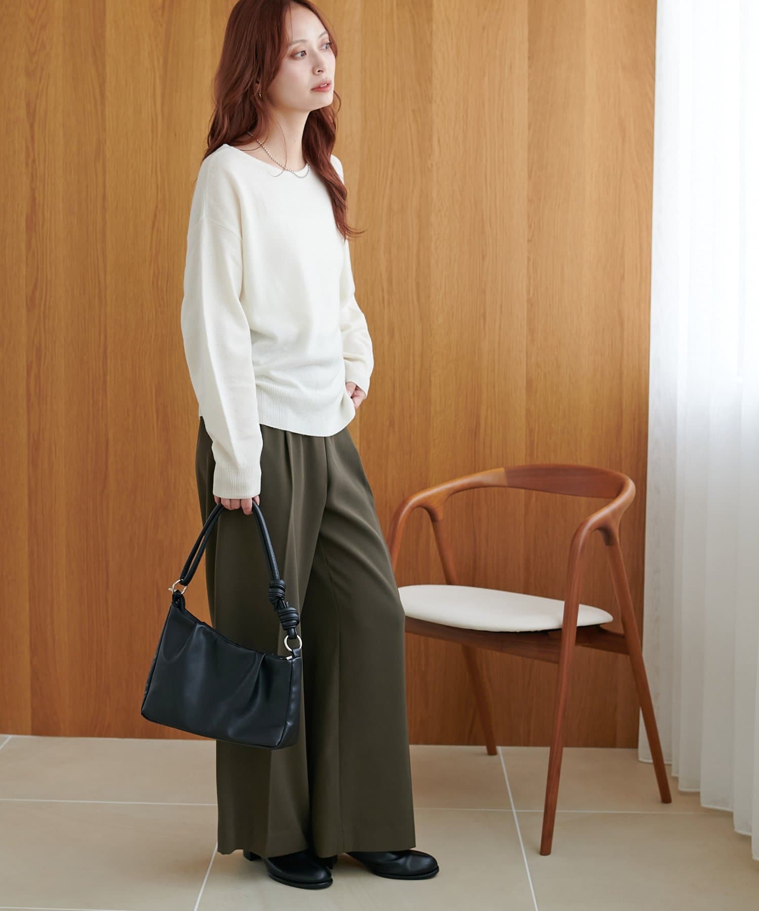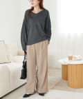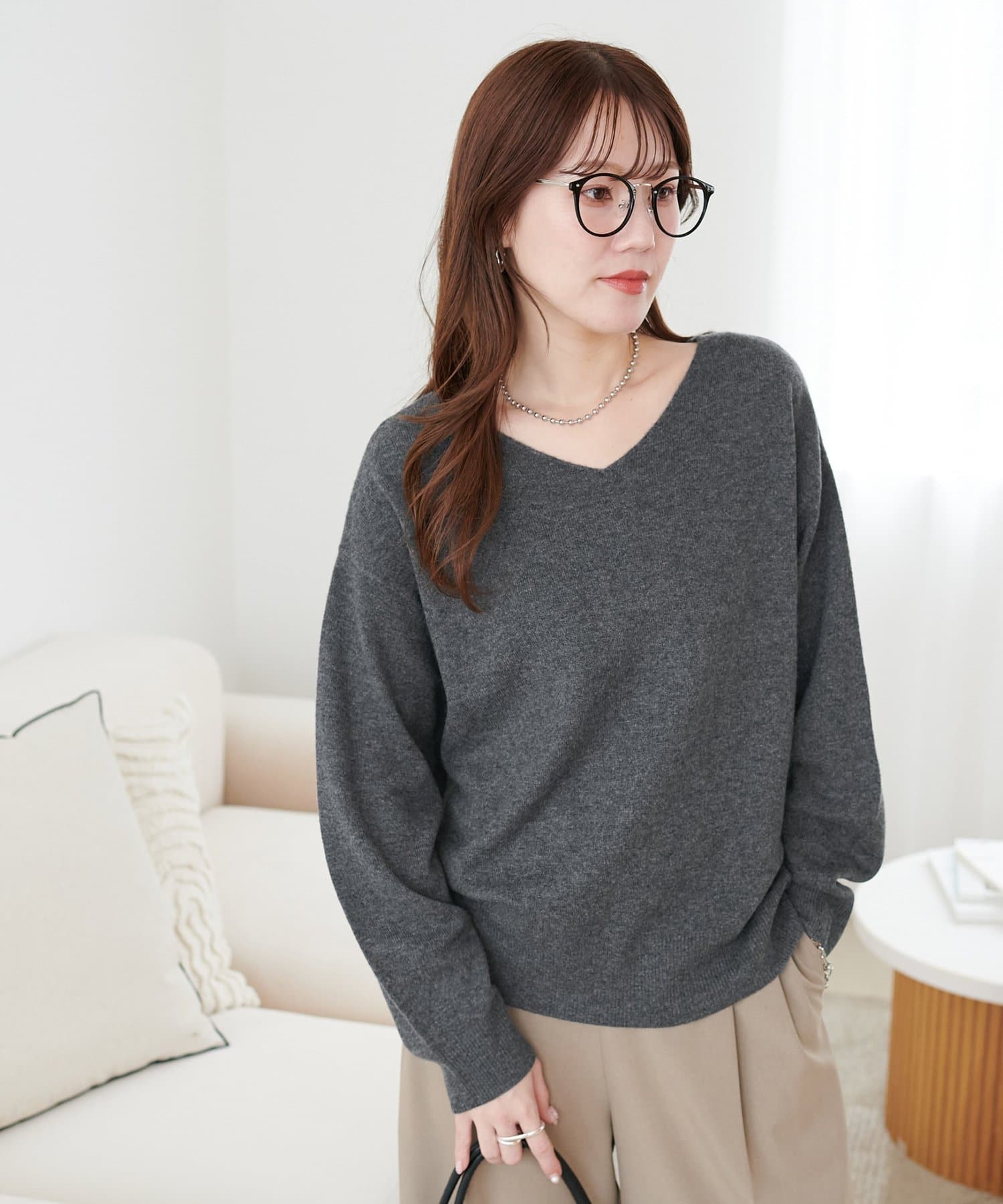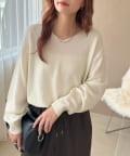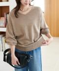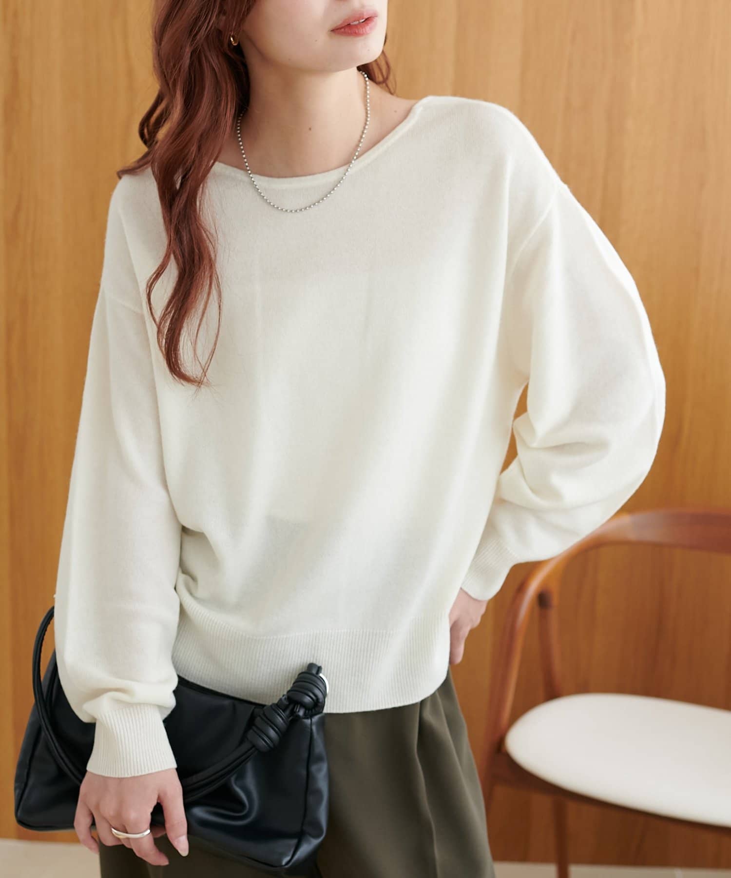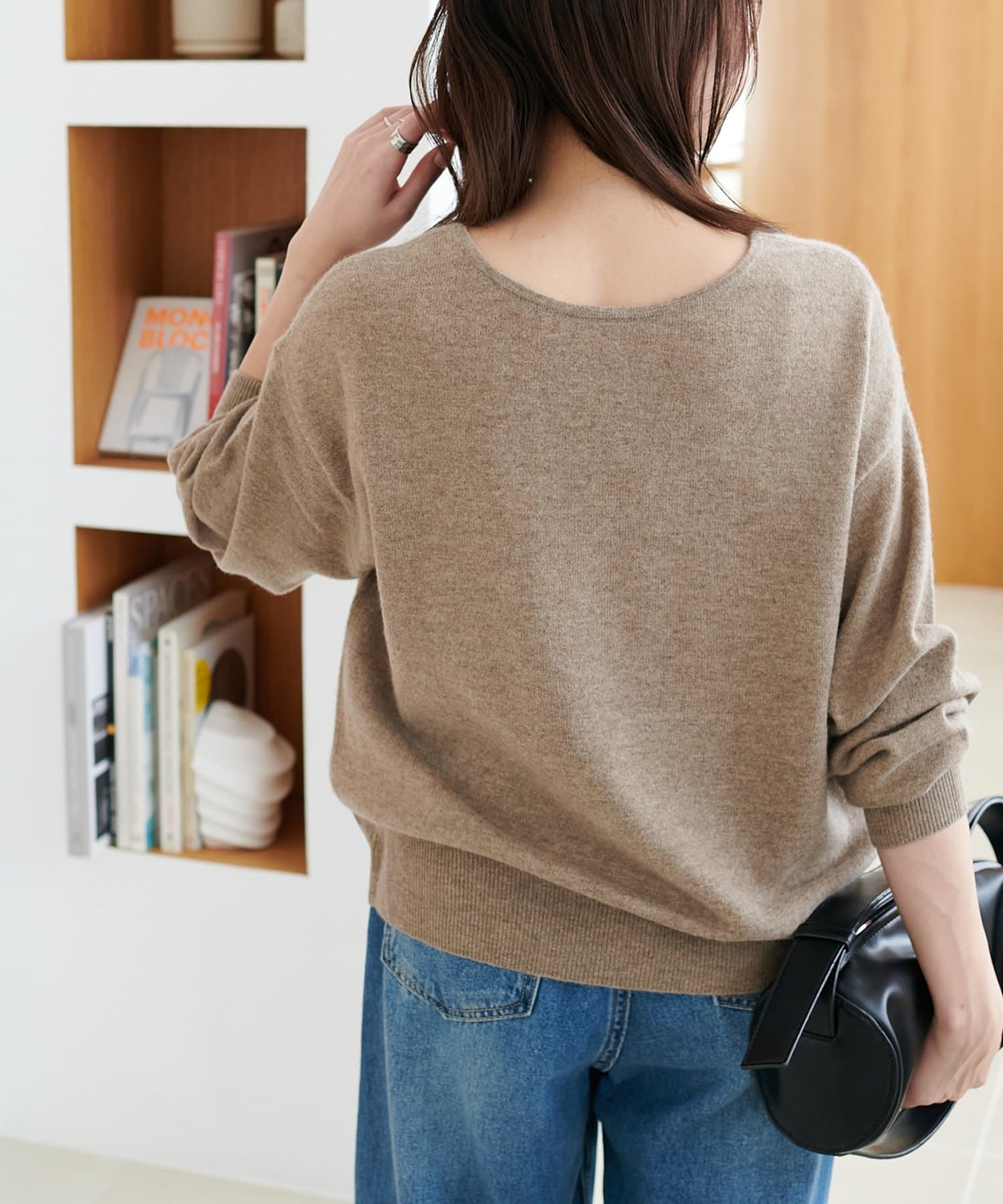 クルーネックを前にすればシンプルで上品な雰囲気、Vネックを前にすれば抜け感のあるフェミニンな印象へとチェンジできます。