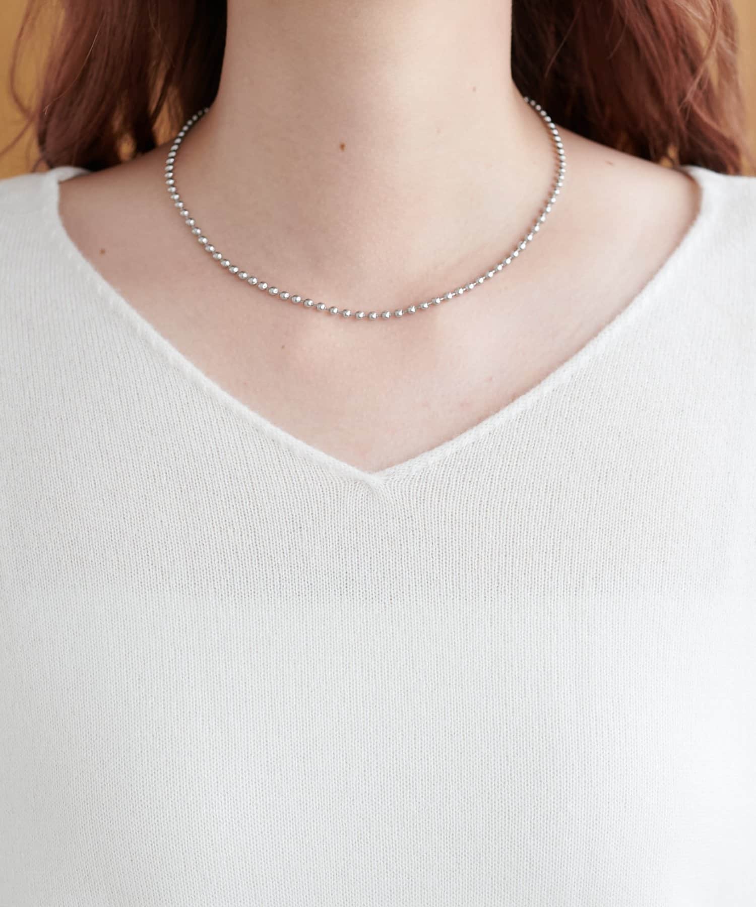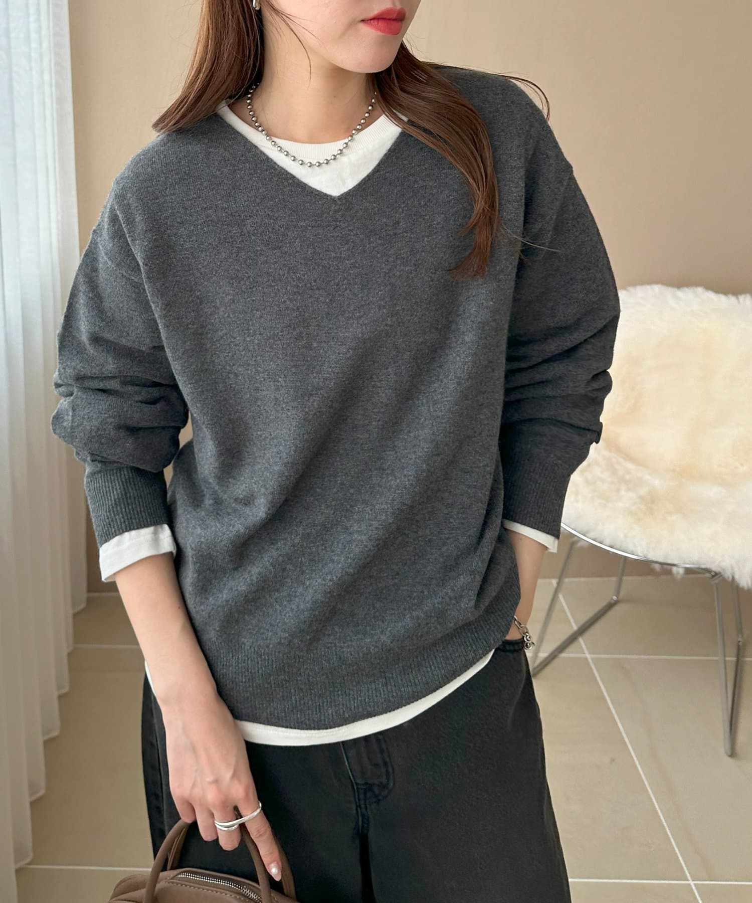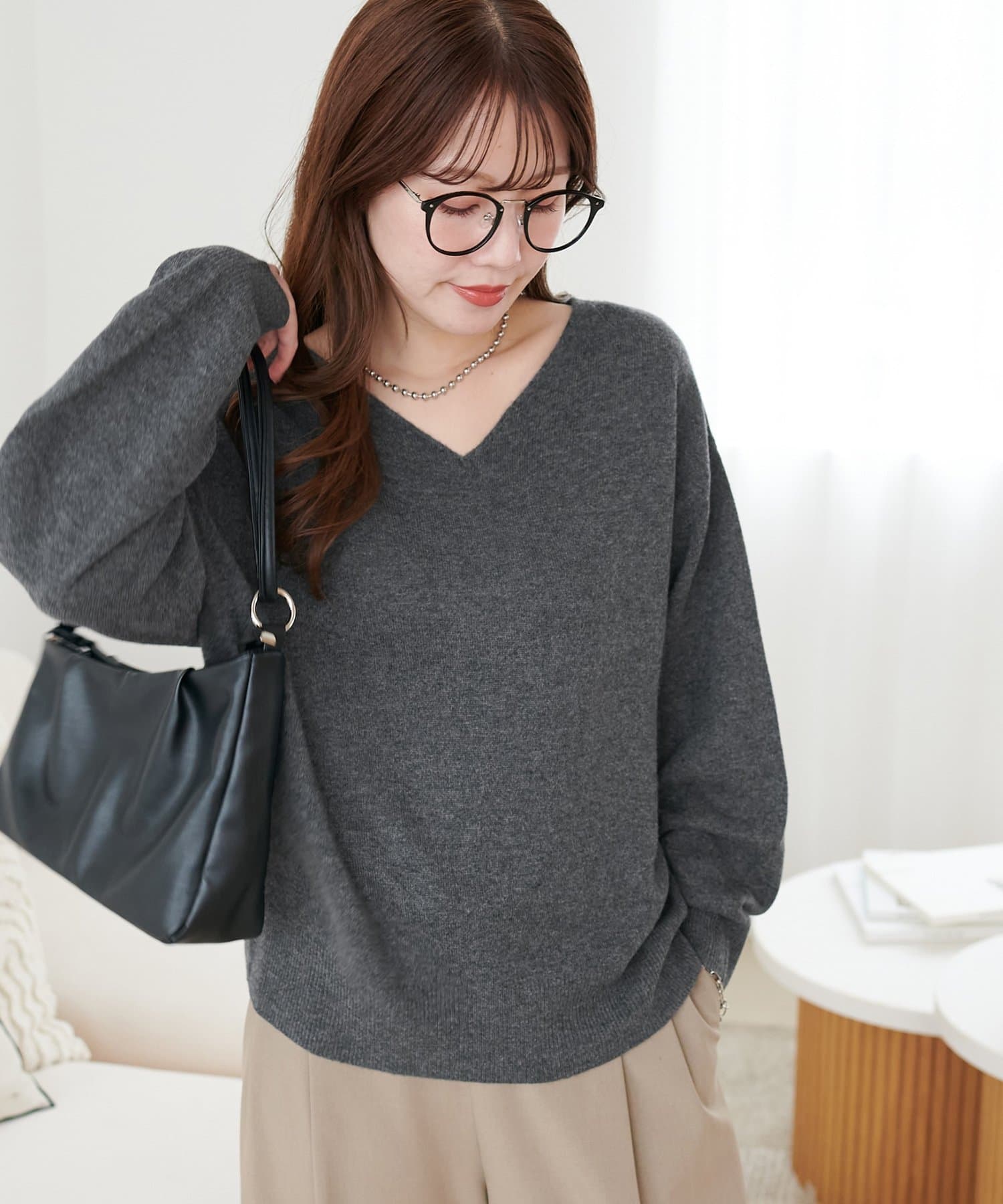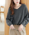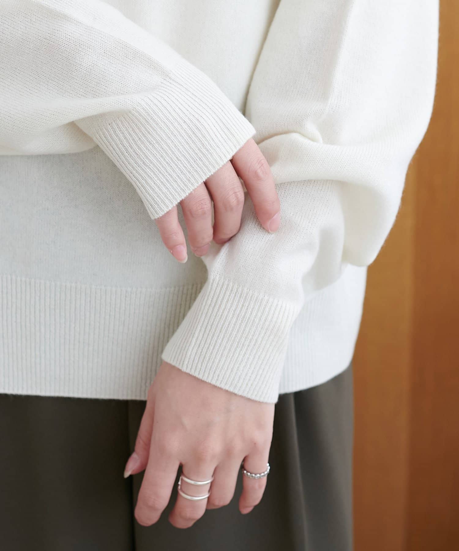 クルーネックを前にすればシンプルで上品な雰囲気、Vネックを前にすれば抜け感のあるフェミニンな印象へとチェンジできます。