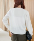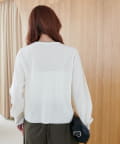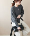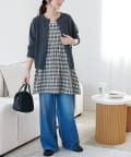 153cmスタッフ:ヒップにややかかるくらいの着丈です。生地感は薄手なので、ボトムスにインしたスタイルも取り入れやすいです〇