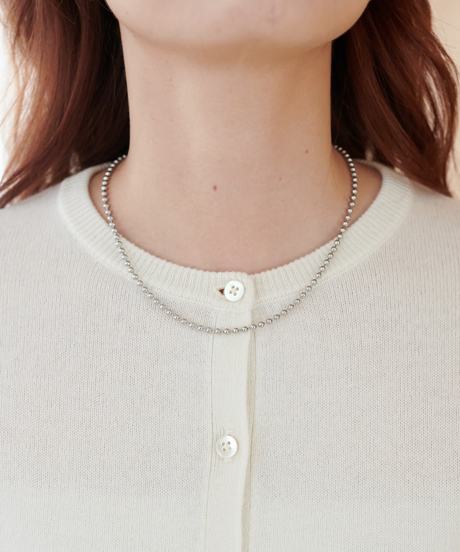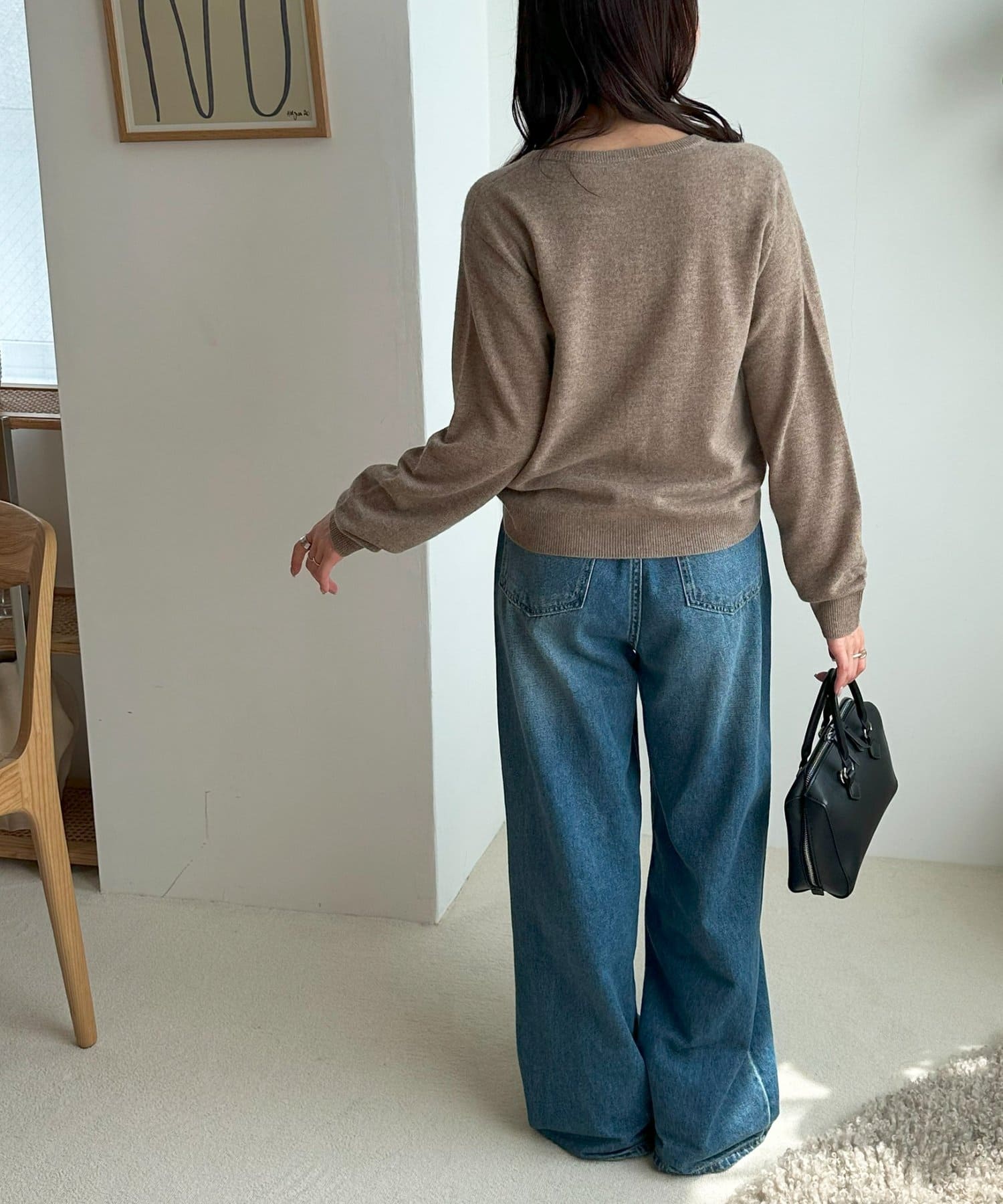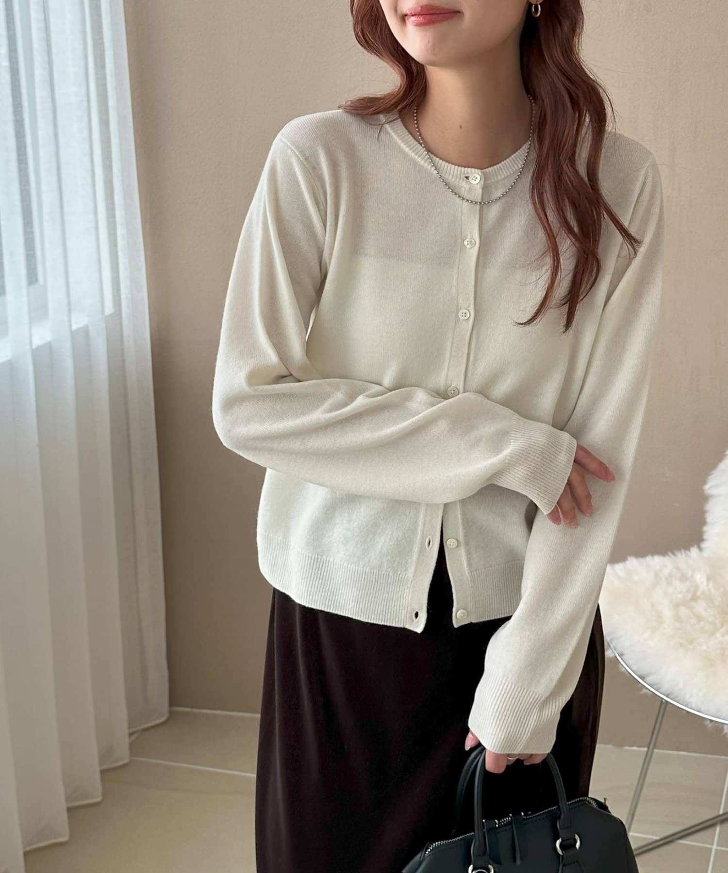 薄くても暖かさのあるカーディガンを叶えるために、細いウールとカシミヤを使用。