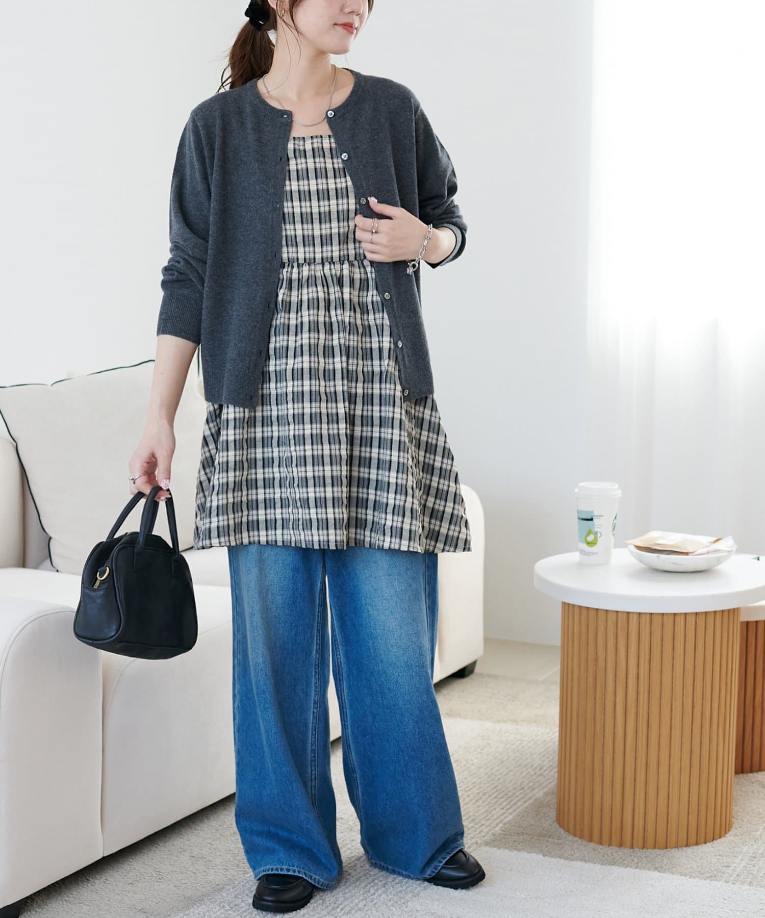 冬はボタンを閉じて一枚着で、上からジャケットやファーベストを重ねてコーデを組みたいです。