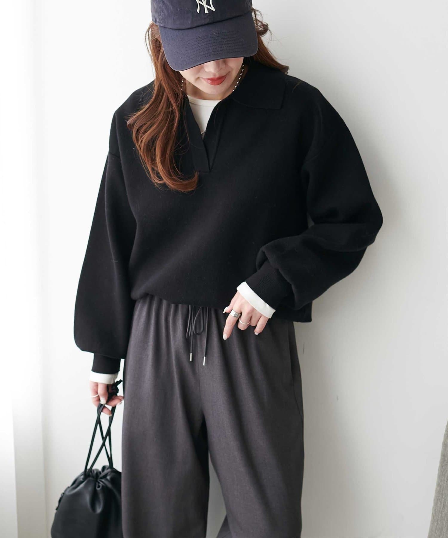 襟付きのデザインで、カジュアルでありながらもきちんと感を兼ね備え、オンオフ問わず着られるのも嬉しいポイント◎