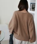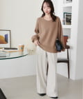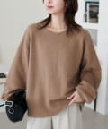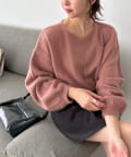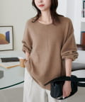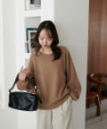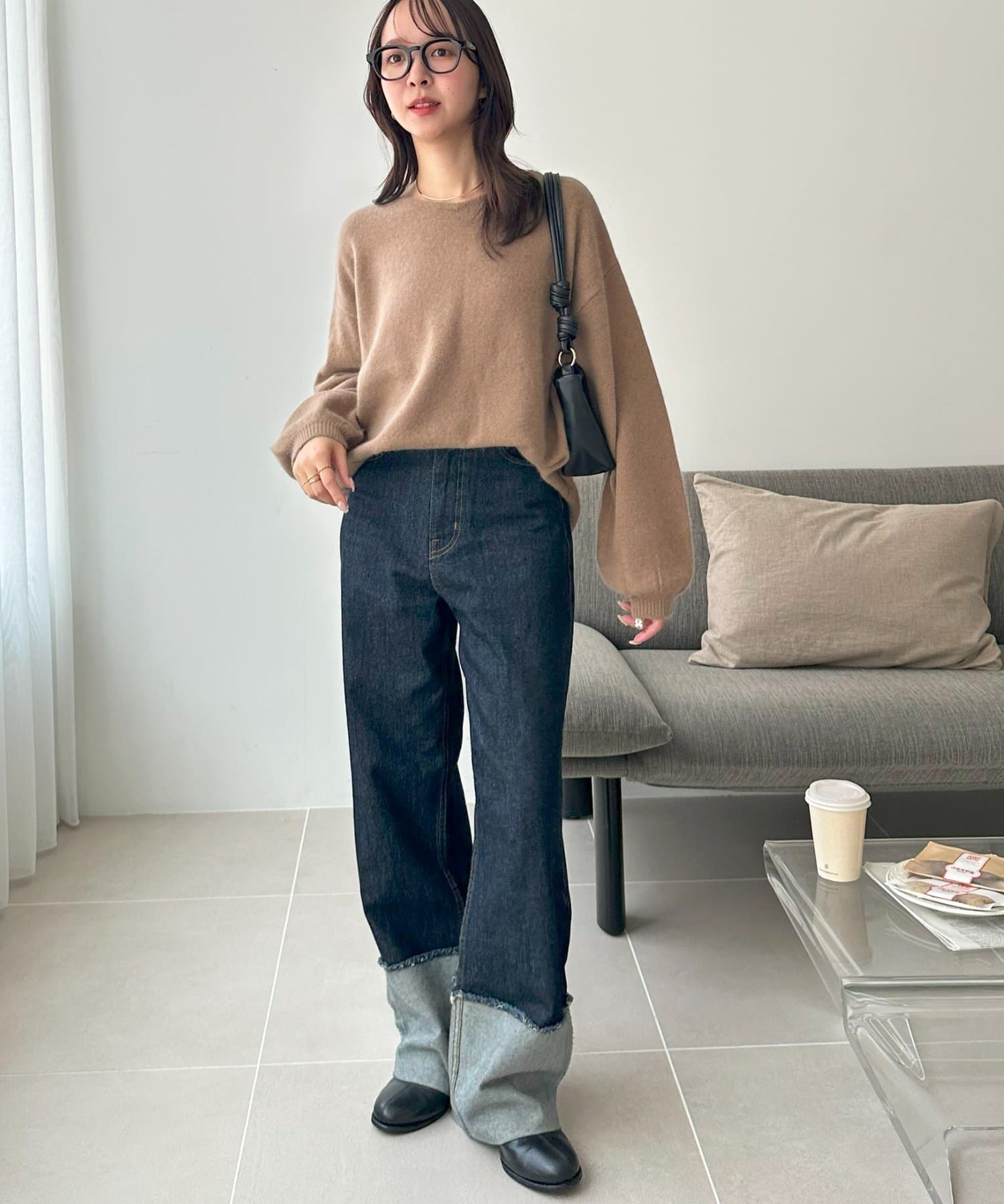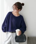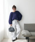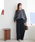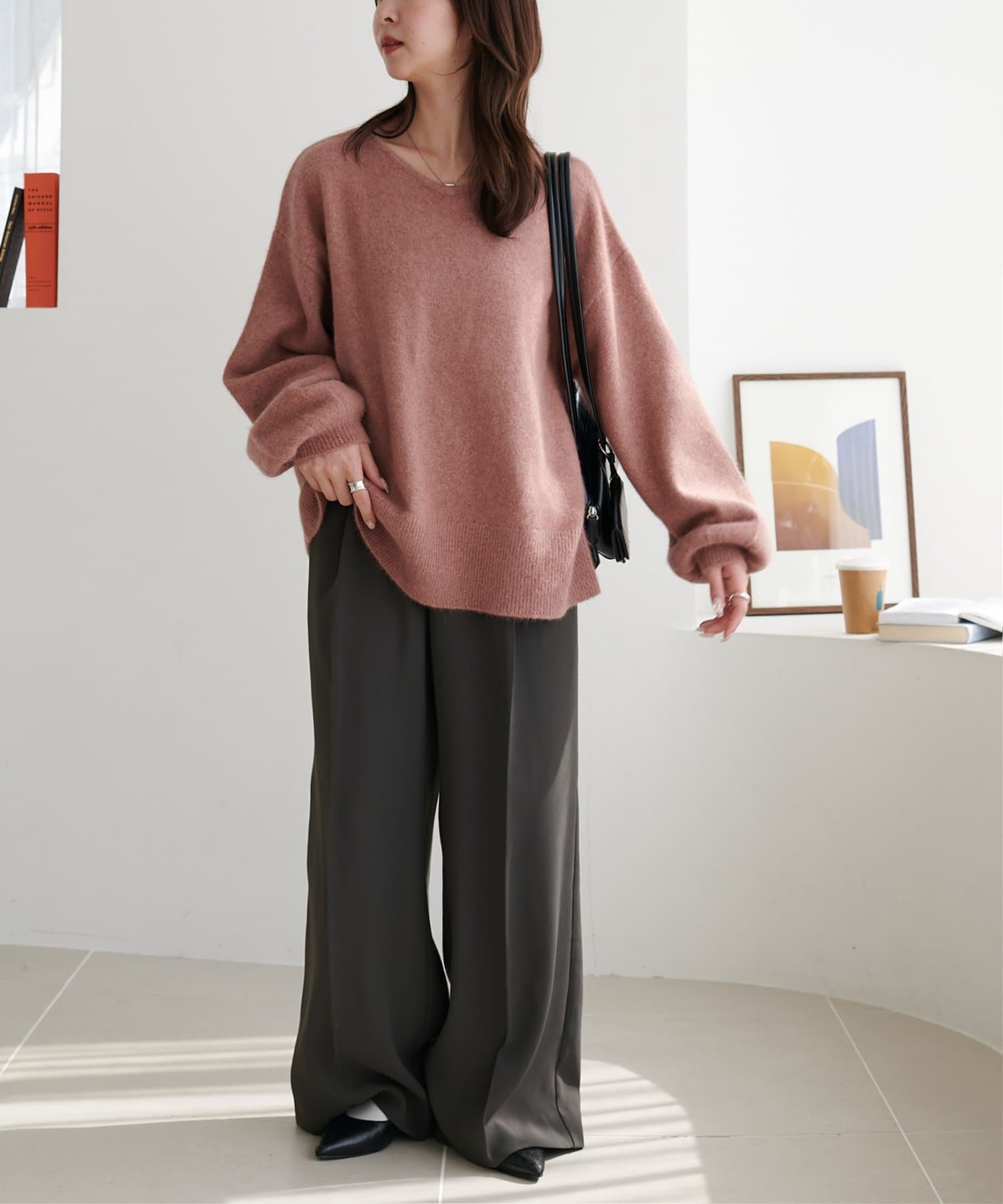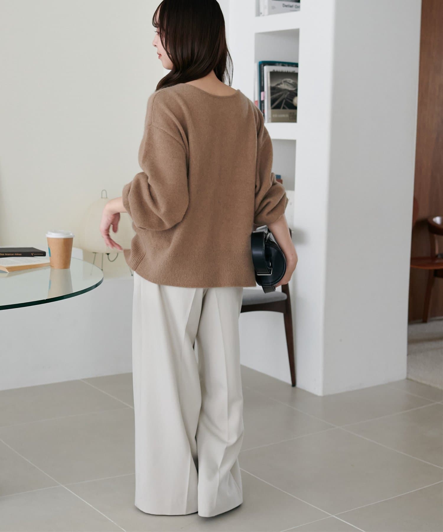 160cmスタッフ:身幅も袖も余裕があり、中にシャツを重ねても窮屈さを感じません。Vネックが顔まわりをすっきり見せてくれるので、シンプルながら抜け感のあるスタイリングができます♪