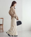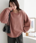 袖はやや長めで、手元にゆるくたまることで女性らしい柔らかな印象を与えます。