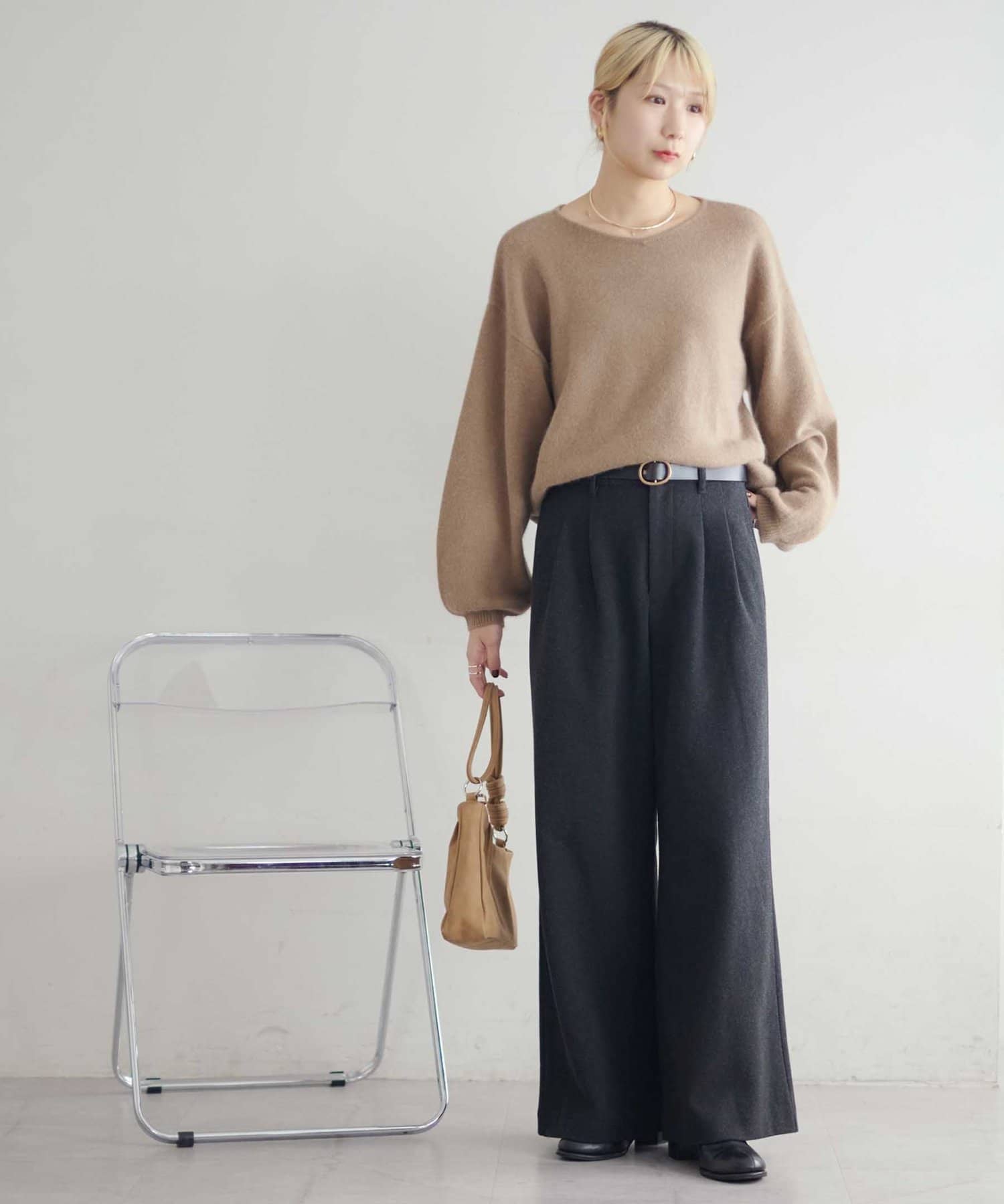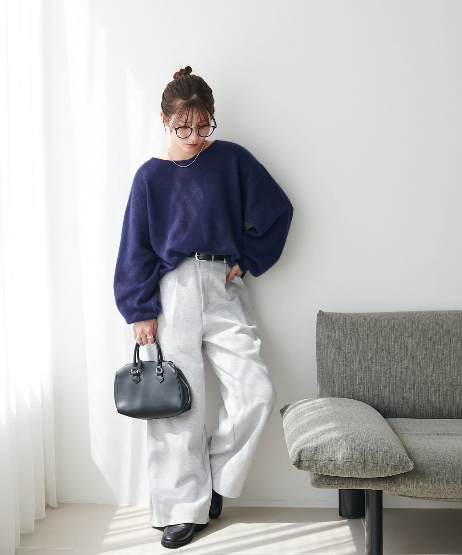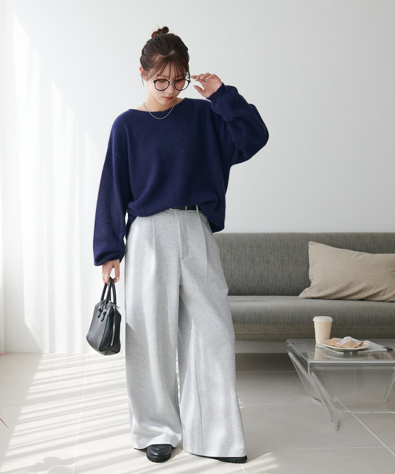 ワイドパンツやスウェットパンツと合わせてリラクシーな大人コーデに。スカートやワンピース合わせで女性らしい雰囲気をより引き立てるのもおすすめ。