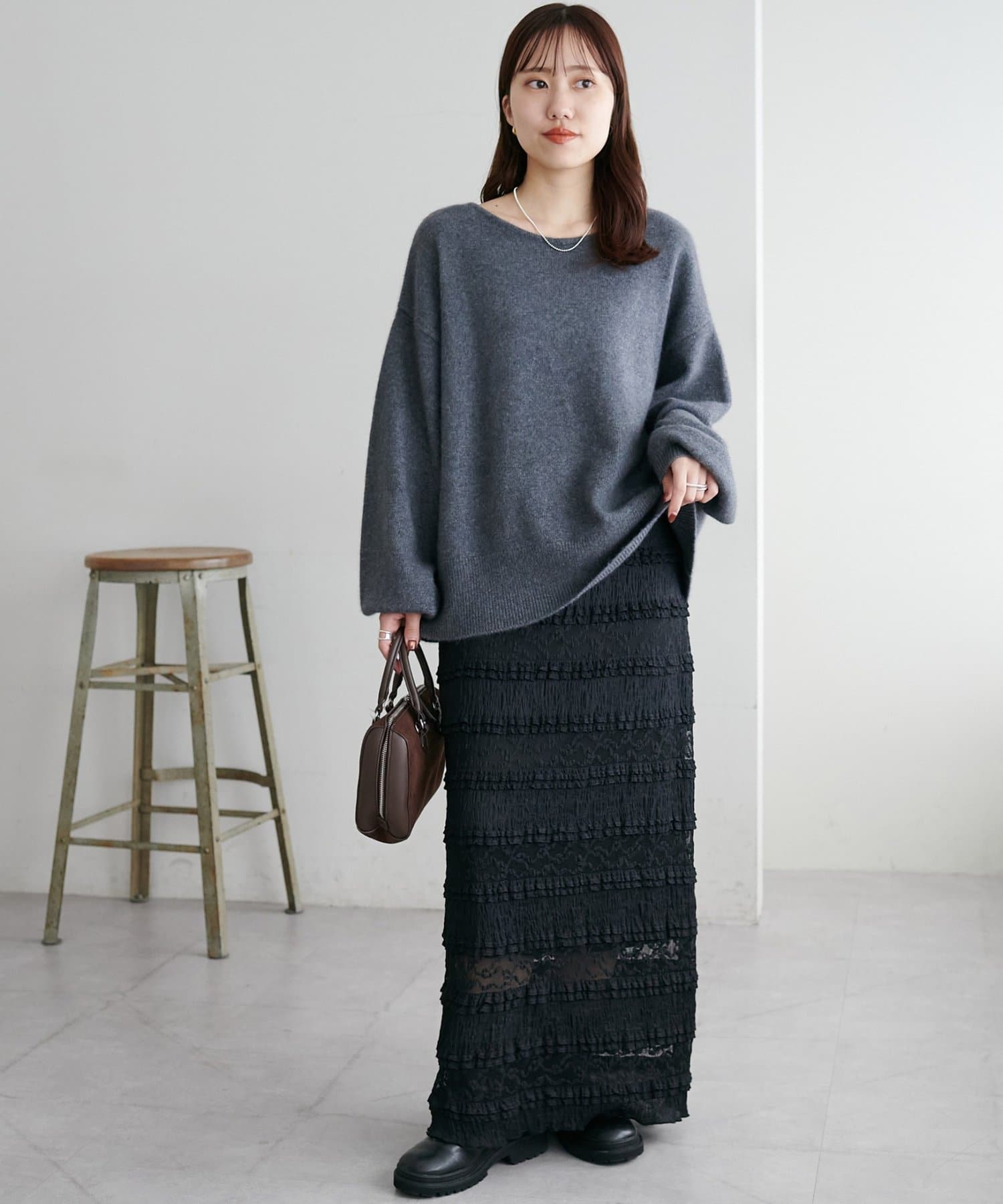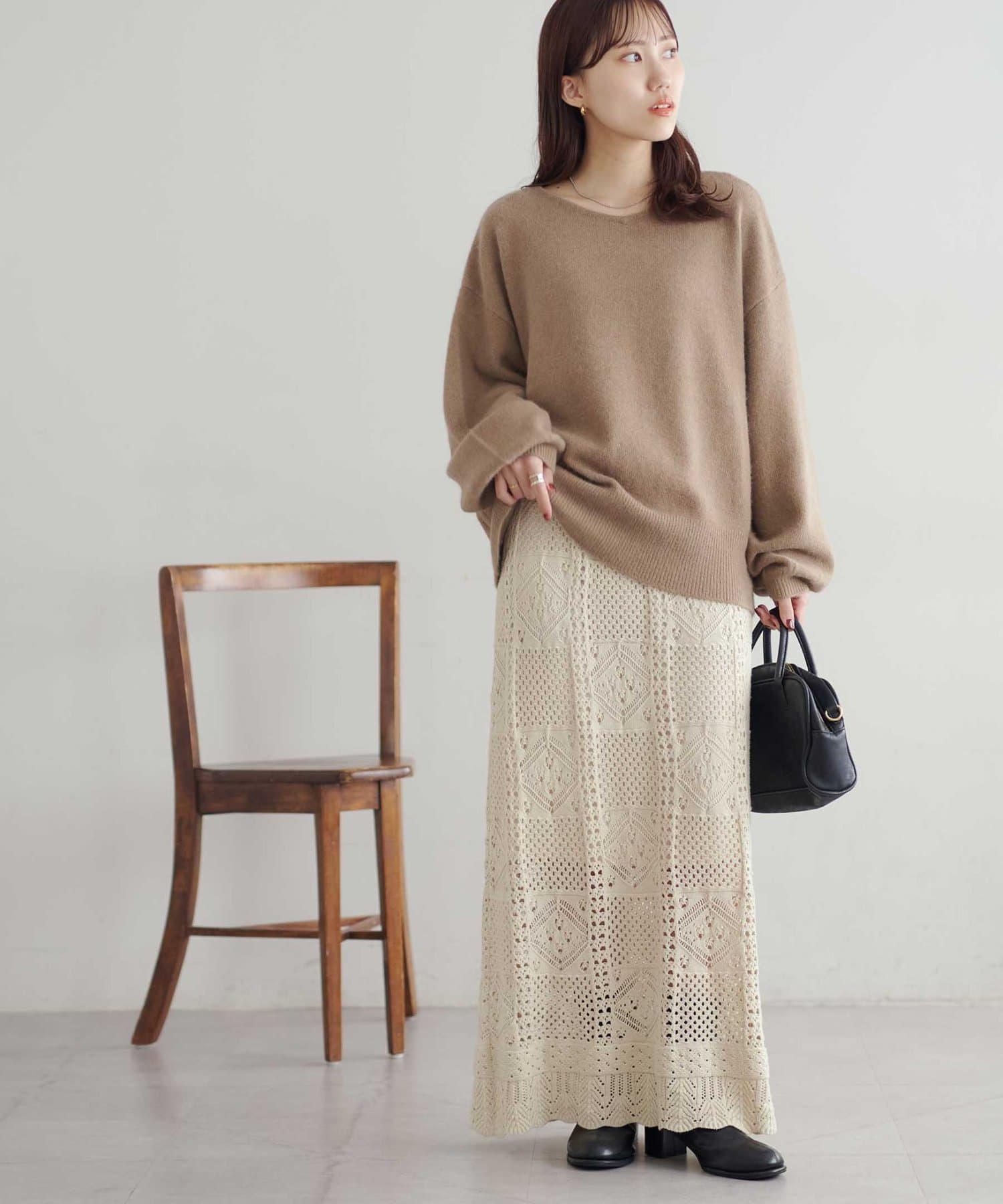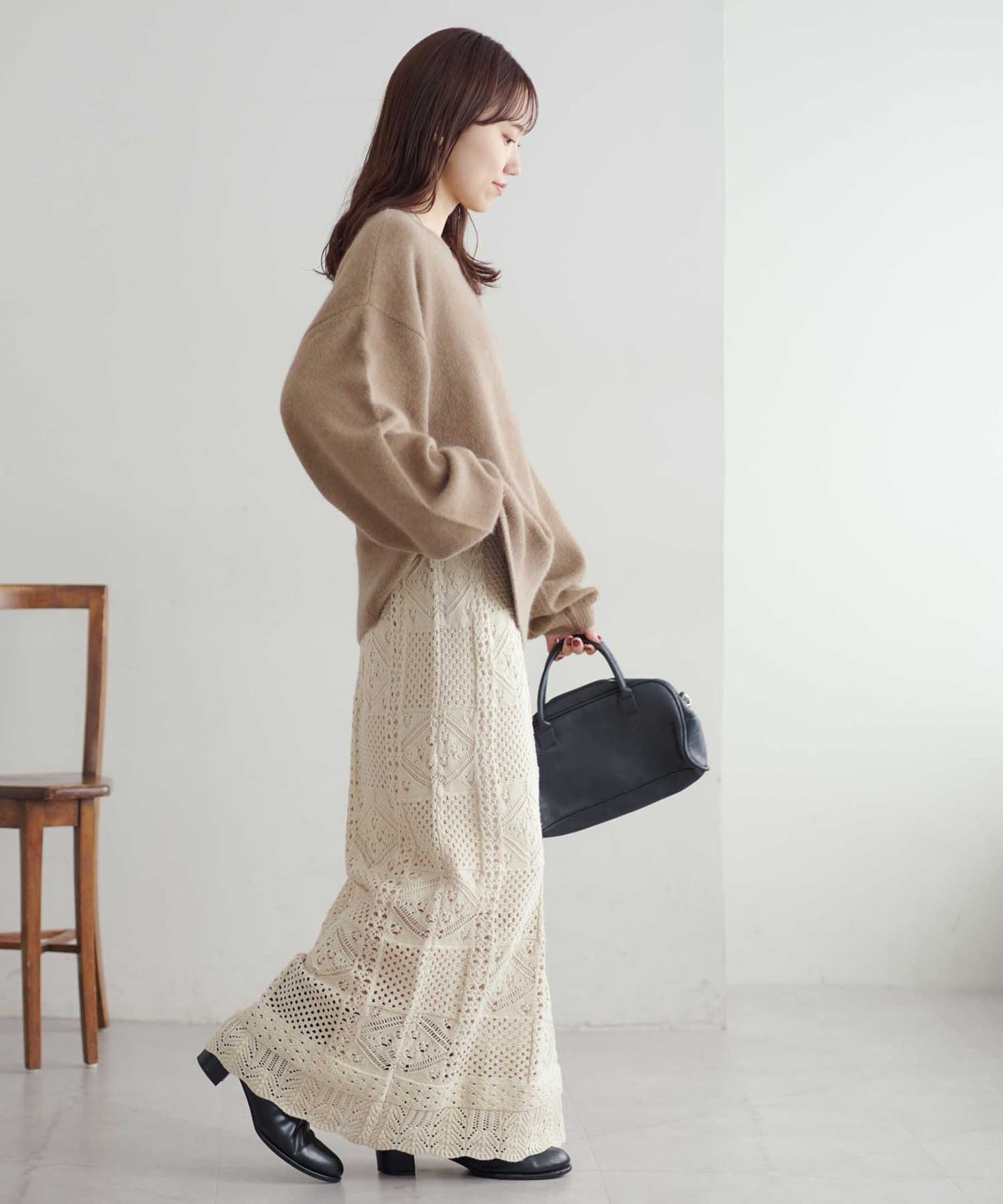 ワイドパンツやスウェットパンツと合わせてリラクシーな大人コーデに。スカートやワンピース合わせで女性らしい雰囲気をより引き立てるのもおすすめ。