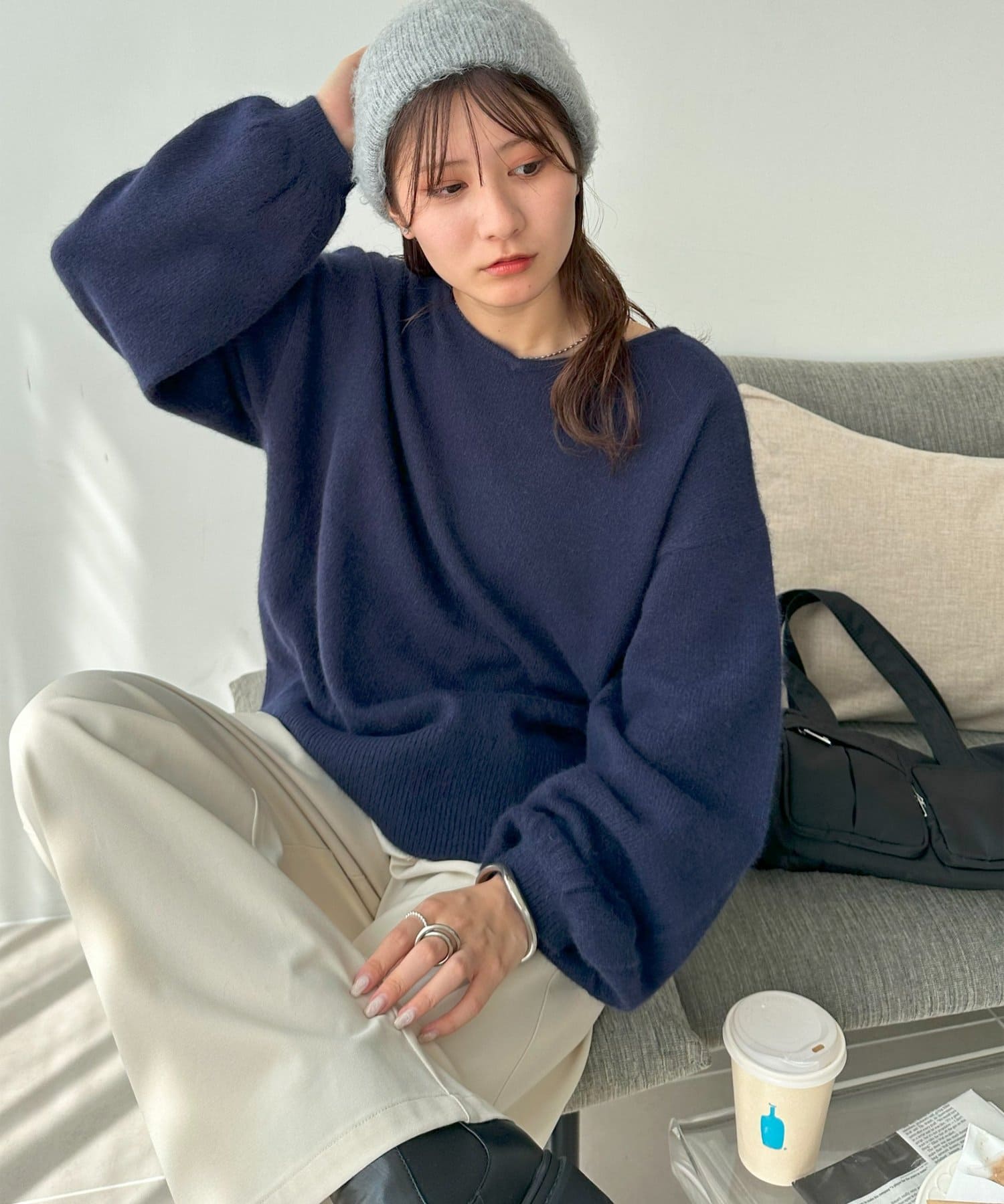 ふんわり柔らか、上質なフォックスブレンド素材のニット