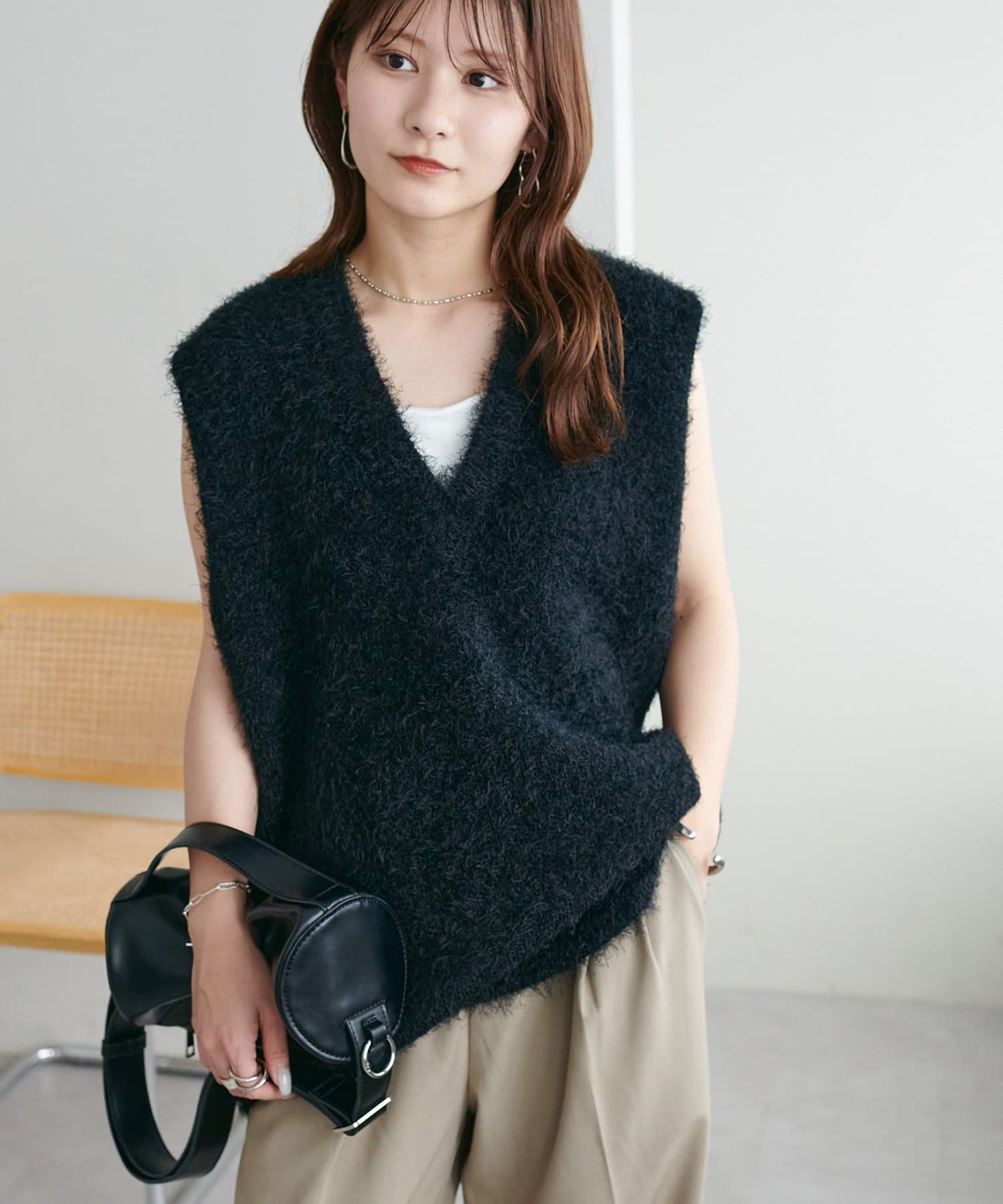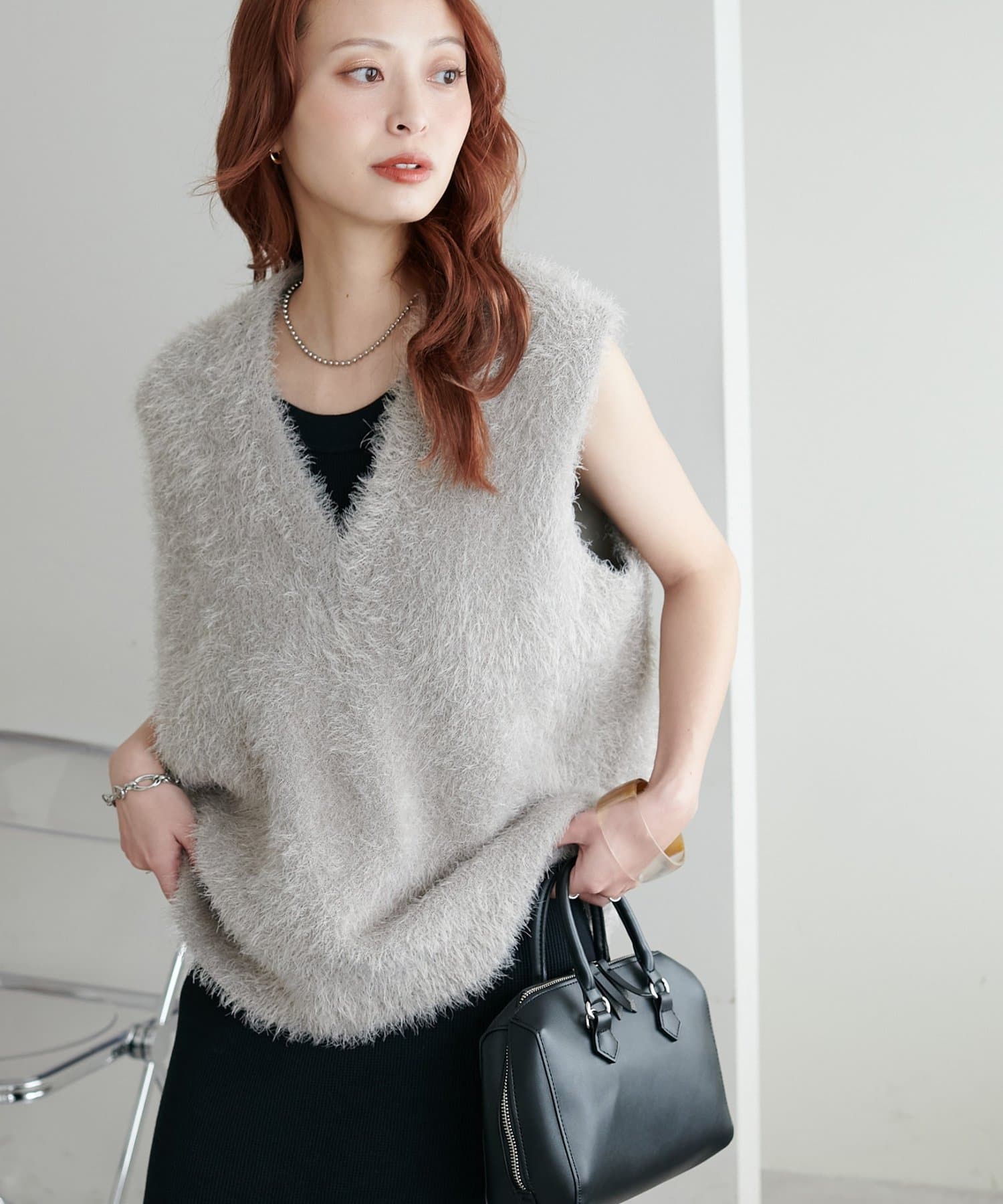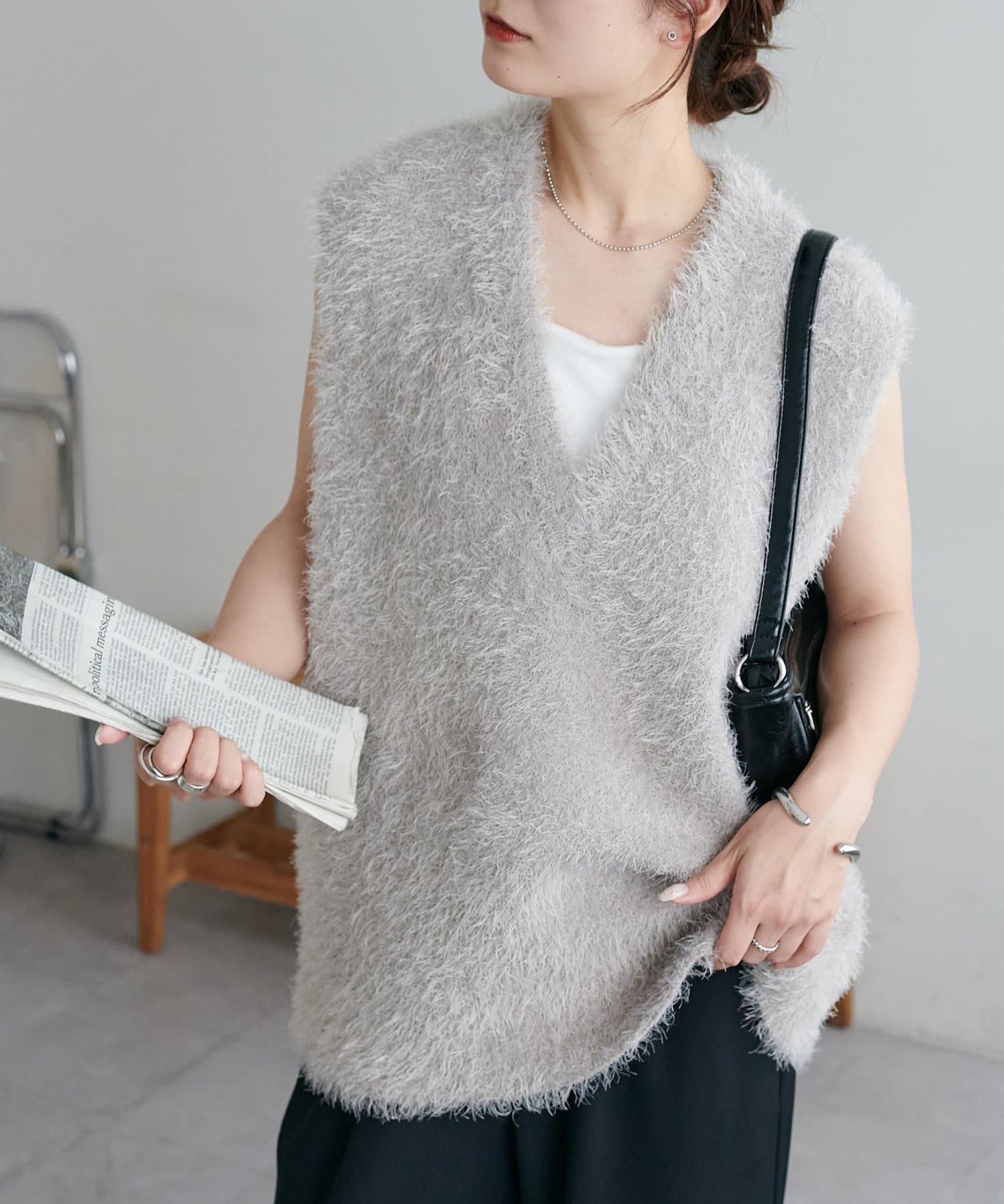 【ベストセラー/着回し万能/WEB限定】フェザーヤーンチュニックベスト《スリットなし》