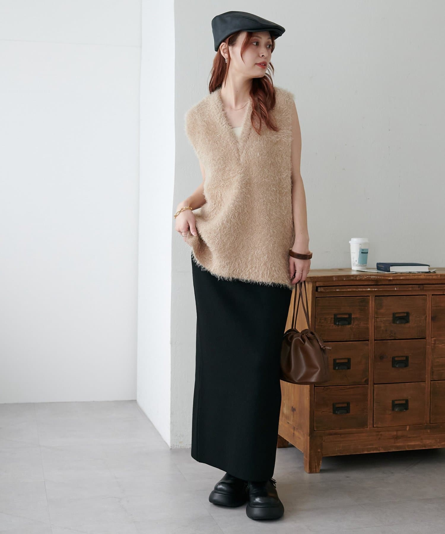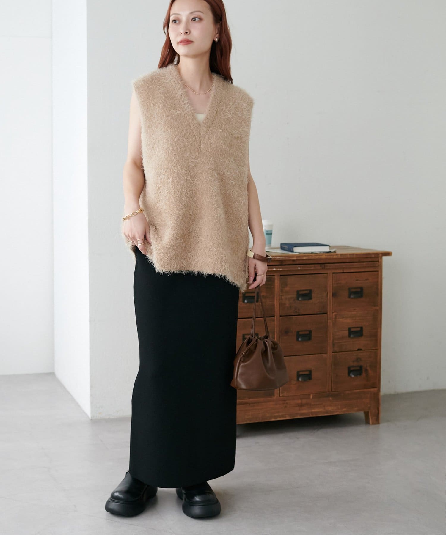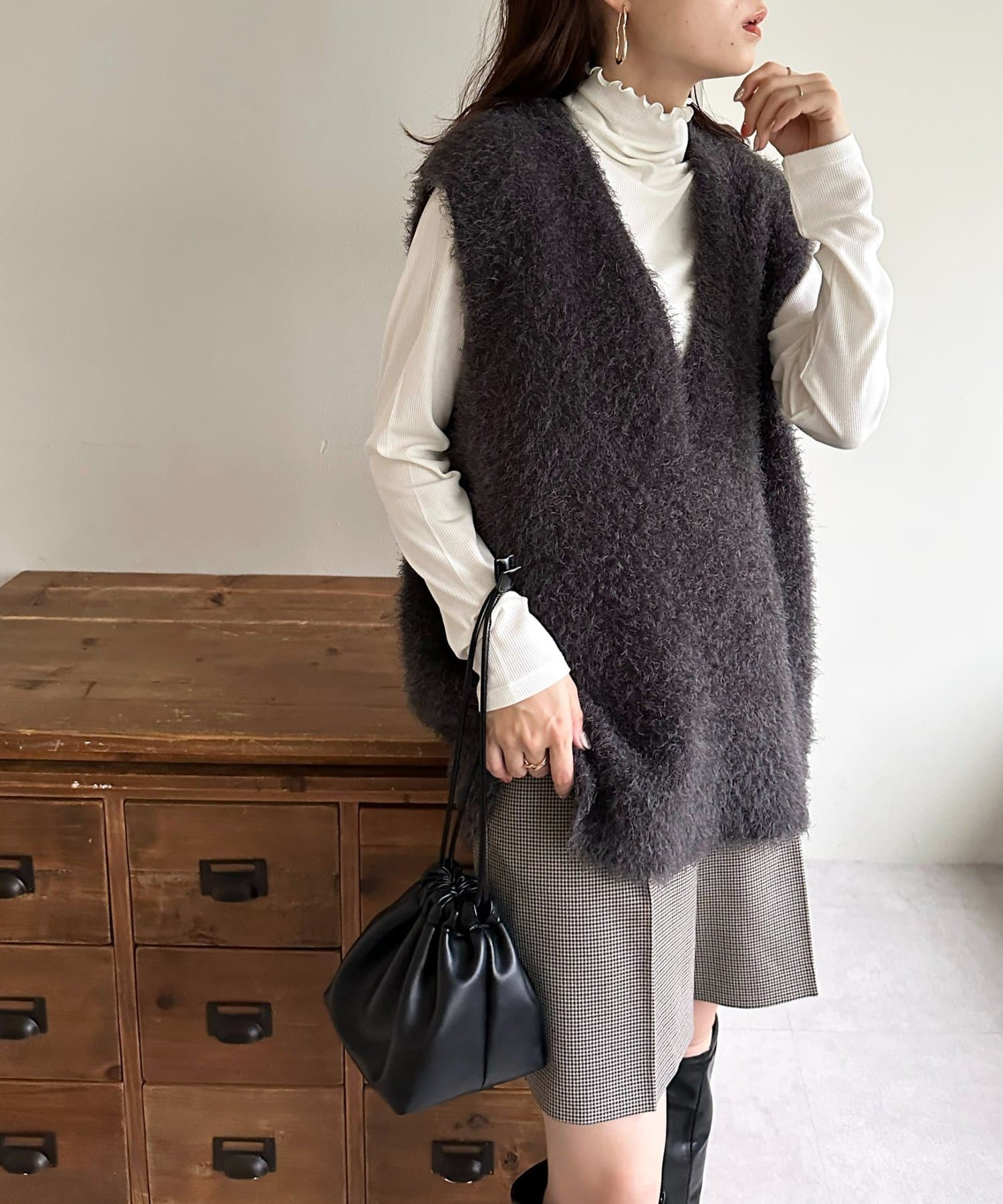 【ベストセラー/着回し万能/WEB限定】フェザーヤーンチュニックベスト《スリットなし》