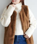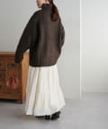 ボリュームのある首元が顔まわりを優しく包み、ネックレスを合わせると上品なアクセントに。