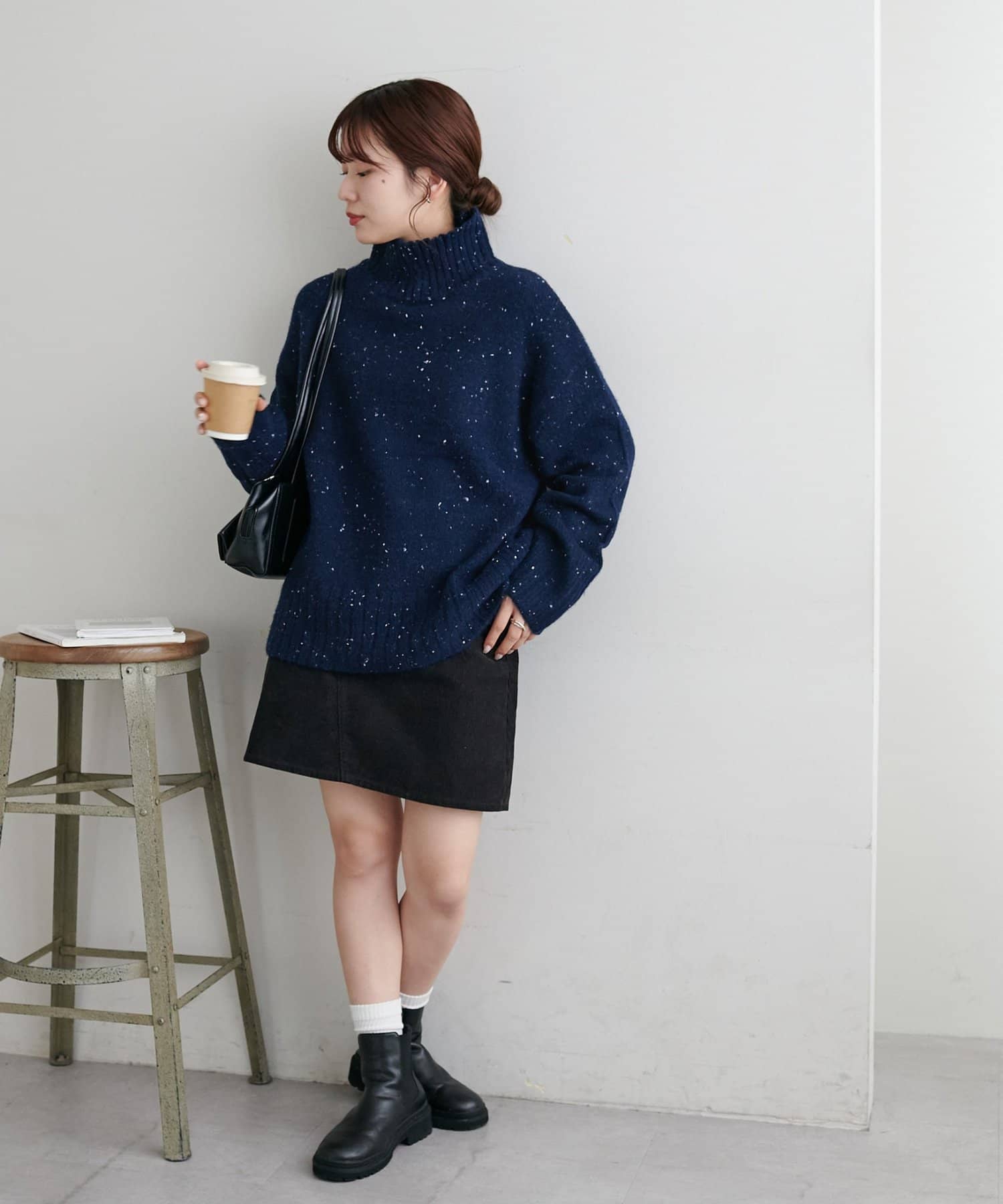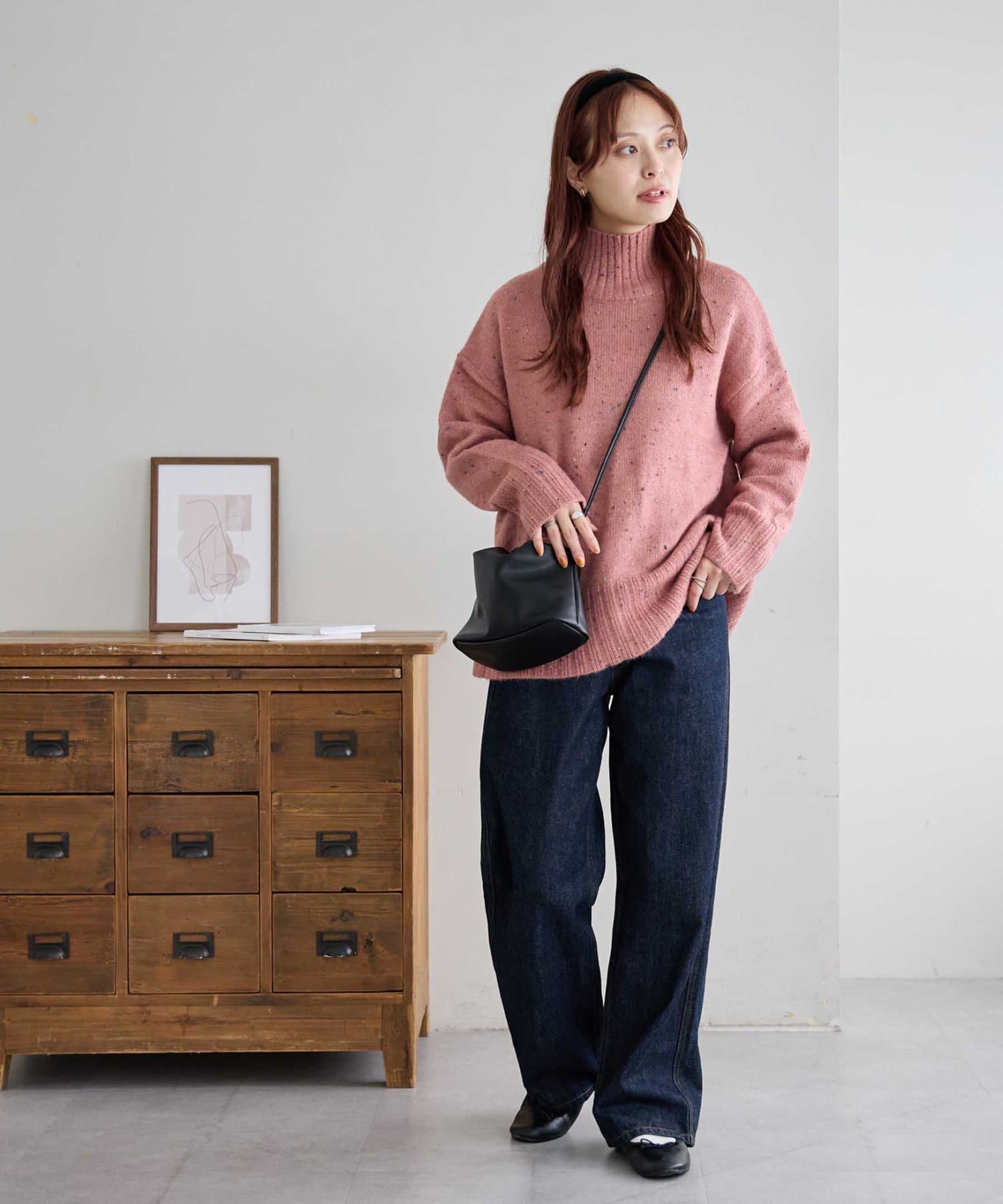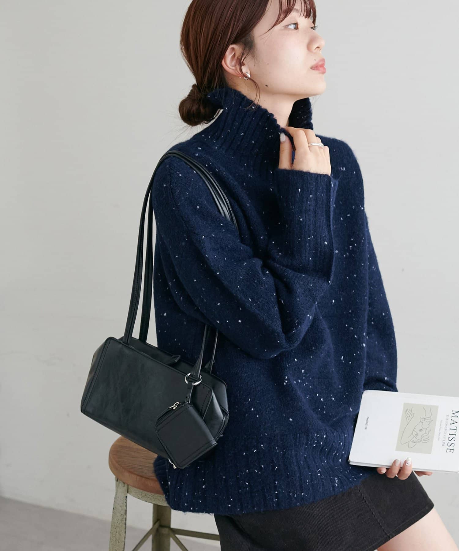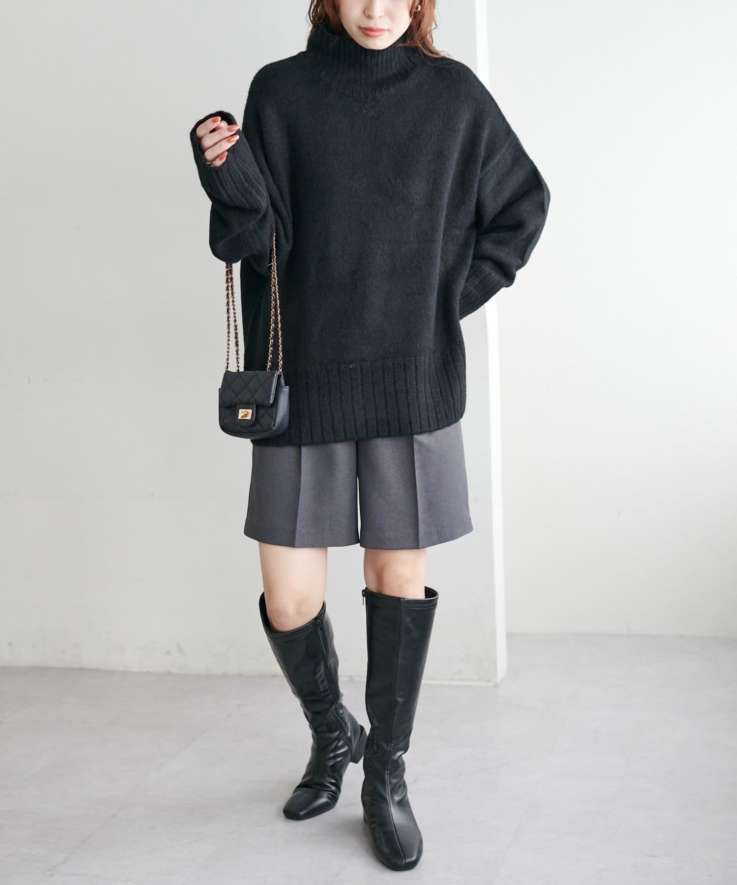 ゆったりとしたシルエットで華奢見えするハイネックニット。
