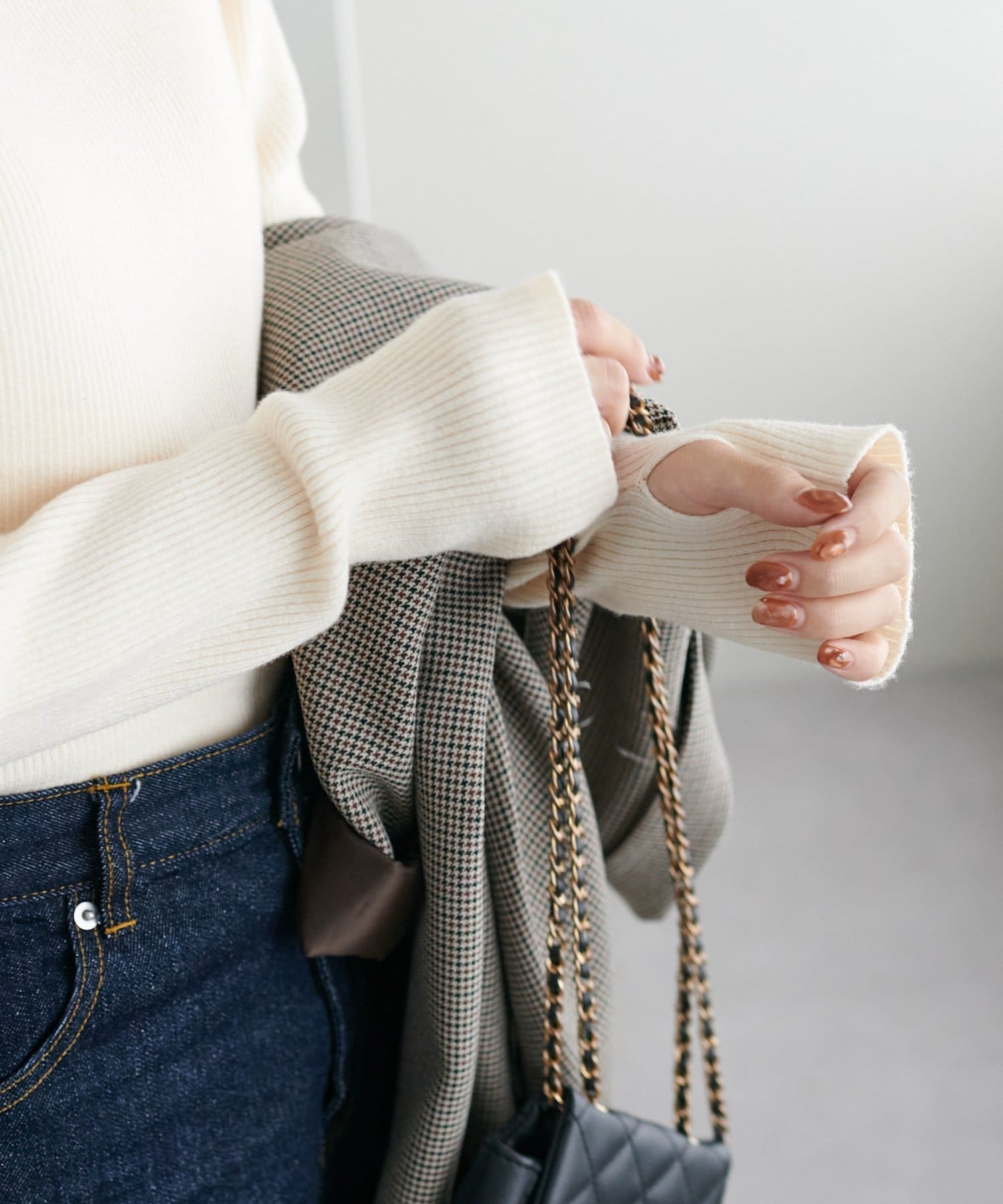 袖口からさりげなくフィンガーホールデザインを見せてあげるのもポイントです♡