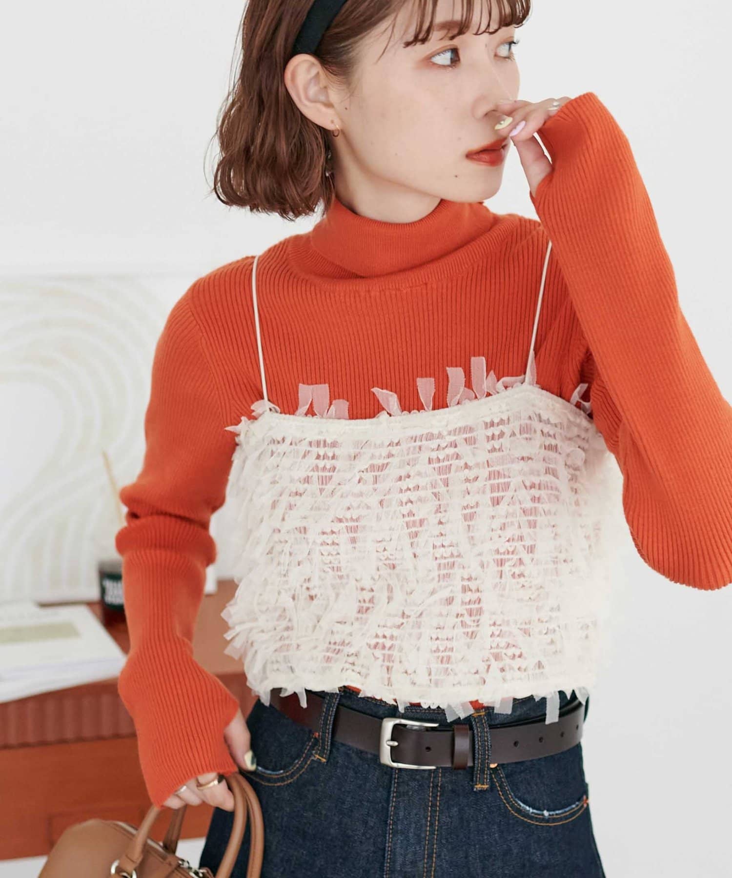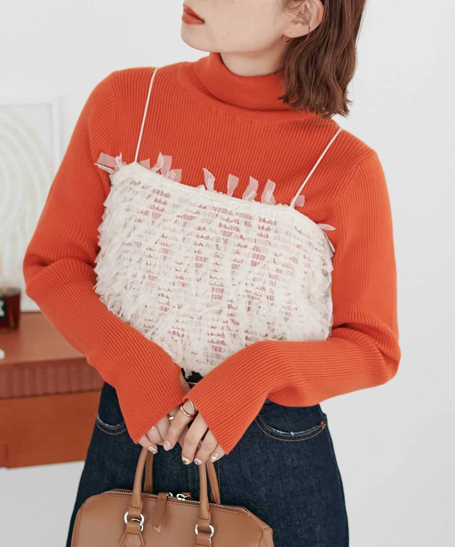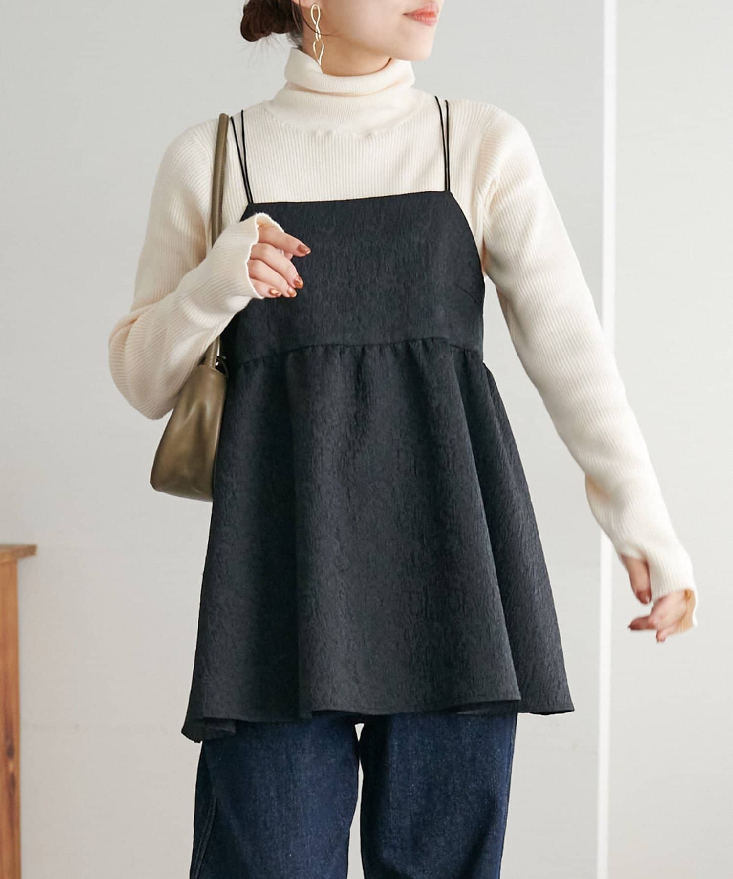 程よいゆとりがあるタートルなので、一枚着はもちろん、キャミやジャケットのインナーとしても合わせていただけます。