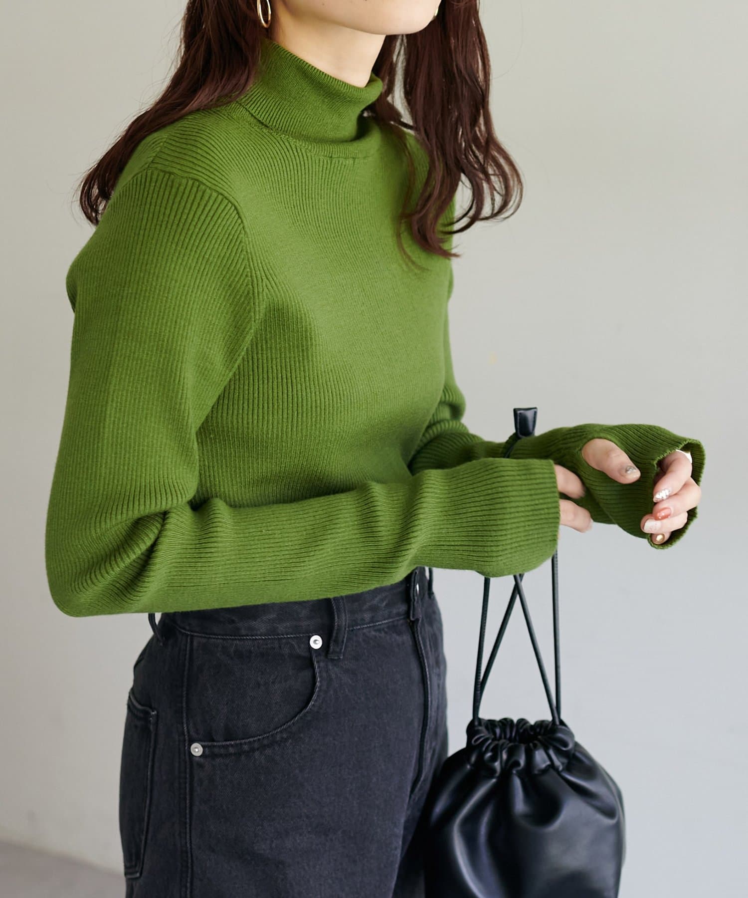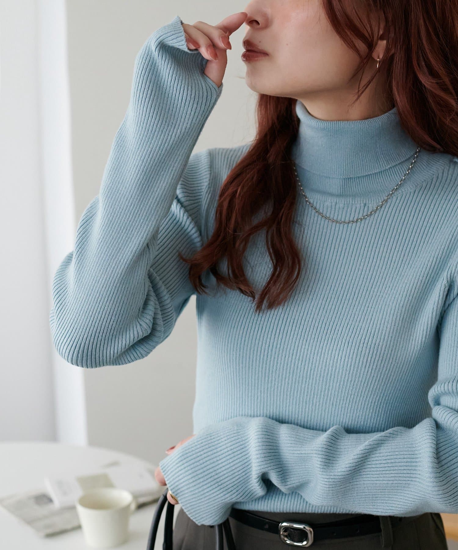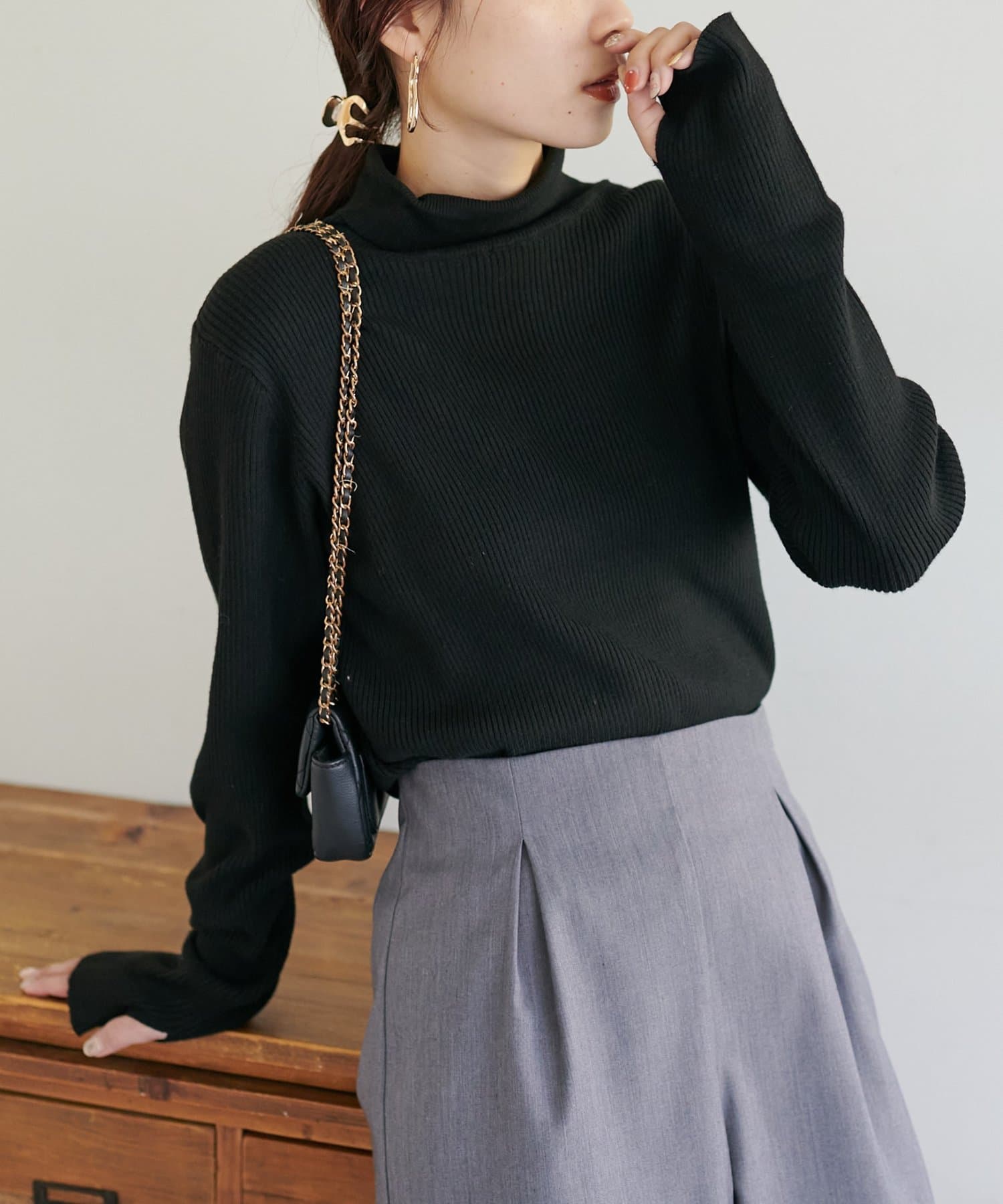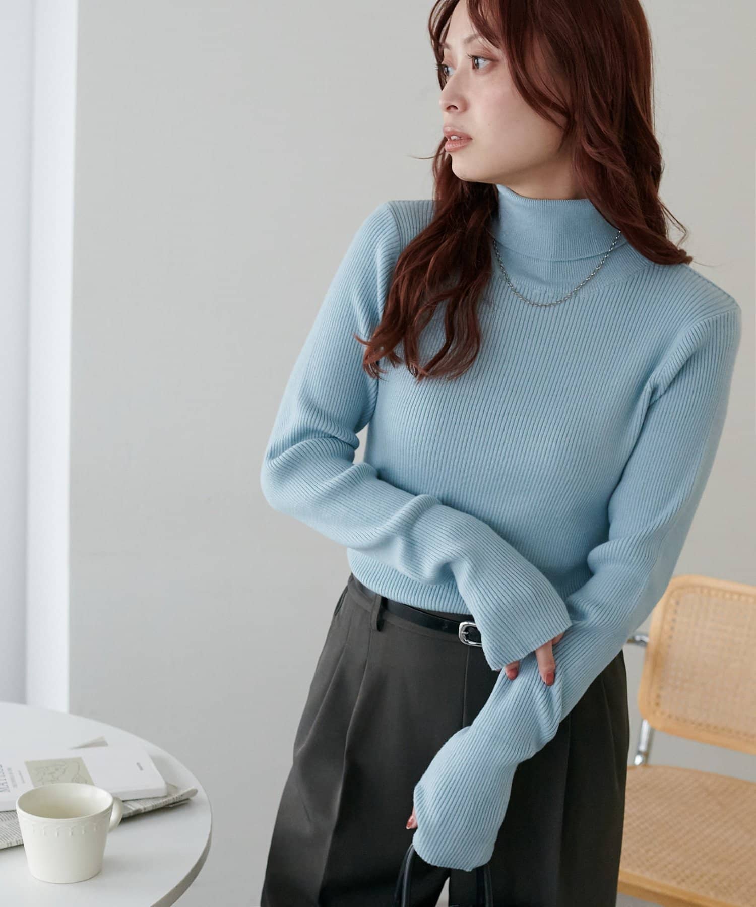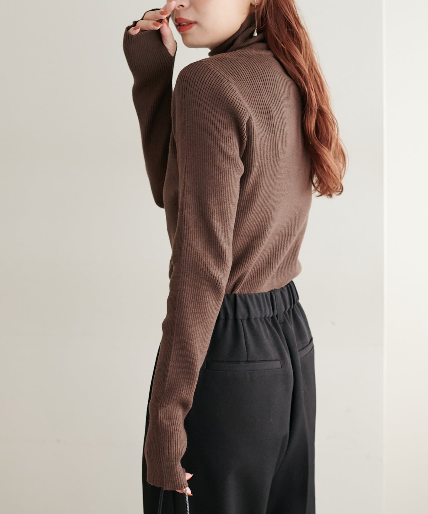 【WEB限定】フィンガーホールリブタートルニット