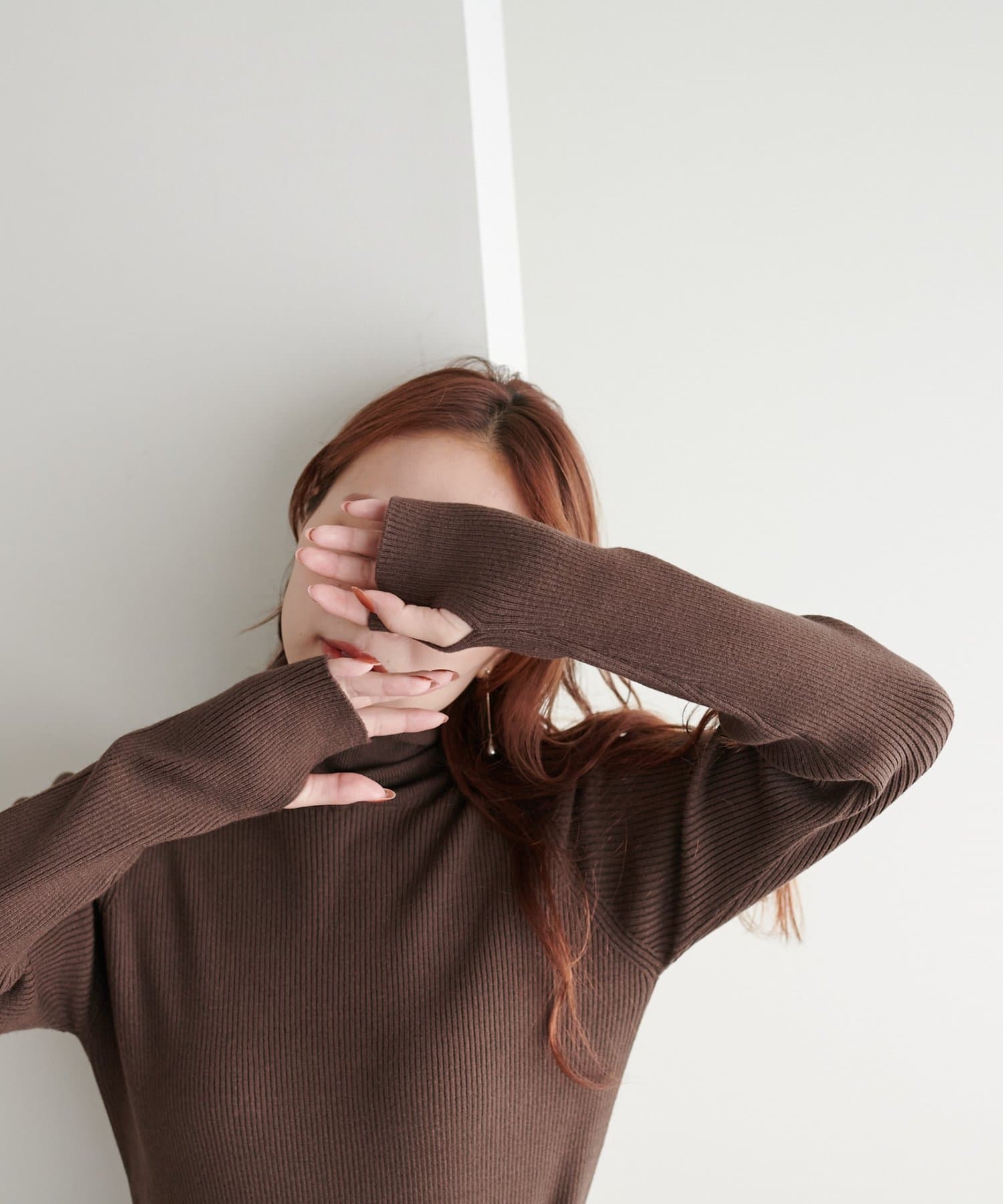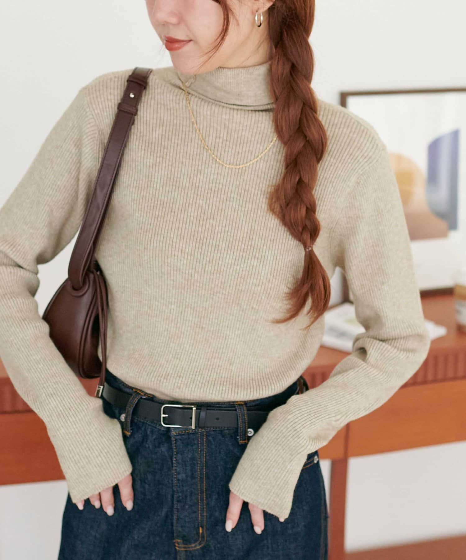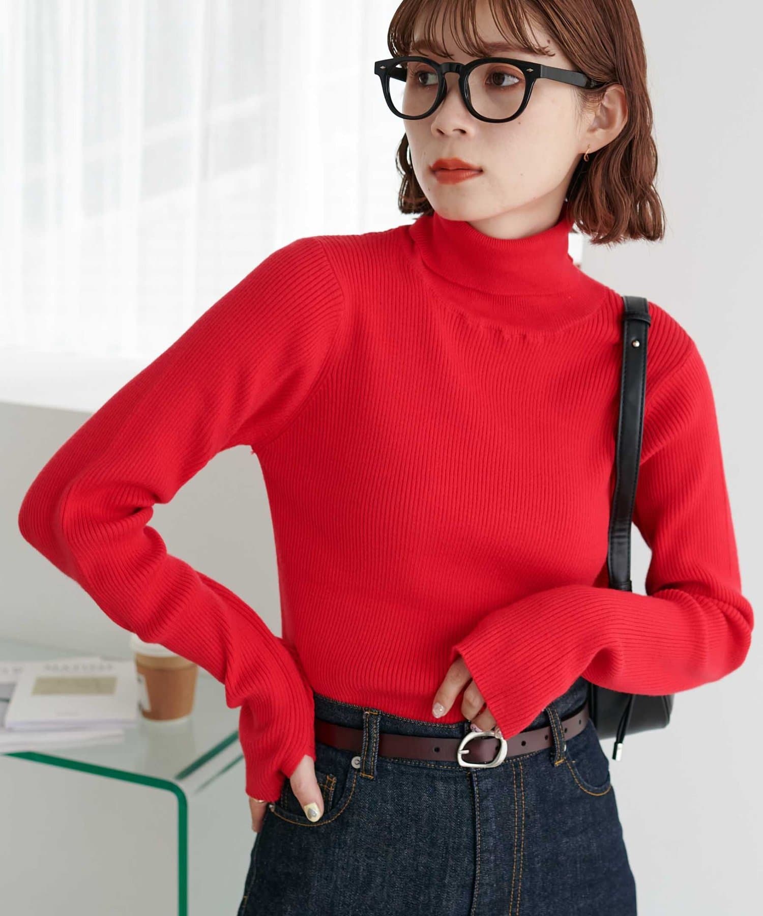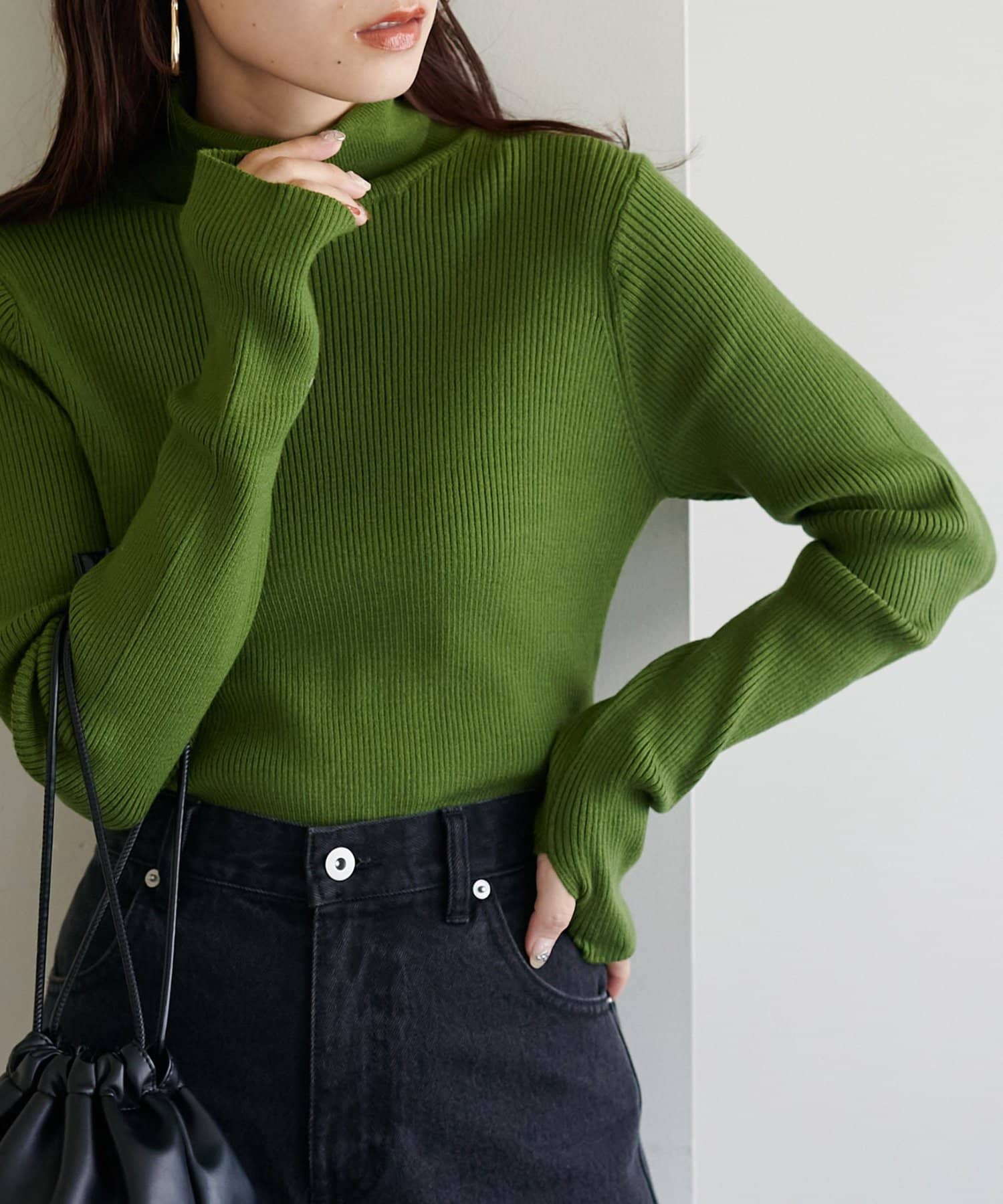 【WEB限定】フィンガーホールリブタートルニット