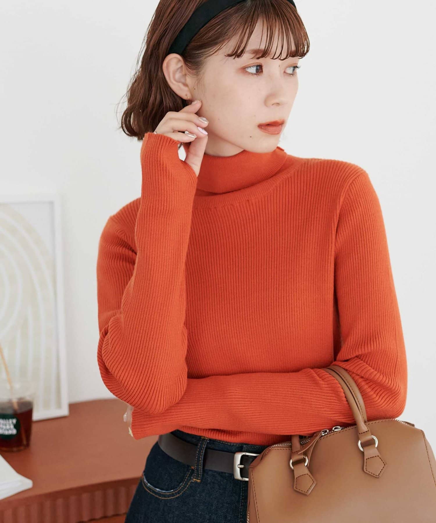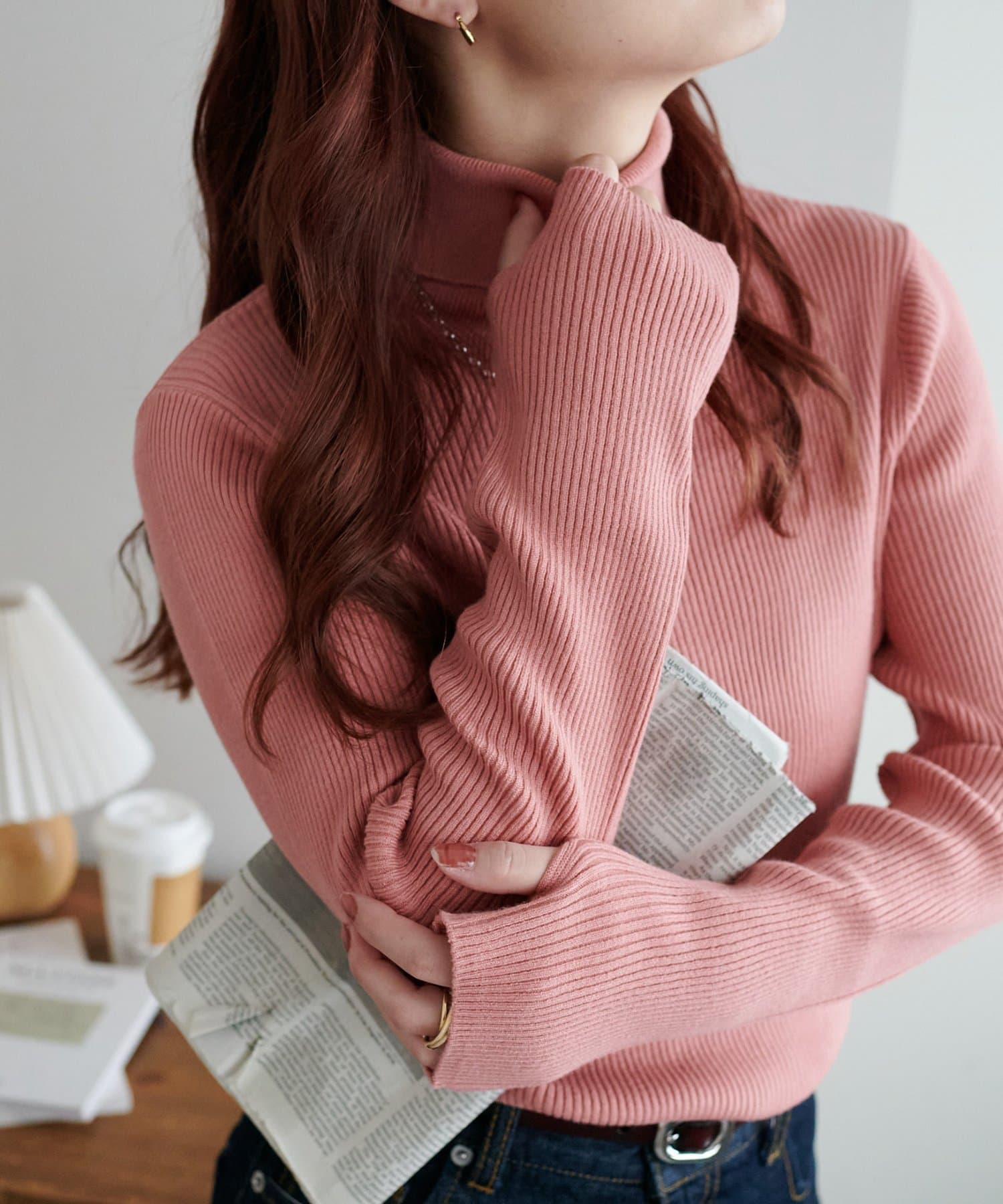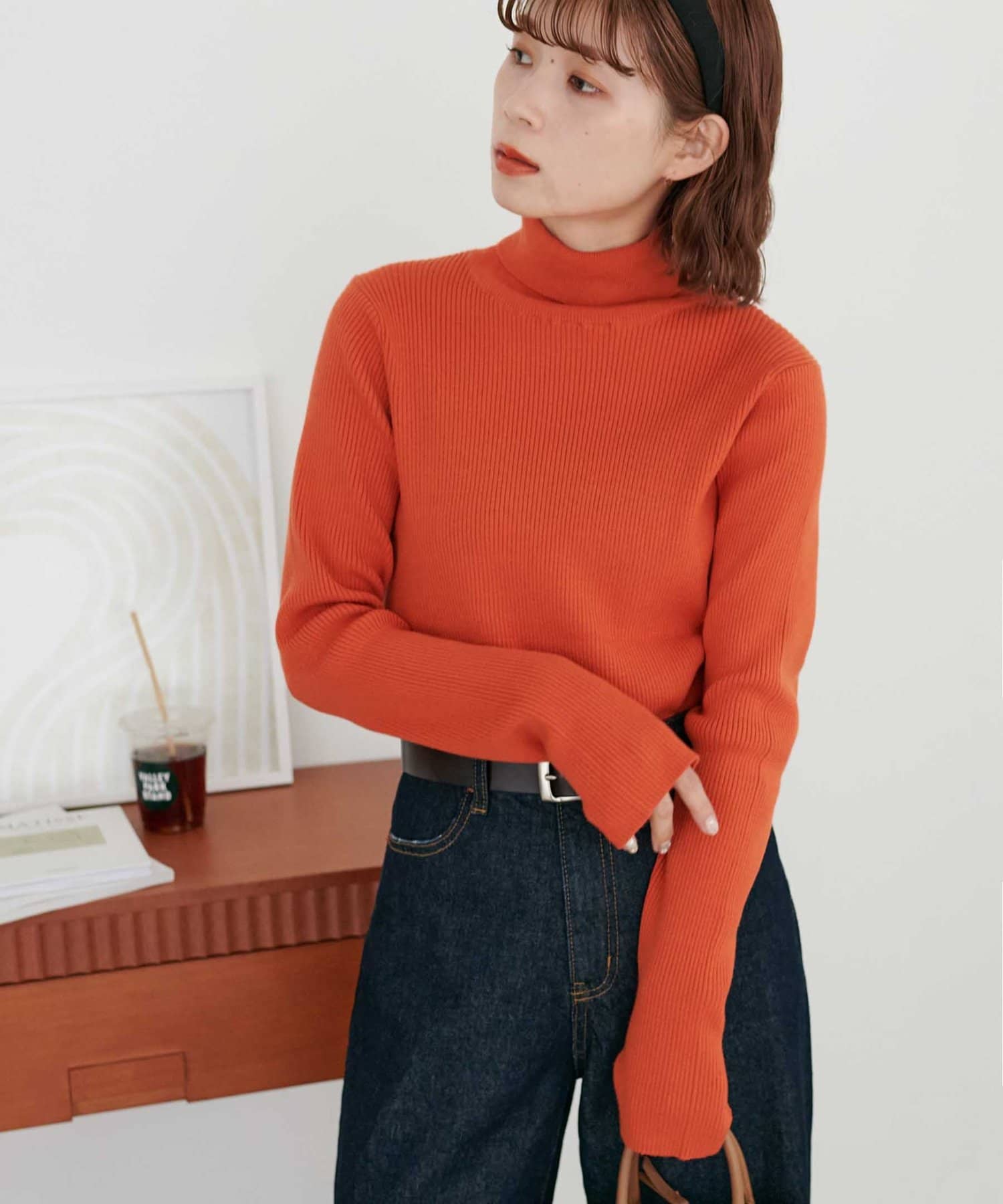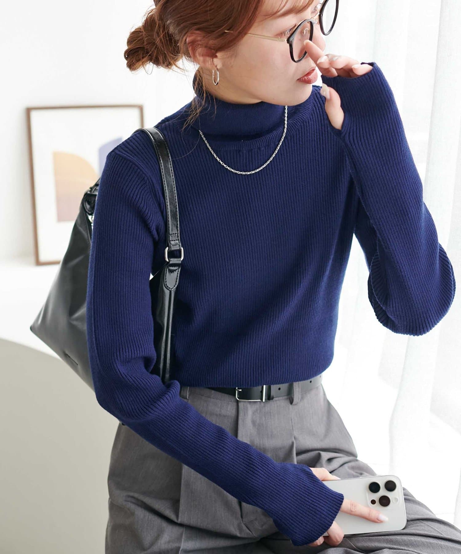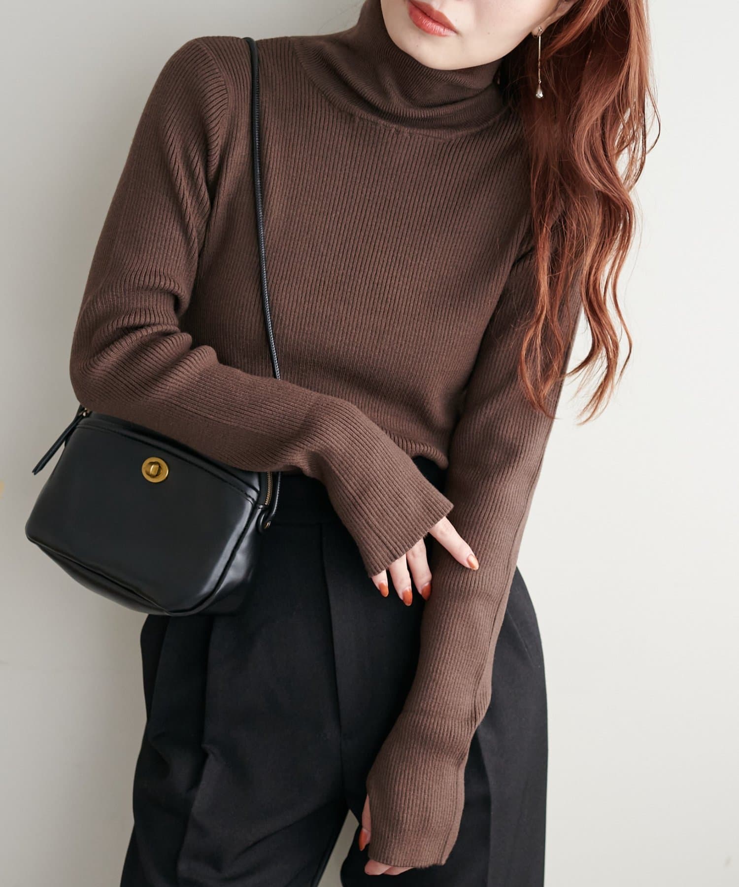 【WEB限定】フィンガーホールリブタートルニット