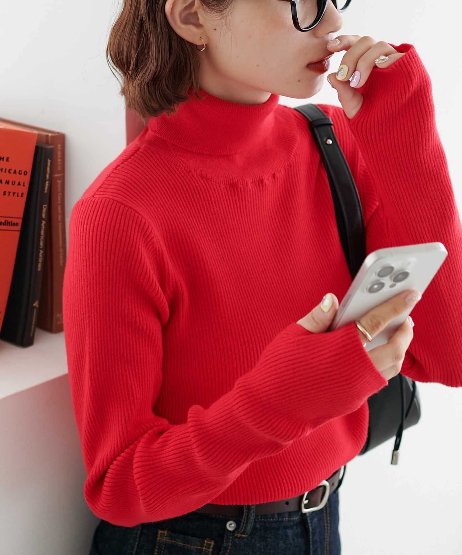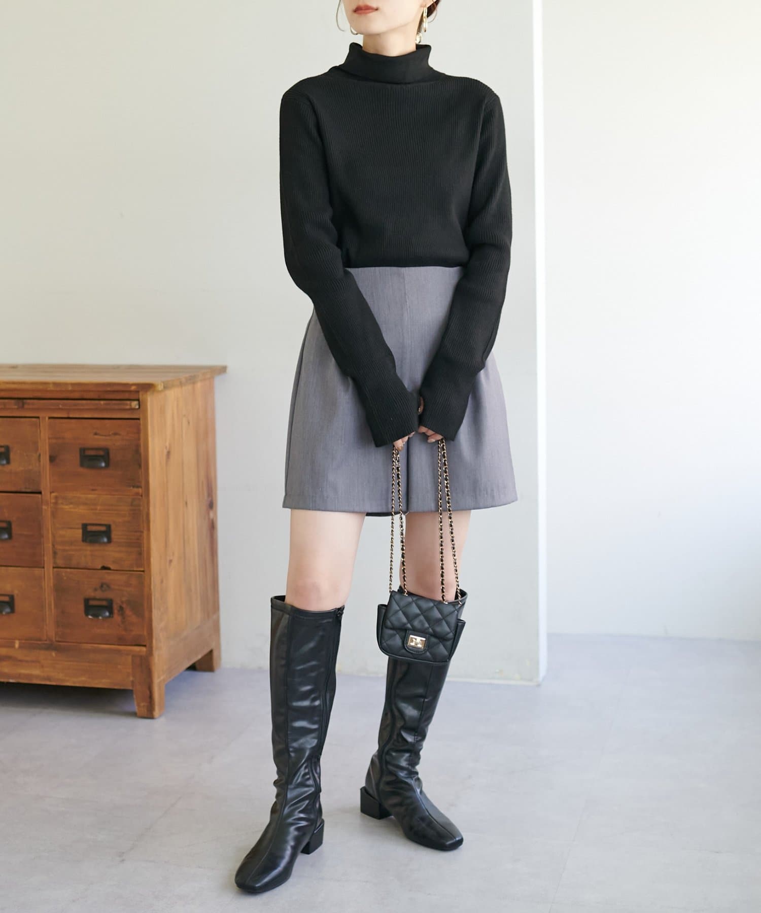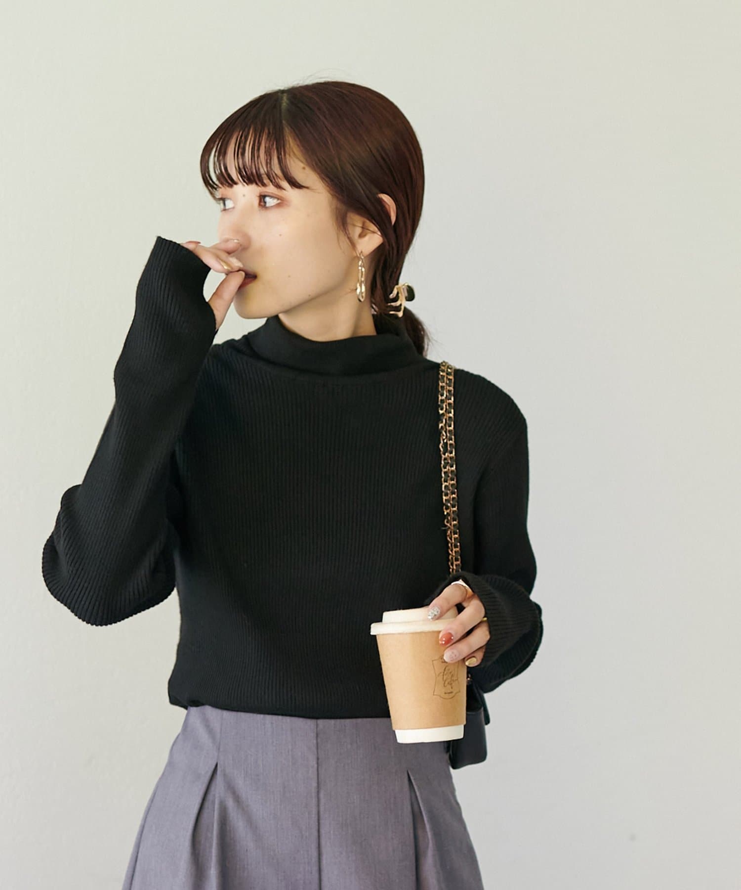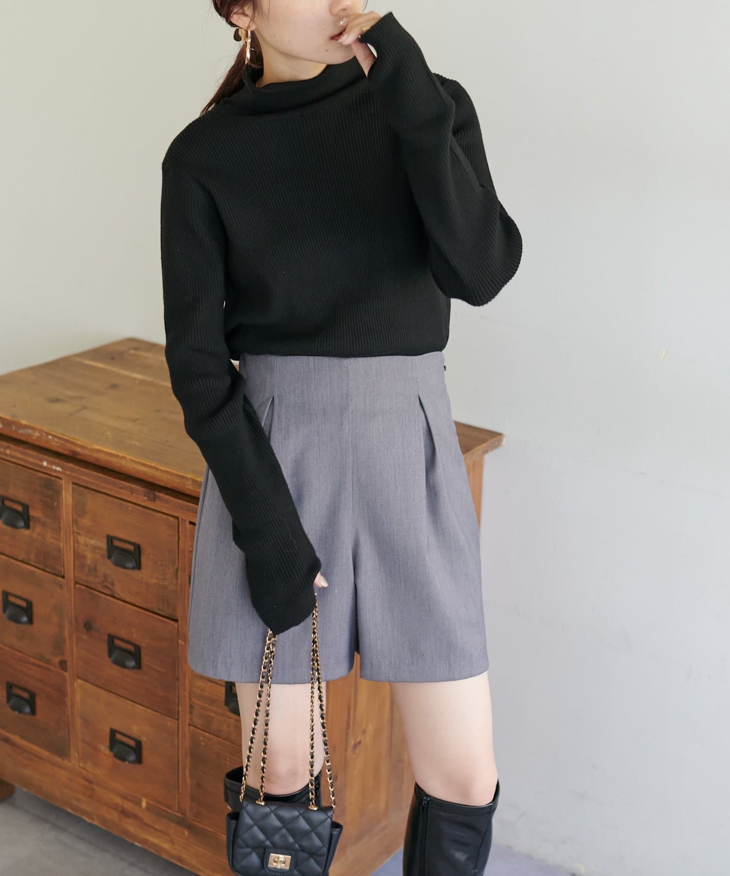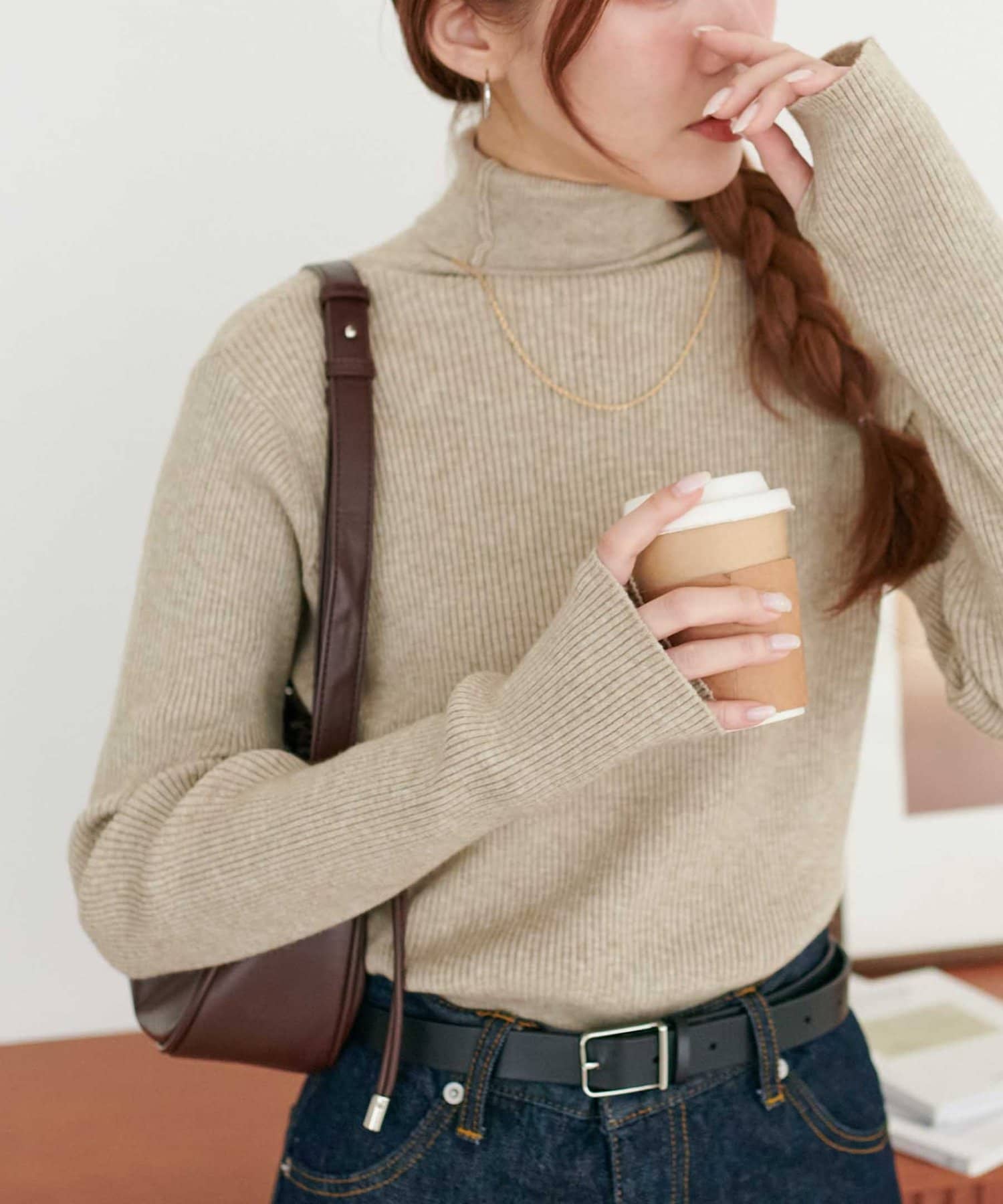 【WEB限定】フィンガーホールリブタートルニット