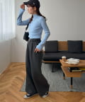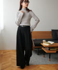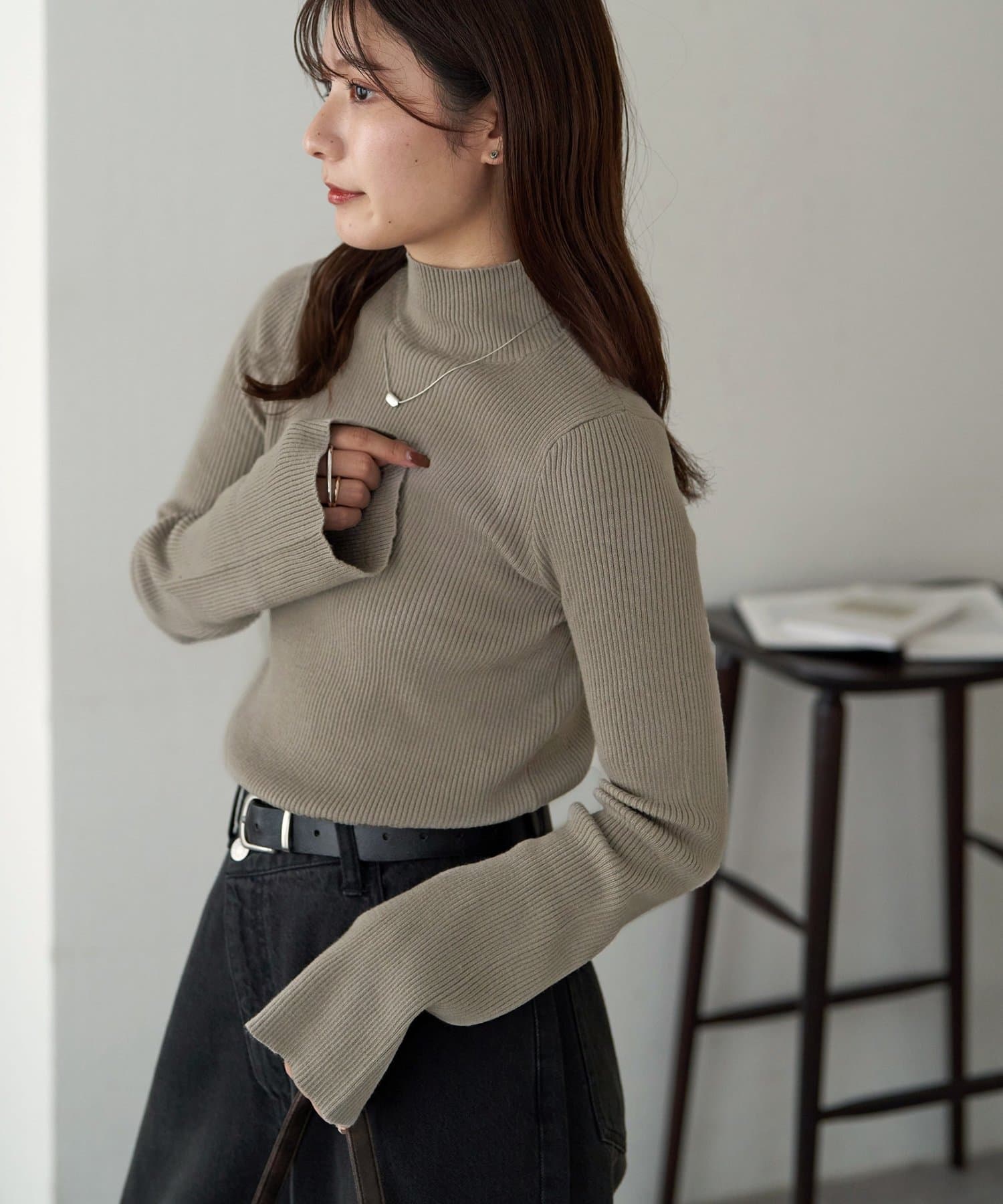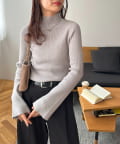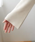 袖口にかけて広がるフレアスリーブが、手元を華奢に見せつつ抜け感をプラス。